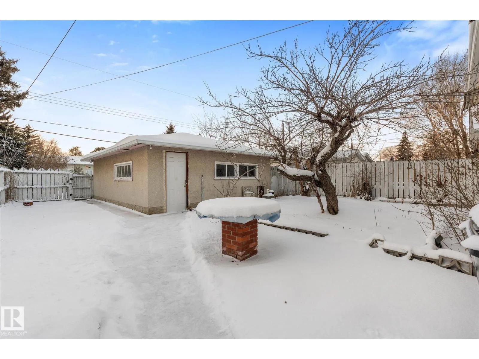 HUGE POTENTIAL in this 4 bedroom, 1.5 bath home centrally located in the neighborhood of Balwin. Close to Princeton School and many amenities. Raised bungalow with 3 bedrooms up and 1 bedroom down - HUGE basement windows all above ground level! Separate side entrance. Full 4-pc bath upstairs with a 1/2 bath down (potential to add shower). TONS of storage space! Double detached garage with SEPARATE garage doors, back alley access and extra parking spaces. Fully fenced yard with mature apple trees. Property is zoned RMS. Update this property for affordable family living, add a suite below and rent top & bottom or develop a multi-family unit. The possibilities are all here! (id:27476)