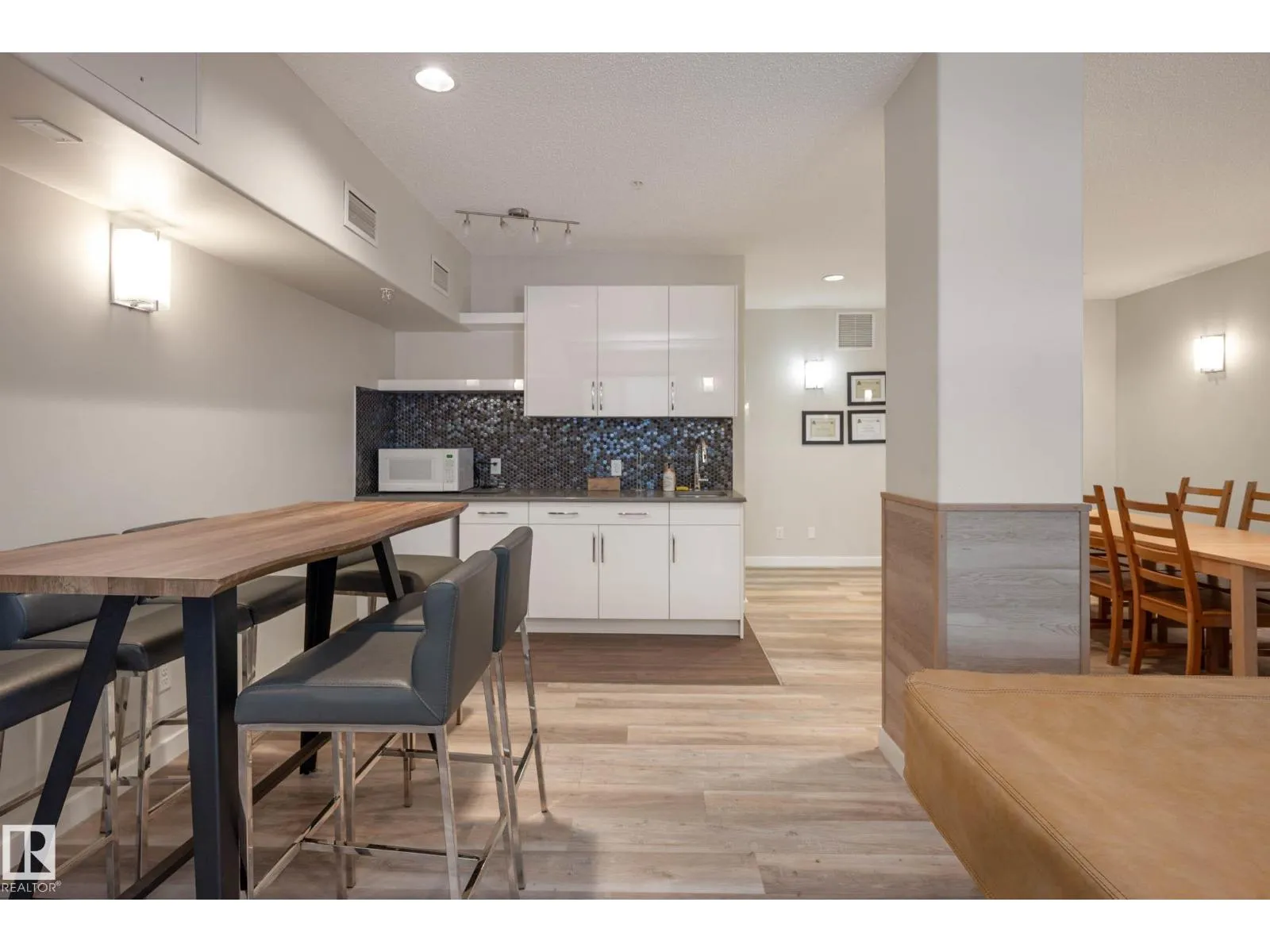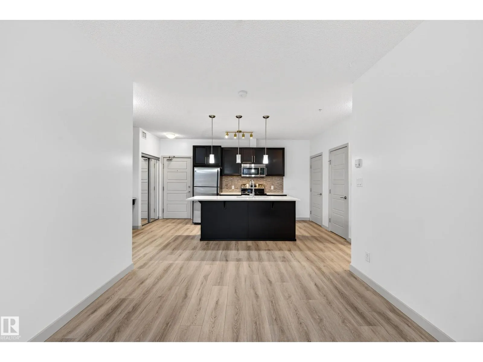WELCOME TO ELAN! Another exceptional project by Carrington Communities! This 2 bed, 2 bath suite offers a partial ravine view and is loaded with upgrades: stainless steel appliances, full-height backsplash, quartz countertops throughout, pendant lighting, new laminate flooring, new paint, in-suite laundry, pantry, and a built-in tech center with added storage. The primary suite features a walk-through his & hers mirrored closet and a spacious 5' walk-in shower. Enjoy your private balcony with a natural gas BBQ line and one underground parking stall. Building amenities include a state-of-the-art fitness center, social room with wet bar & billiards, and video surveillance. Nestled next to the ravine, you're just minutes from scenic trails, shopping, transit, and Anthony Henday access. Donât miss your chance to own in this fantastic location! Virtually Staged (id:27476)