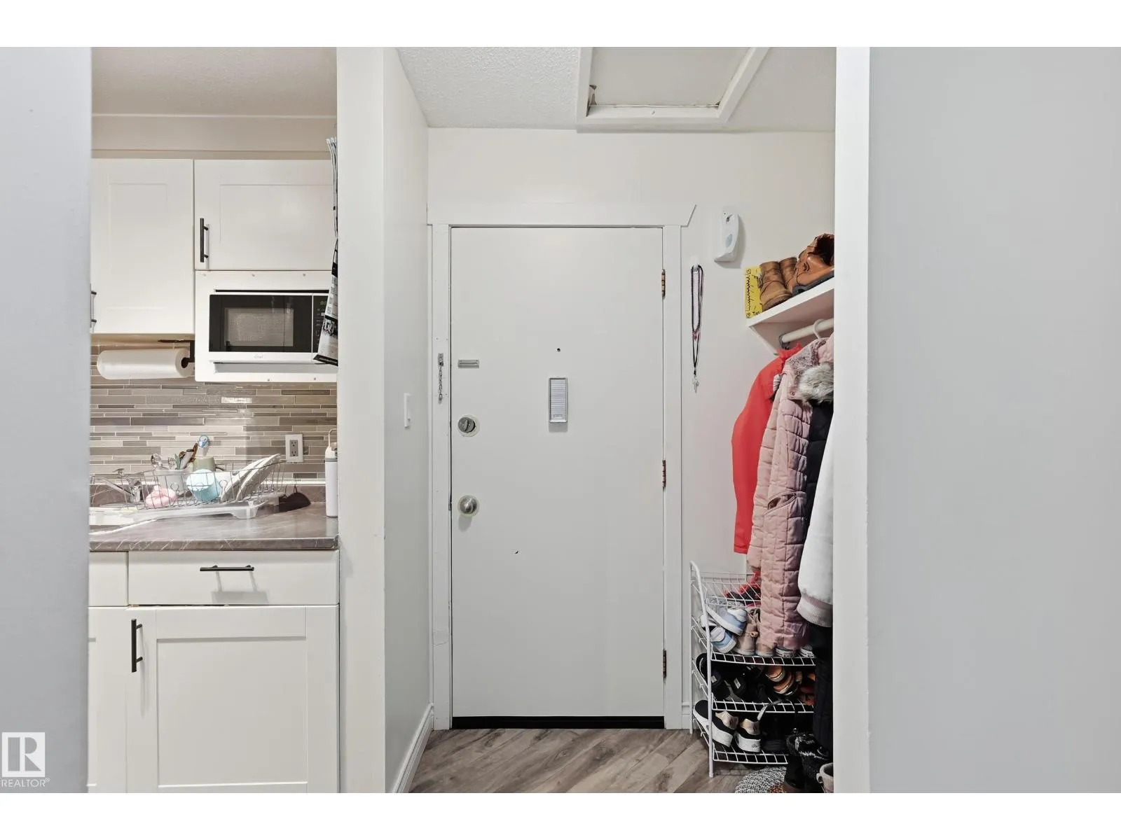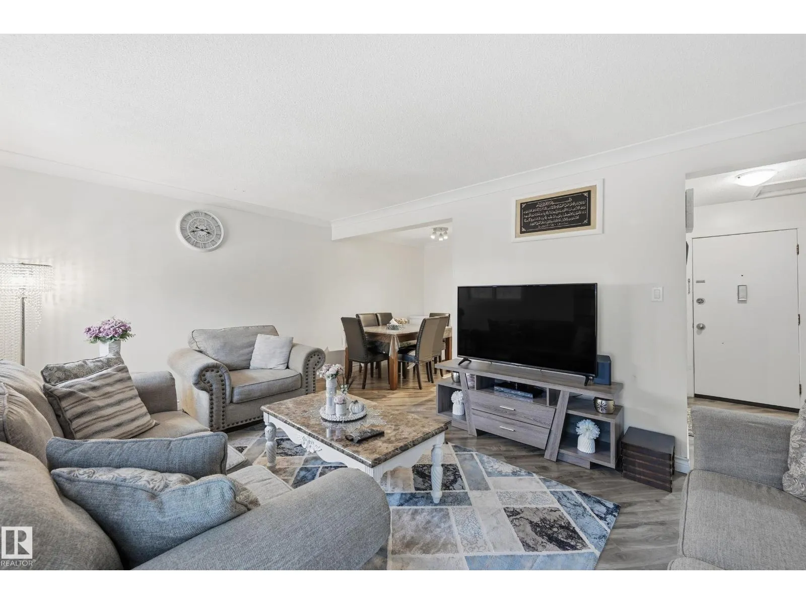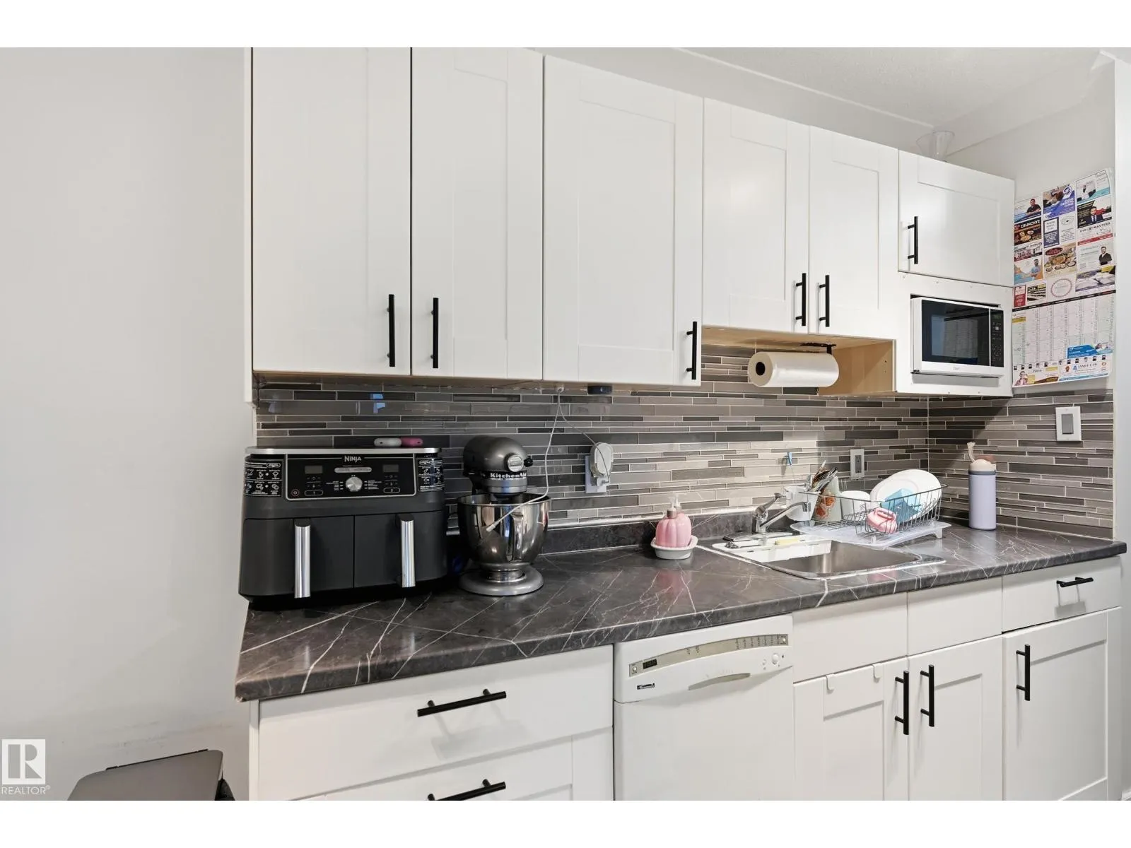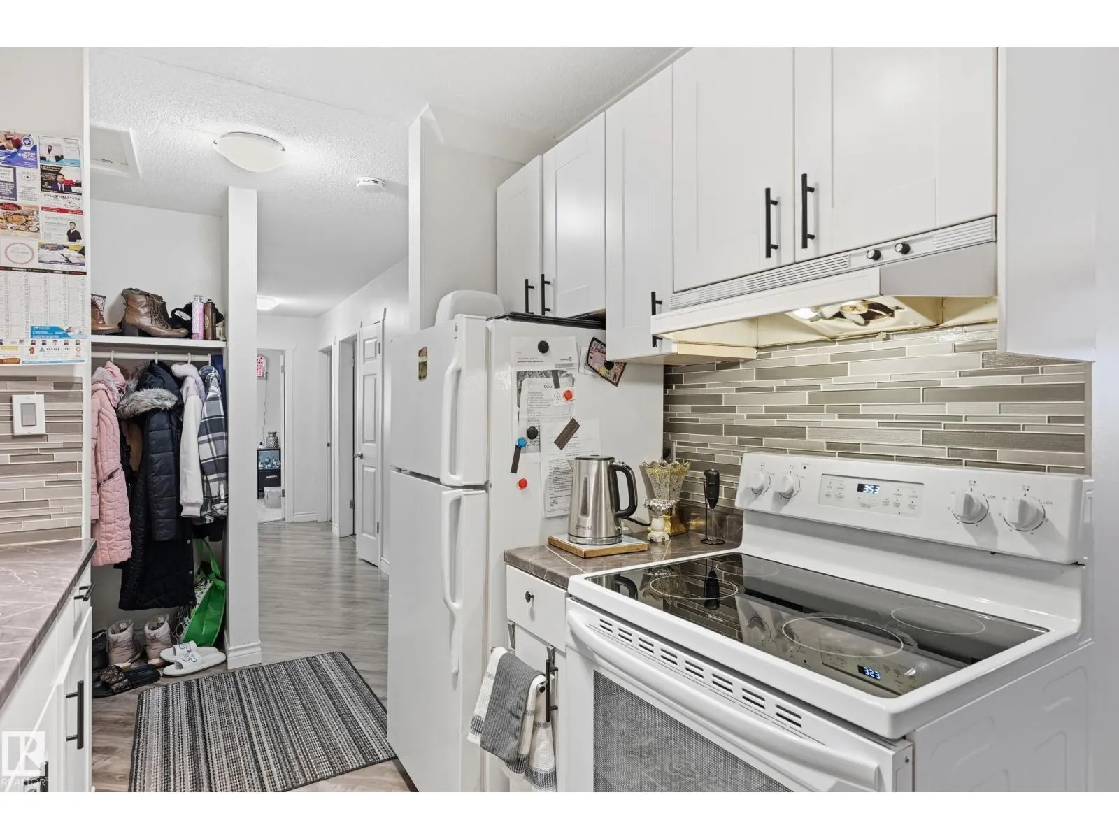 Welcome to Queen Mary Park, a centrally located community with quick access to NAIT, LRT, Downtown, and Grant Macewan. This top-floor, corner-unit 3-bedroom condo is light and bright, featuring south and west exposures and a quiet setting. Freshly painted throughout, the home offers modern flooring and a white kitchen with contemporary backsplash and updated countertopsâperfect for entertaining. Enjoy excellent storage with insuite storage featuring built-in shelving and space for a small freezer, plus hallway bookcases ideal for display and organization. The spacious primary bedroom comfortably fits full-sized furniture, complemented by two additional bedrooms for family, guests, or a home office. Located in a non-smoking, pet-free building, this well-kept unit is ideal for comfortable, convenient city living. (id:27476)