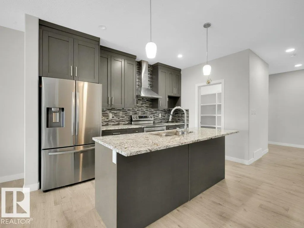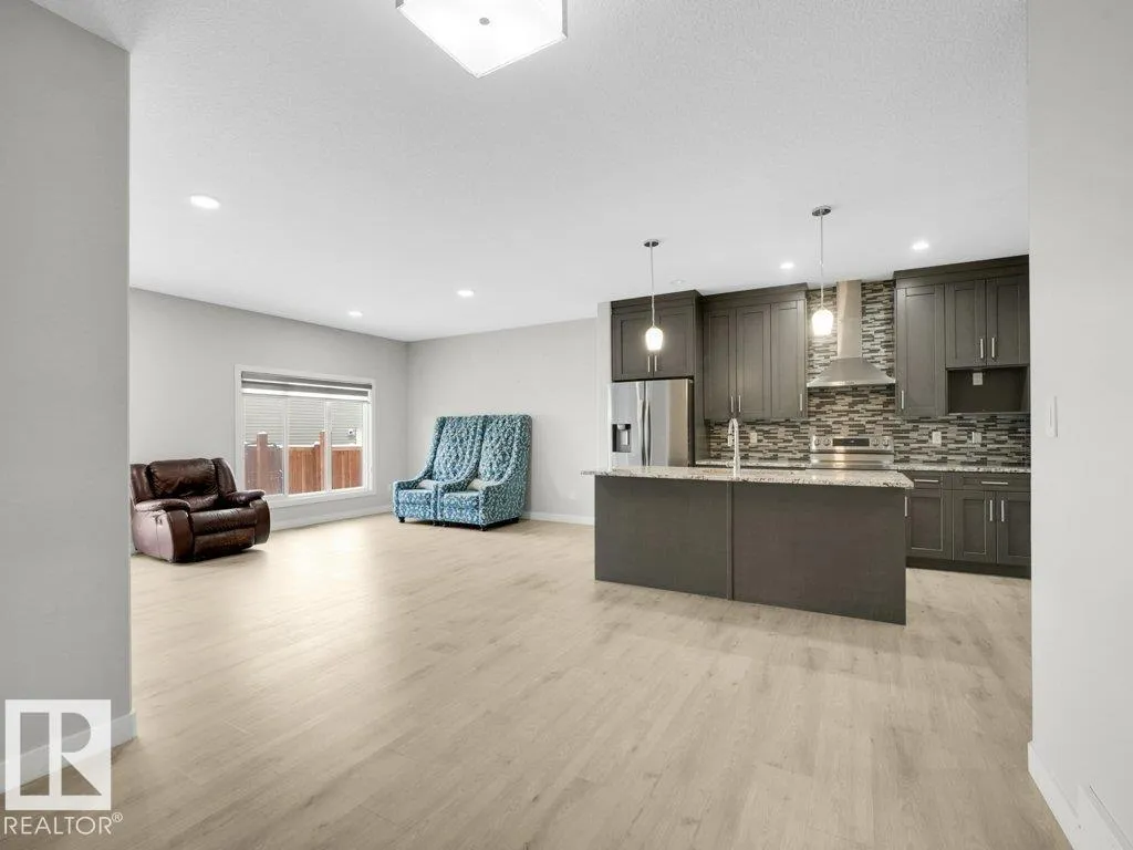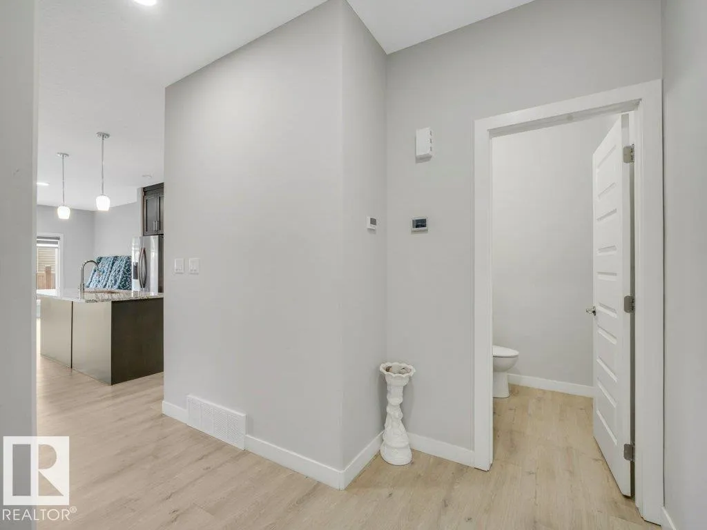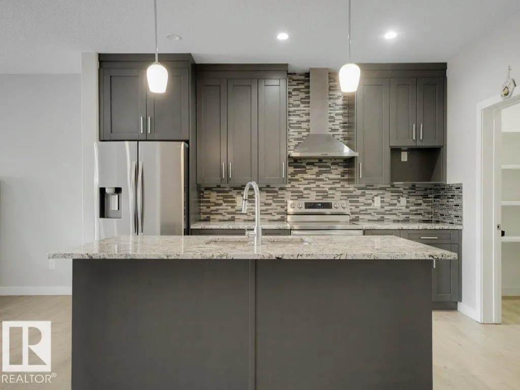 Welcome to this 2-Storey home offering over 1,800 sq ft of living space with a separate side entrance for future suite potential. The main floor features an open-concept living/dining/kitchen layout with vinyl flooring, California knockdown 9 ft ceilings, a half bath, and a kitchen equipped with quartz countertops, a large island with eating bar, soft-close ceiling-height cabinets, and a corner walk-in pantry. The upper level includes 4 bedrooms, 2 full bathrooms, and upstairs laundry. The primary bedroom offers a 3-pc ensuite and walk-in closet. Additional features include central AC, a large rear deck with Gazebo, an oversized single attached garage, and an unspoiled basement ready for development. No condo fees!! (id:27476)