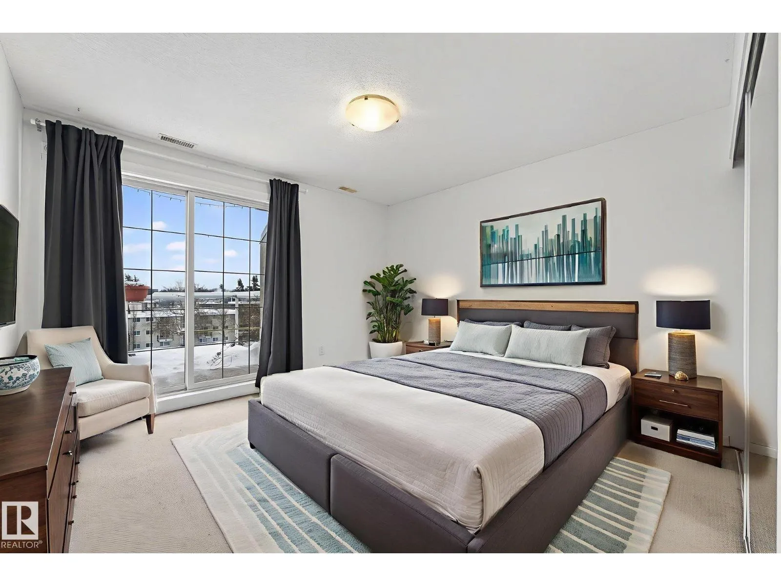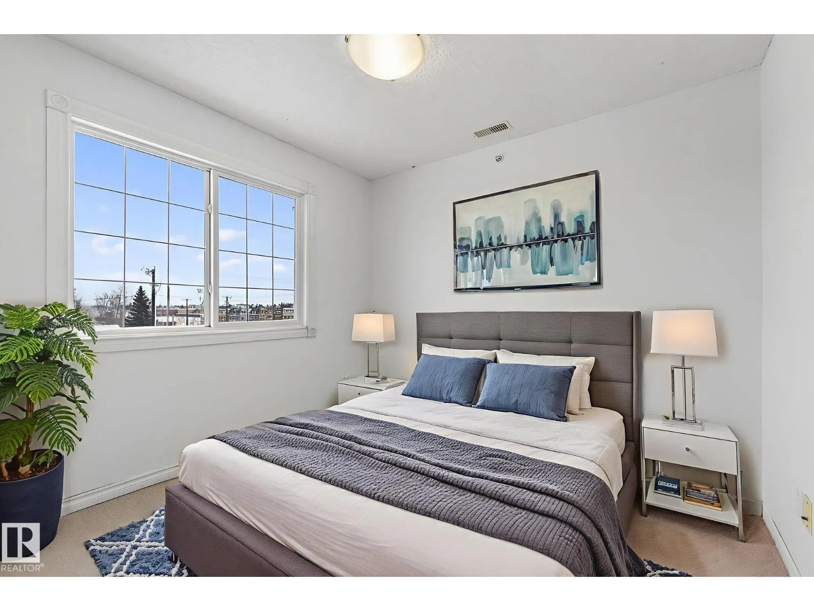 Welcome to Glenora Mansion! one or more photos were virtually satged! This beautiful top-floor, corner 808 sq. ft. 2-bedroom condo offers exceptional privacy, comfort, and an unbeatable location. With stairwells located on one side, there is minimal foot traffic and no neighboring noise, making it ideal for quiet, carefree living. The open-concept layout is bright and inviting, flowing seamlessly to a spacious west-facing patio with a gas BBQ hookup and completely unobstructed open viewsâperfect for entertaining or enjoying peaceful sunsets. The unit features a full bathroom, in-suite laundry, air conditioning, and single carport parking. Residents also enjoy access to a fully equipped fitness gym within the building. Ideally located near Grant MacEwan University, Rogers Place, Downtown, and LRT/public transit, this home combines convenience, privacy, and style. Perfect location, beautiful views, and looks just as impressive in person as it does in the pictures! (id:27476)