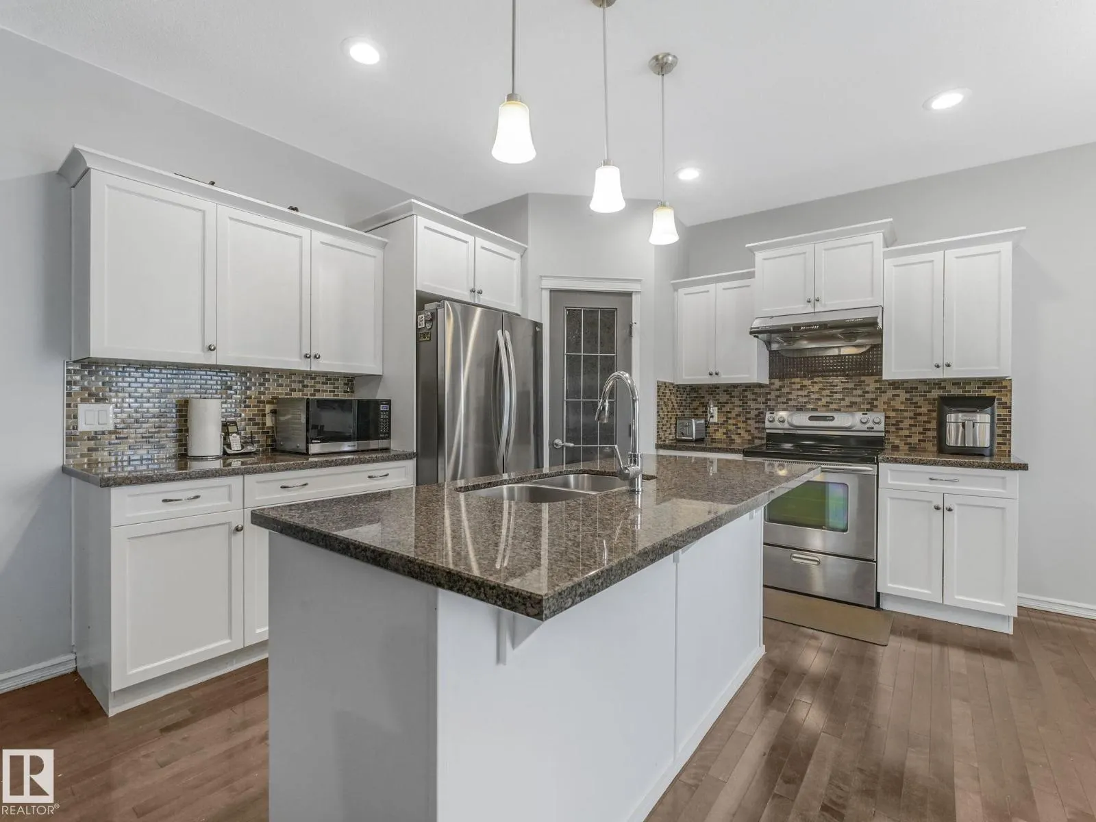 PERFECT FAMILY HOME w MORTGAGE HELPER! This 6-bdrm 4 bth home offers approx 2,800 sq ft of total living space in South Edmonton & features 2-storey layout w a FINISHED WALKOUT BASEMENT, LEGAL 2-bdrm suite w separate entrance, heating & hot water. Certified Energy Savings home w triple pane windows, spray foam insulation, & new furnace & HWT. Main floor has 9â ceilings, a gas fireplace, & kitchen with granite counters, pantry, energized island, SS appliances, a 2-pc bath, & laundry rm. Upstairs offers NEW FLOORING, 4 bedroom, & a spacious open-concept den/family rm w 10'7 ceilings. The large primary bedroom includes a walk-in closet and 5-piece ensuite. Insulated double garage. Bright walkout basement suite features 8â3â ceilings, an open layout, full kitchen, separate laundry room, and a full bath. Enjoy sunsets from the deck overlooking a fenced yard, fruit trees, patio. Walking to lake parks, transit, Masjid, Gurdwara & Alhusaini Centre; minutes to shopping and schools. (id:27476)