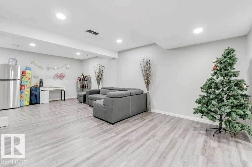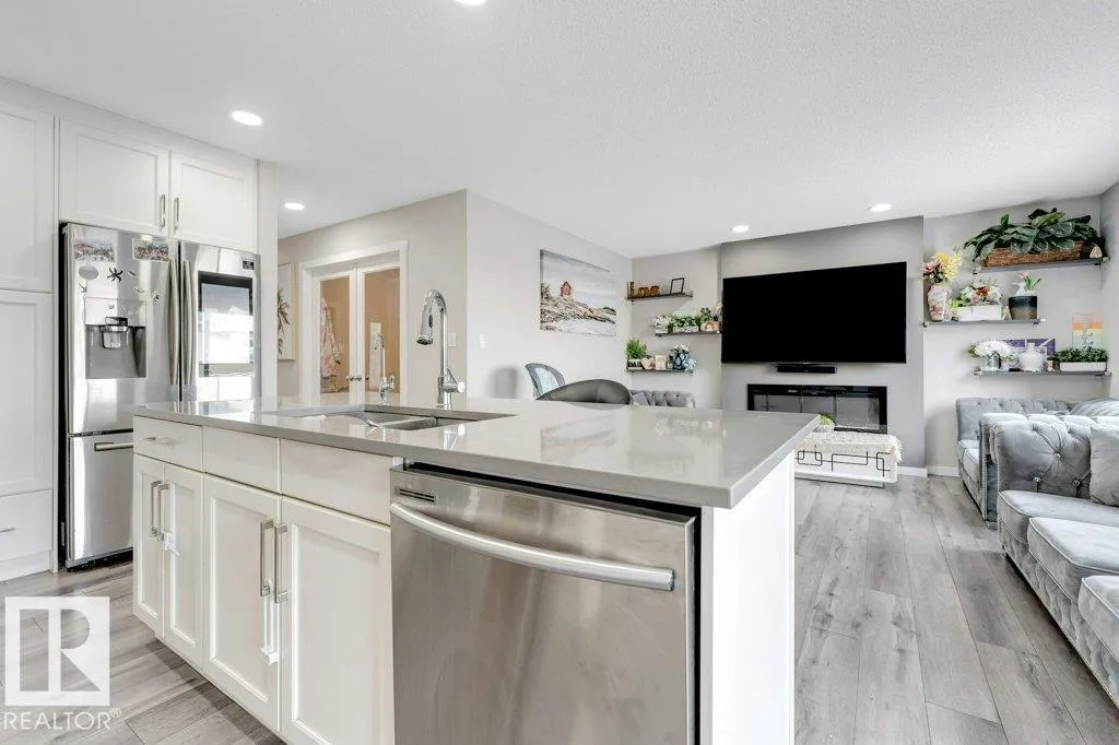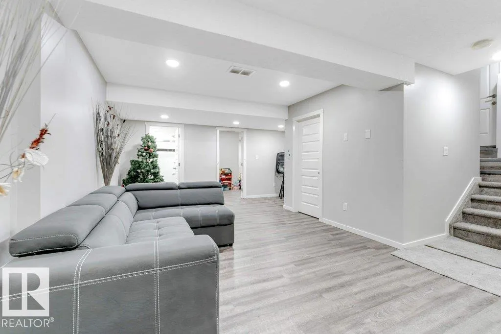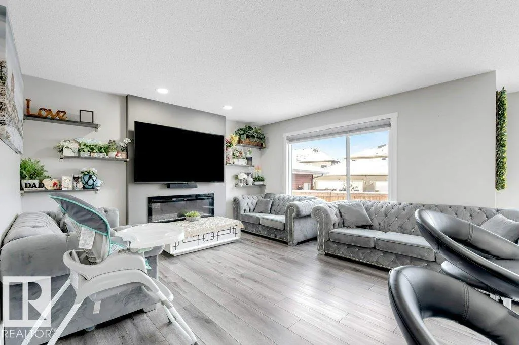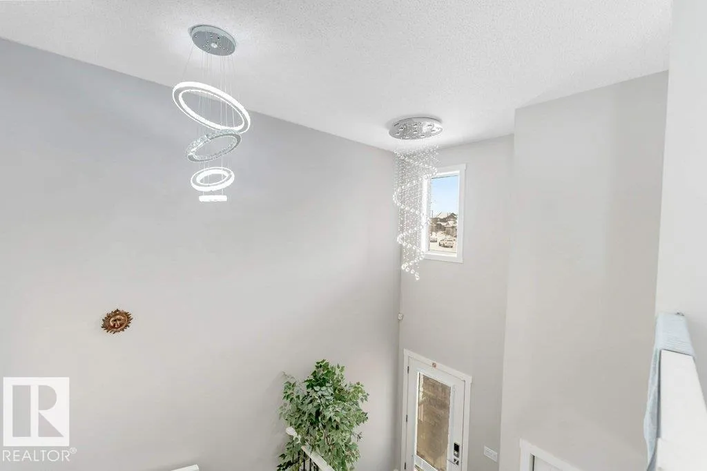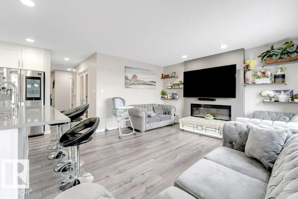 **FULLY FINISHED BASEMENT WITH SECOND KITCHEN **OPEN TO BELOW**SIDE ENTRANCE FOR BASEMENT**Welcome to this elegant 1,819 sq. ft. luxury duplex on a rare pie-shaped lot, offering style, space, and versatility. The open-to-below entry features soaring ceilings and a convenient powder room. The main floor includes a private den, a spacious living room with a modern electric fireplace, and a beautifully designed kitchen with quartz countertops, stainless steel appliances, ample cabinetry, and main-floor laundry. Upstairs, enjoy a serene primary suite with a spa-inspired ensuite and walk-in closet, plus two generous bedrooms and a large bonus room ideal for entertaining. The fully finished basement offers a separate entrance, second kitchen, living area, full bedroom, and full bathâperfect for guests or extended family. Fully landscaped, fenced, and complete with a composite deck, this home is the perfect blend of luxury and comfort. (id:27476)