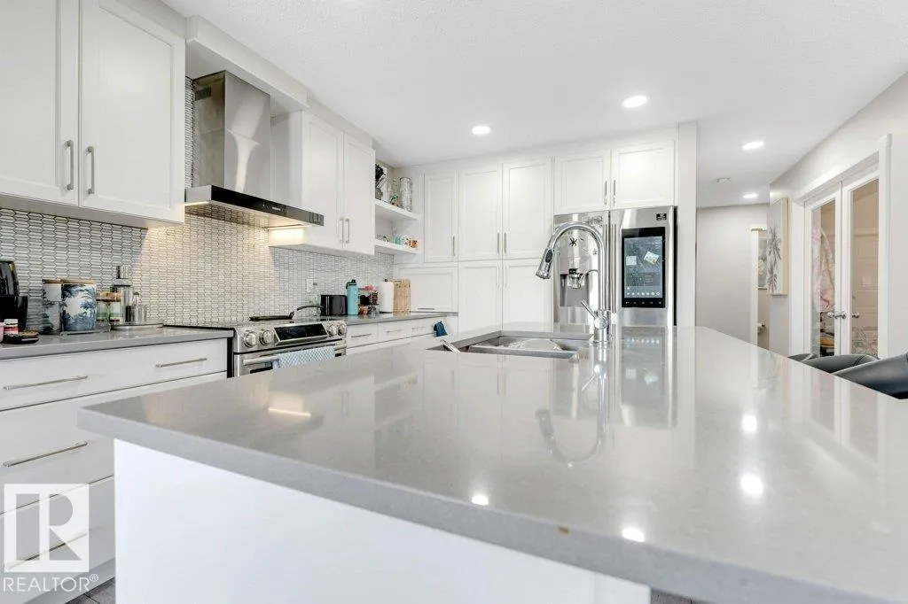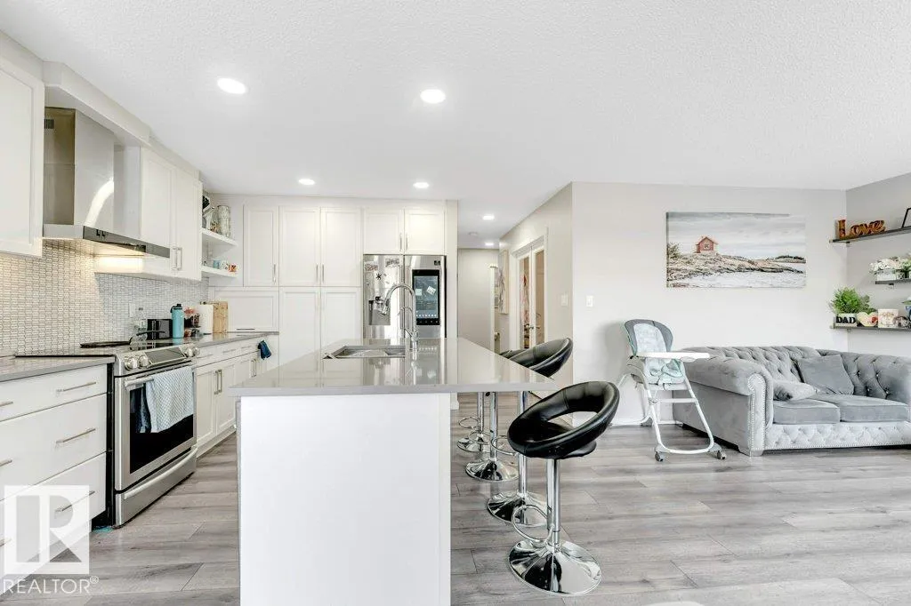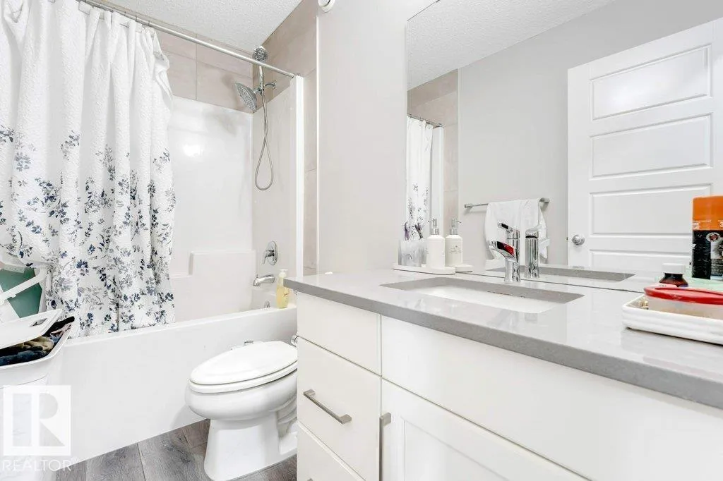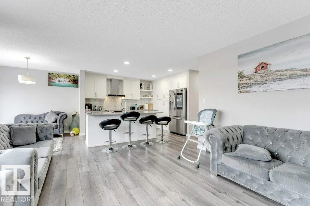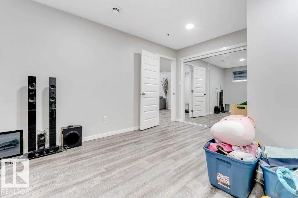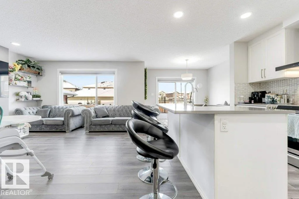 **FULLY FINISHED BASEMENT WITH SECOND KITCHEN **OPEN TO BELOW**SIDE ENTRANCE FOR BASEMENT**Welcome to this elegant 1,819 sq. ft. luxury duplex on a rare pie-shaped lot, offering style, space, and versatility. The open-to-below entry features soaring ceilings and a convenient powder room. The main floor includes a private den, a spacious living room with a modern electric fireplace, and a beautifully designed kitchen with quartz countertops, stainless steel appliances, ample cabinetry, and main-floor laundry. Upstairs, enjoy a serene primary suite with a spa-inspired ensuite and walk-in closet, plus two generous bedrooms and a large bonus room ideal for entertaining. The fully finished basement offers a separate entrance, second kitchen, living area, full bedroom, and full bathâperfect for guests or extended family. Fully landscaped, fenced, and complete with a composite deck, this home is the perfect blend of luxury and comfort. (id:27476)