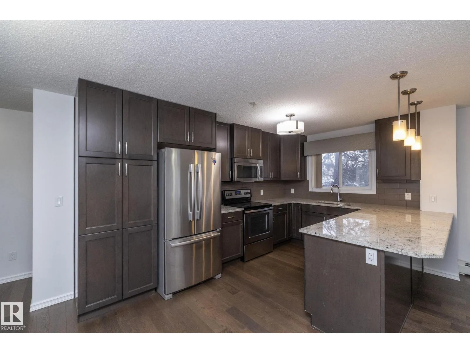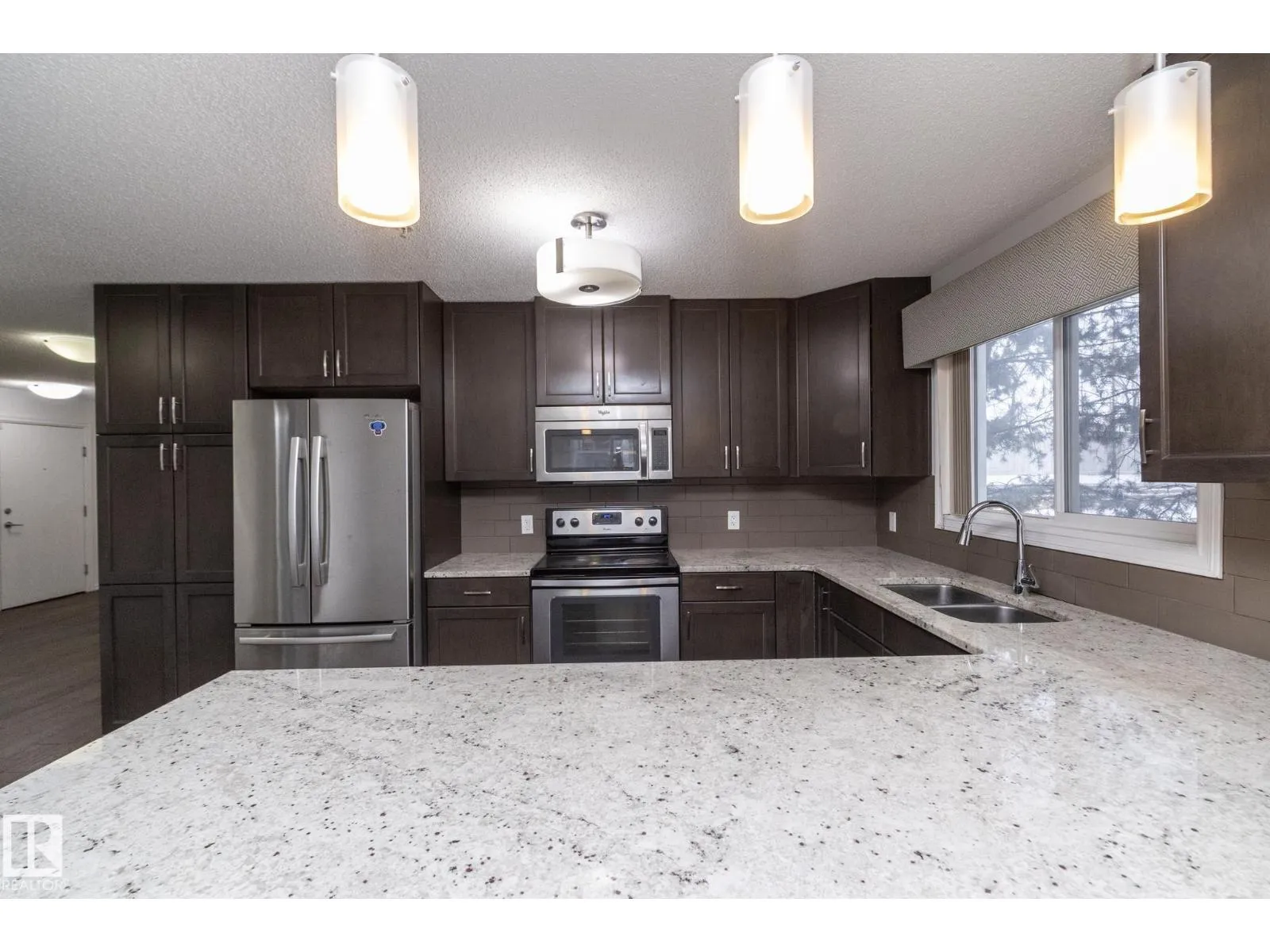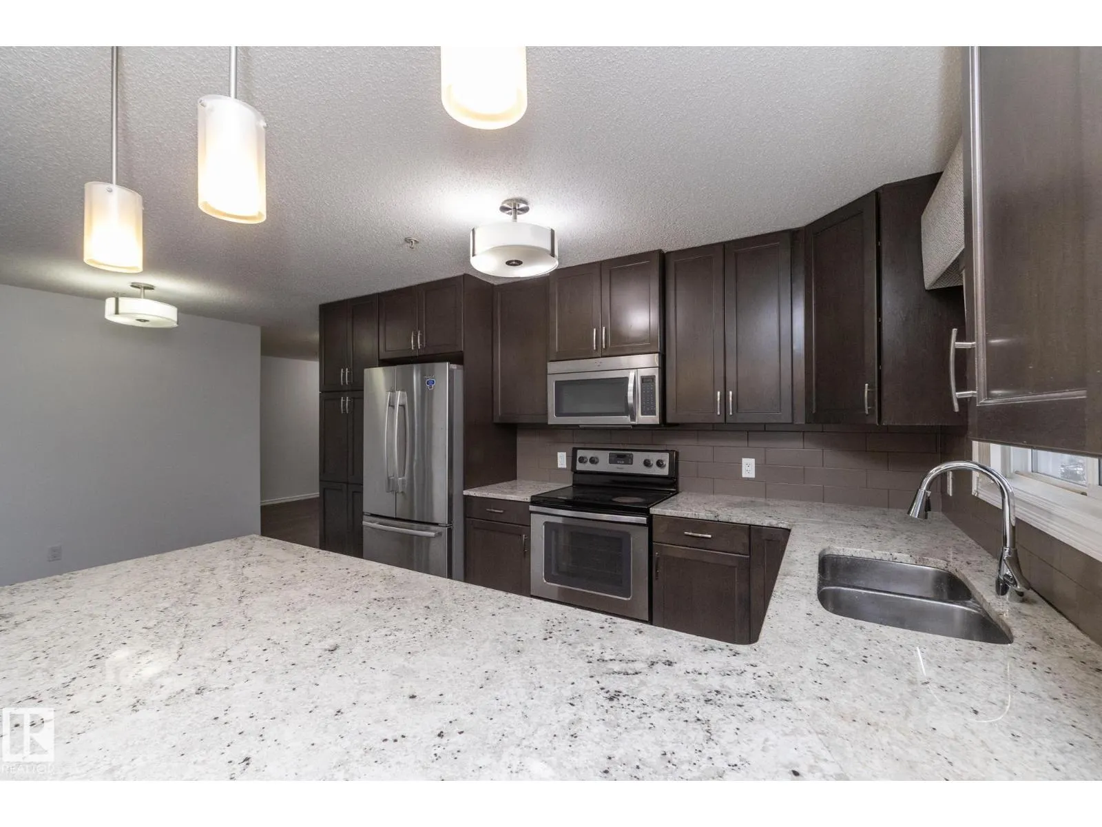 This former Landmark show home unit in Aspen Meadows apart of the community of Larkspur is a ground-floor corner end unit offering 2 bedrooms, 2 full bathrooms, and 951 sq ft of well-designed living space with ALL UTILITIES included in the condo fee. The end-unit layout provides added privacy and natural light throughout. The modern kitchen features granite countertops, stainless steel appliances, and ample counter space, flowing into a bright living area with access to a private patio with gas BBQ hookup. The spacious primary suite includes a walk-through closet and 3-piece ensuite, while the second bedroom and bathroom are well-separated for privacy. Additional highlights include hardwood flooring, in-suite laundry with built-in shelving, and two TITLED parking stallsâone heated underground with storage plus one surface stall. The building offers an exercise room, meeting room, and visitor parking, all close to parks, trails, shopping, transit, and with easy Whitemud and Henday access. (id:27476)