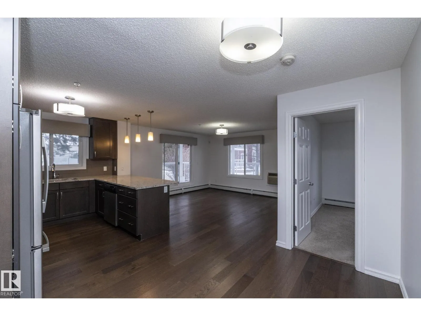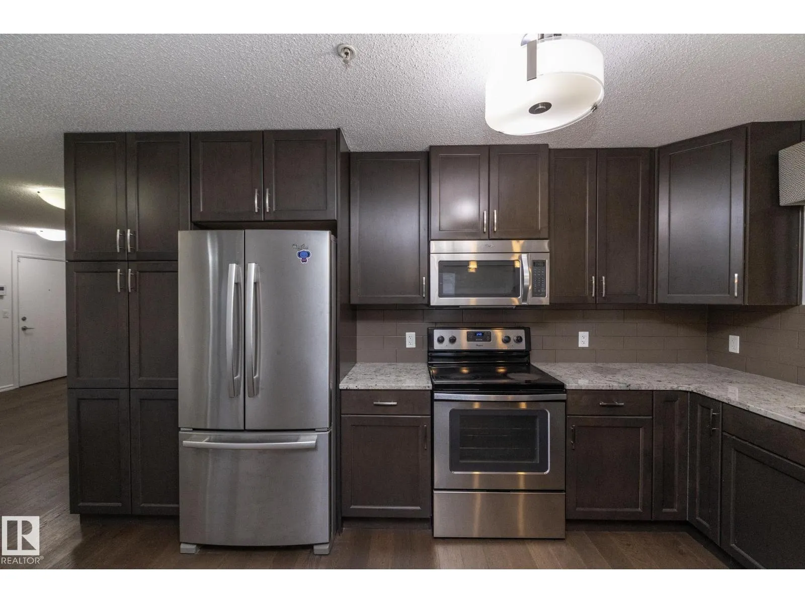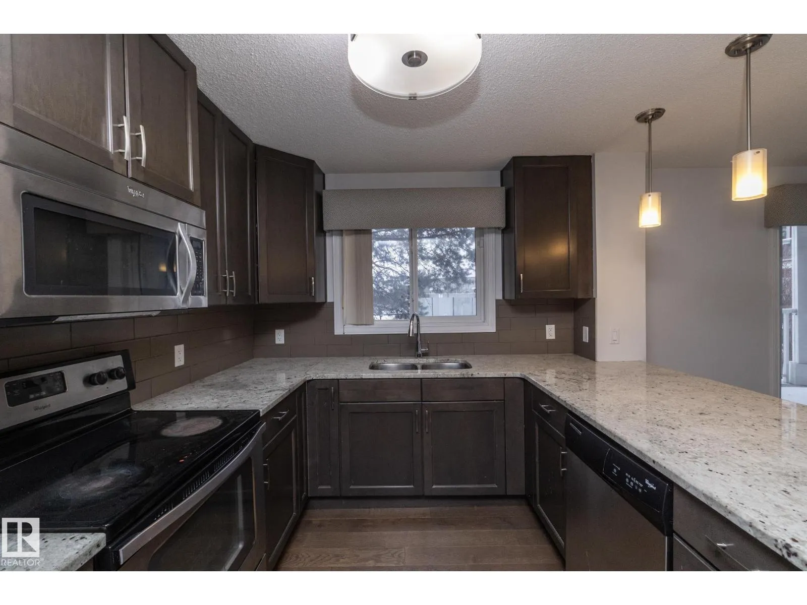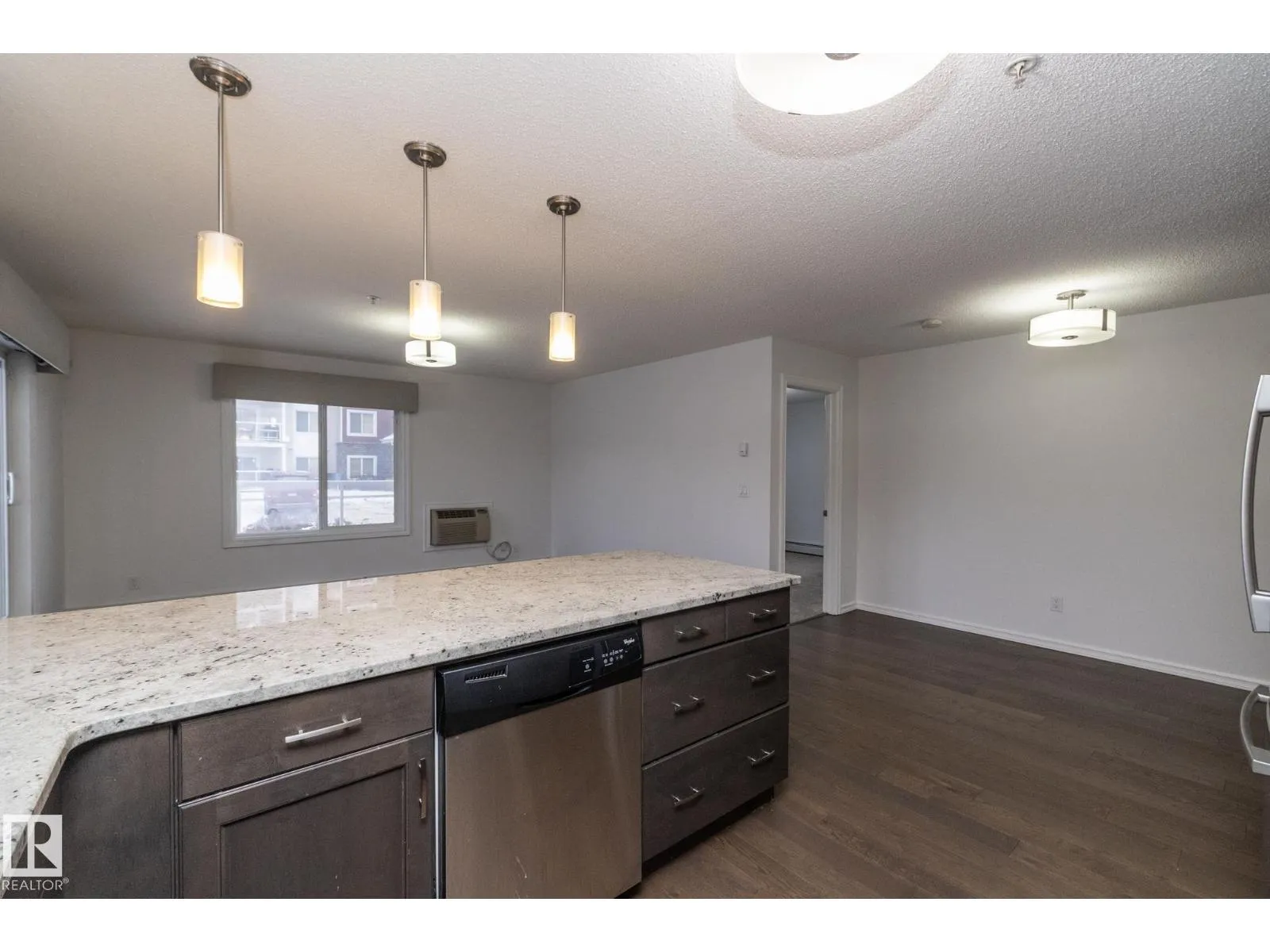 This former Landmark show home unit in Aspen Meadows apart of the community of Larkspur is a ground-floor corner end unit offering 2 bedrooms, 2 full bathrooms, and 951 sq ft of well-designed living space with ALL UTILITIES included in the condo fee. The end-unit layout provides added privacy and natural light throughout. The modern kitchen features granite countertops, stainless steel appliances, and ample counter space, flowing into a bright living area with access to a private patio with gas BBQ hookup. The spacious primary suite includes a walk-through closet and 3-piece ensuite, while the second bedroom and bathroom are well-separated for privacy. Additional highlights include hardwood flooring, in-suite laundry with built-in shelving, and two TITLED parking stallsâone heated underground with storage plus one surface stall. The building offers an exercise room, meeting room, and visitor parking, all close to parks, trails, shopping, transit, and with easy Whitemud and Henday access. (id:27476)