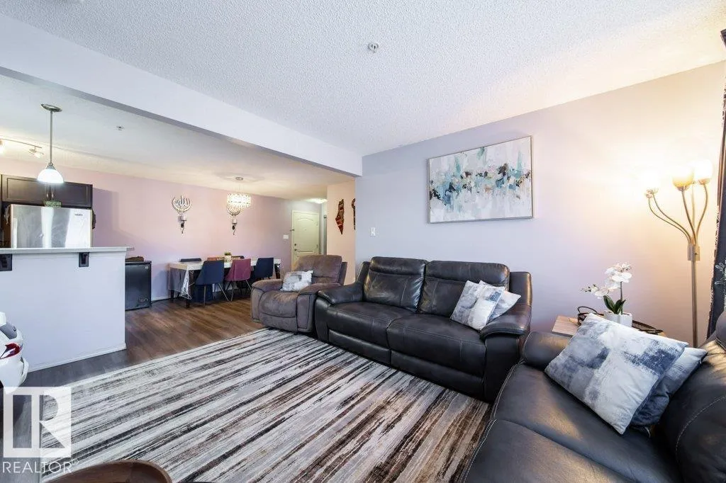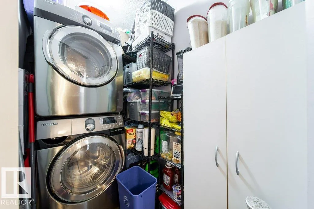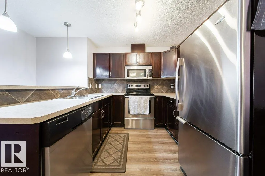 This well-maintained 2 bedroom, 2 full bathroom condo offers incredible value and convenience. Featuring an open-concept layout, vinyl plank flooring through-out, the kitchen is equipped with an island and includes stainless steal appliances â perfect for easy entertaining. The bright central living room opens to a northeast-facing patio through sliding doors, providing a great space to relax. The spacious primary bedroom boasts a walk-in closet and a private 4-piece ensuite. A generous second bedroom is ideal for a home office or guest room, complemented by an additional 4-piece bathroom. Enjoy the convenience of in-suite laundry with a stacking washer and dryer. Situated on the main floor â no stairs or elevators needed â this unit also comes with a heated, titled underground parking stall. Building amenities include an exercise room and a social room. Why rent when you can own this fantastic home. (id:27476)