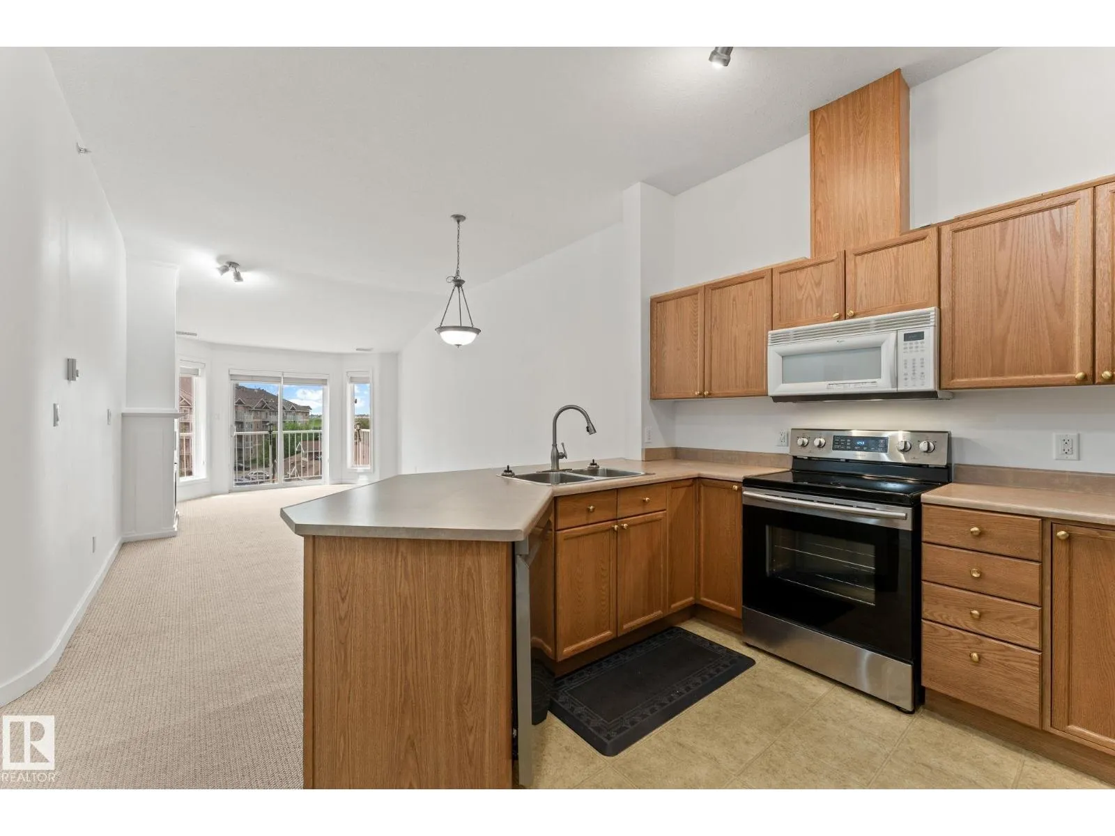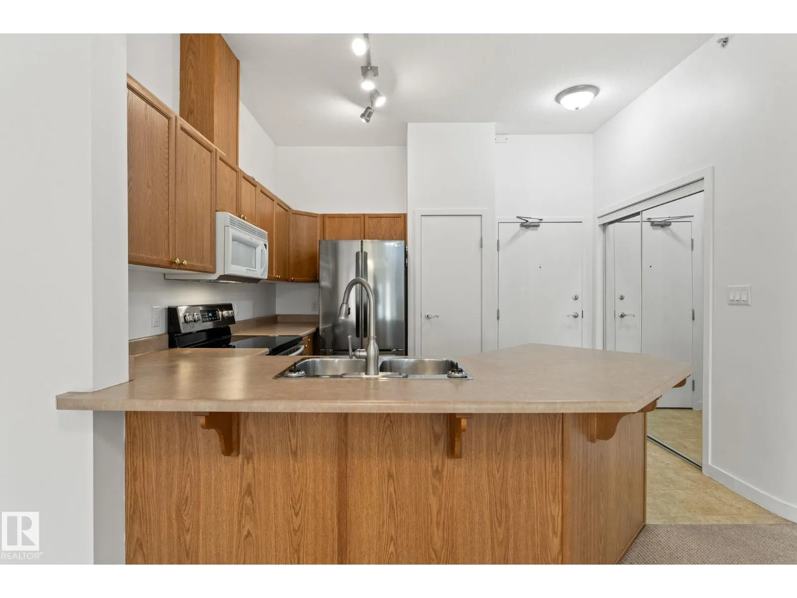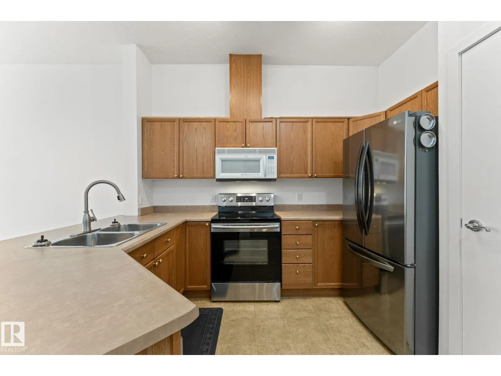 Welcome to the Estates of Clareview! This bright and spacious TOP FLOOR 2 bedroom, 2 bathroom SOUTH FACING condo features VAULTED CEILINGS, and cozy gas FIREPLACE. The open-concept layout includes a functional kitchen with oak cabinets and SS appliances, a generous living area, and in-suite laundry for added convenience. The primary bedroom offers a walk-through closet and full ensuite bathroom. The second bedroom is ideal for guests, an office, or a roommate setup with the second full bath nearby. Includes underground heated parking with a storage cage right in front of the stall. Unbeatable location, literally steps from Clareview LRT TRAIN STATION (perfect for University students, and downtown professionals), shopping, restaurants, and all amenities. Well-managed, pet-friendly complex with a FULL GYM, REC ROOM and social room for special occasions. NEW FRESH COAT OF PAINT professionally done for the new owners. Move-in ready and perfect opportunity for first-time buyers, students, or investors! (id:27476)