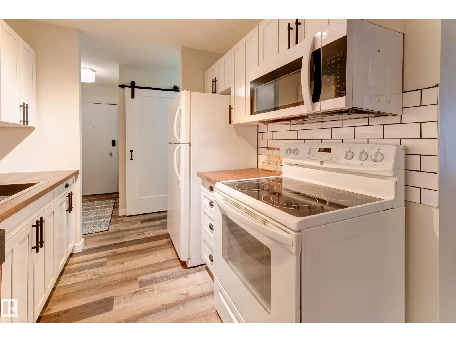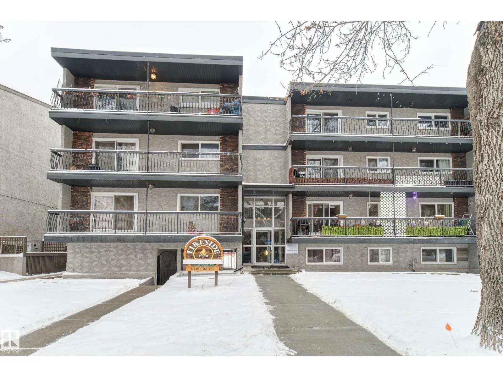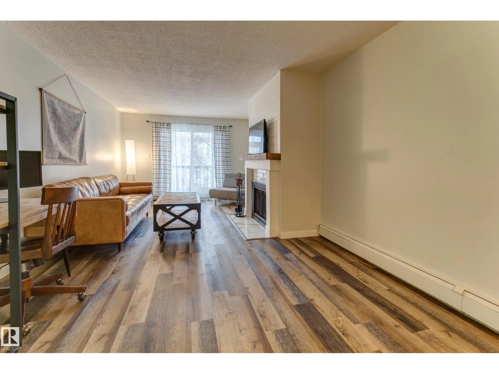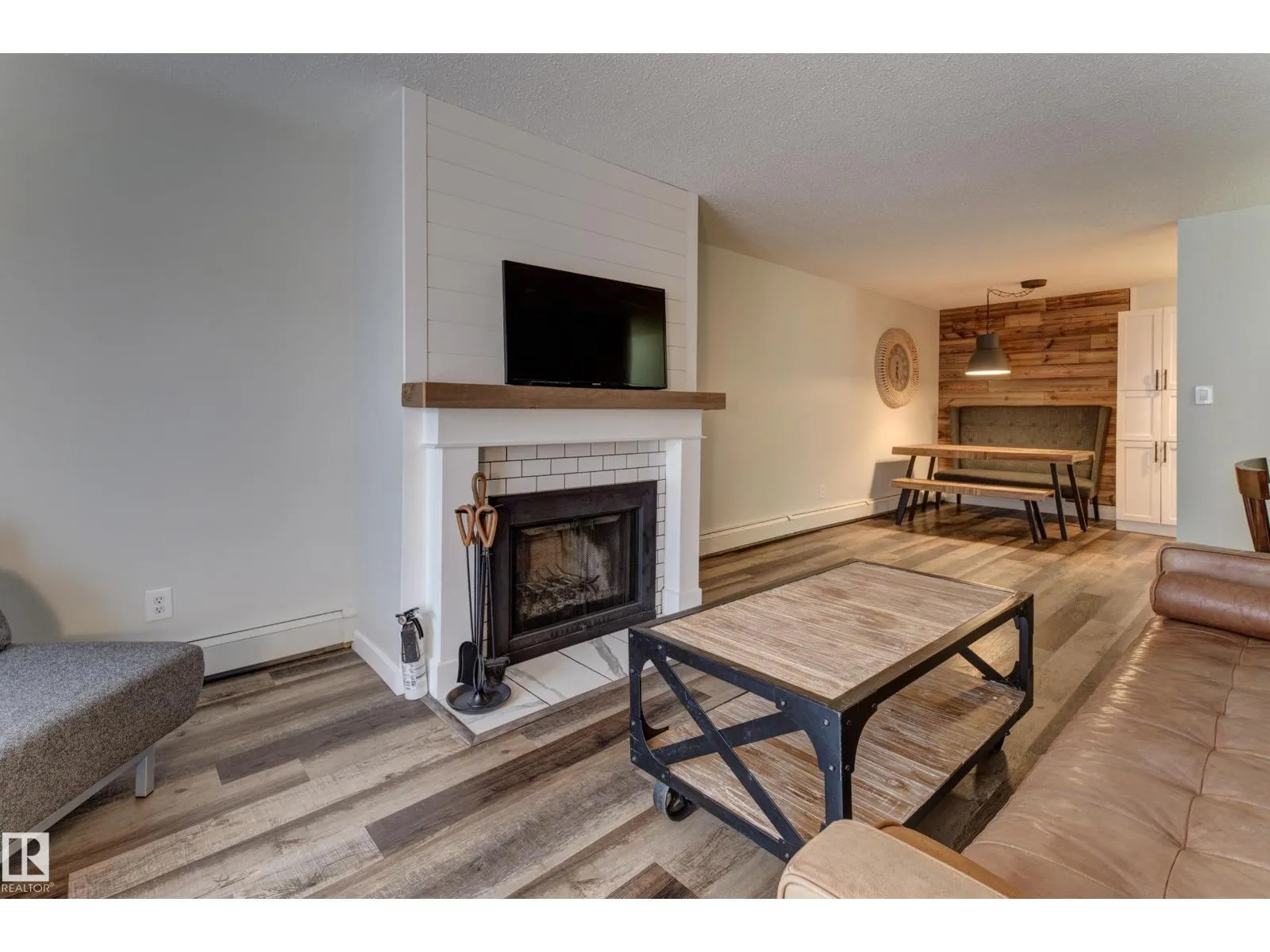 Attention savvy investors & buyers, looking for a property that can cash flow? Consider this FULLY RENOVATED, FULLY FURNISHED top floor, one bedroom, turnkey unit. Located steps to Edmonton's scenic river valley with downtown skyline views, this unit has been completely renovated in a modern farm house style. New vinyl plank & tile flooring throughout. White timeless kitchen cabinets with subway tiles in the kitchen. Fully renovated 4 pc bathroom. New sliding barn doors, light fixtures and fresh paint. Cozy wood burning fireplace in the living room. Full width balcony with downtown skyline view. This unit is perfect for student going to Grant McEwan University or NAIT, someone working downtown, young or retired couple looking to downsize All furniture and decor in the unit are included with sale. (id:27476)