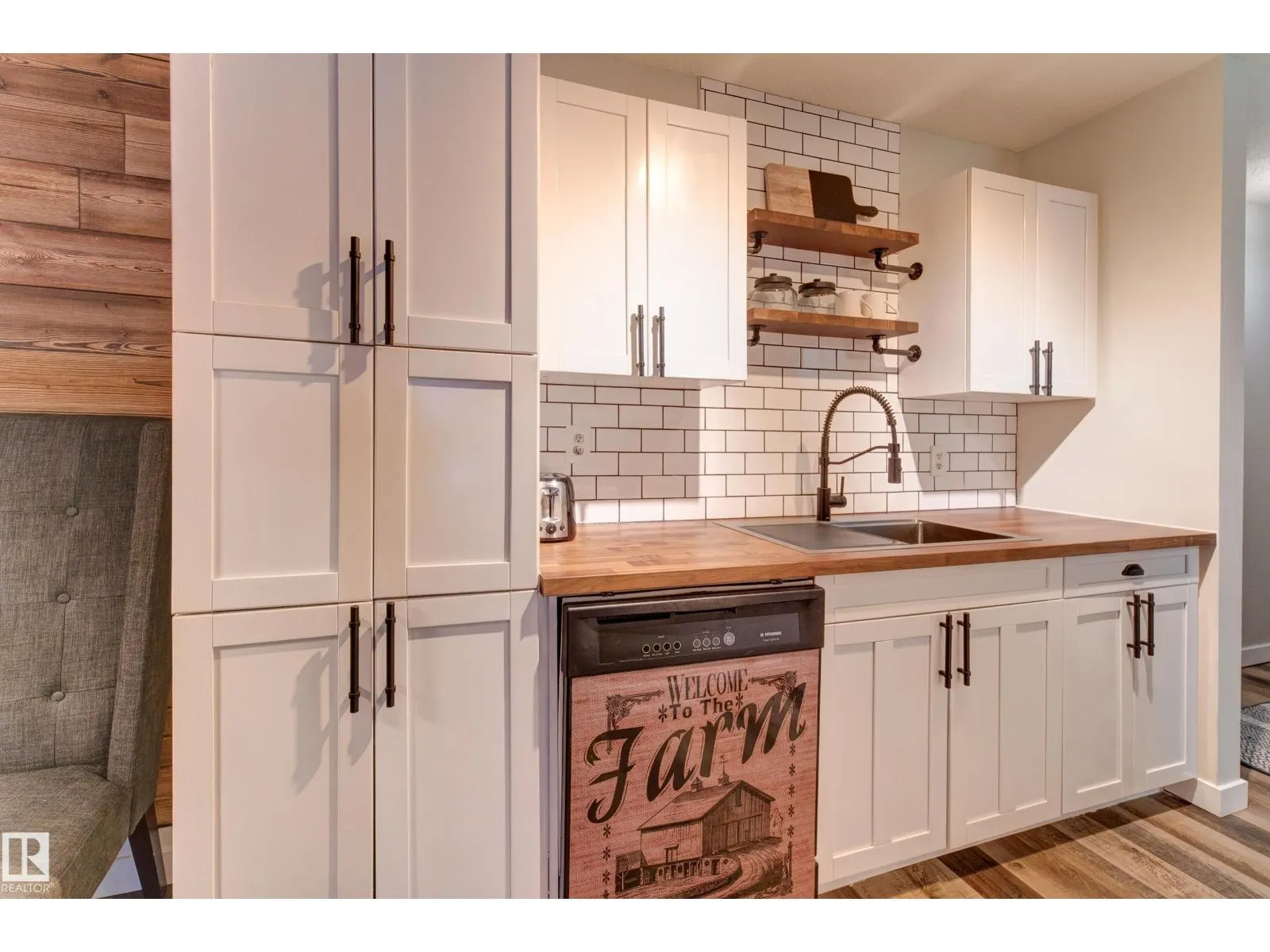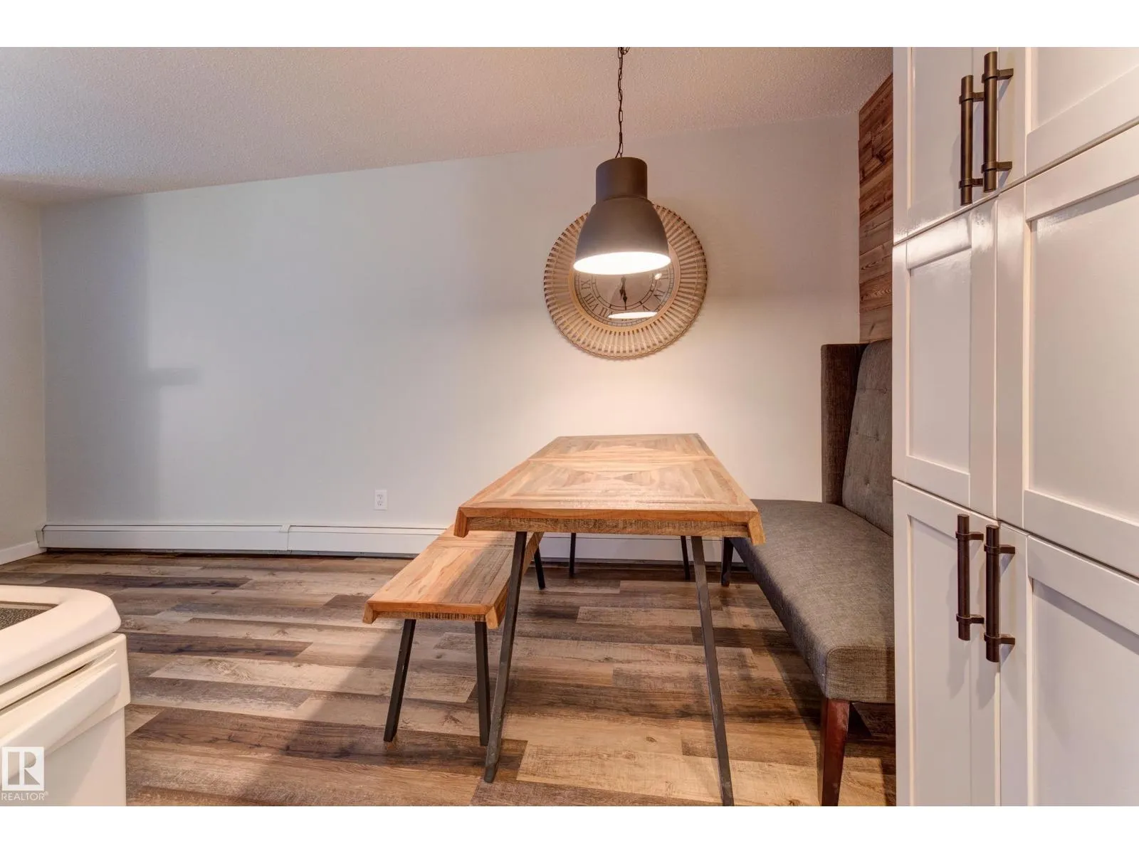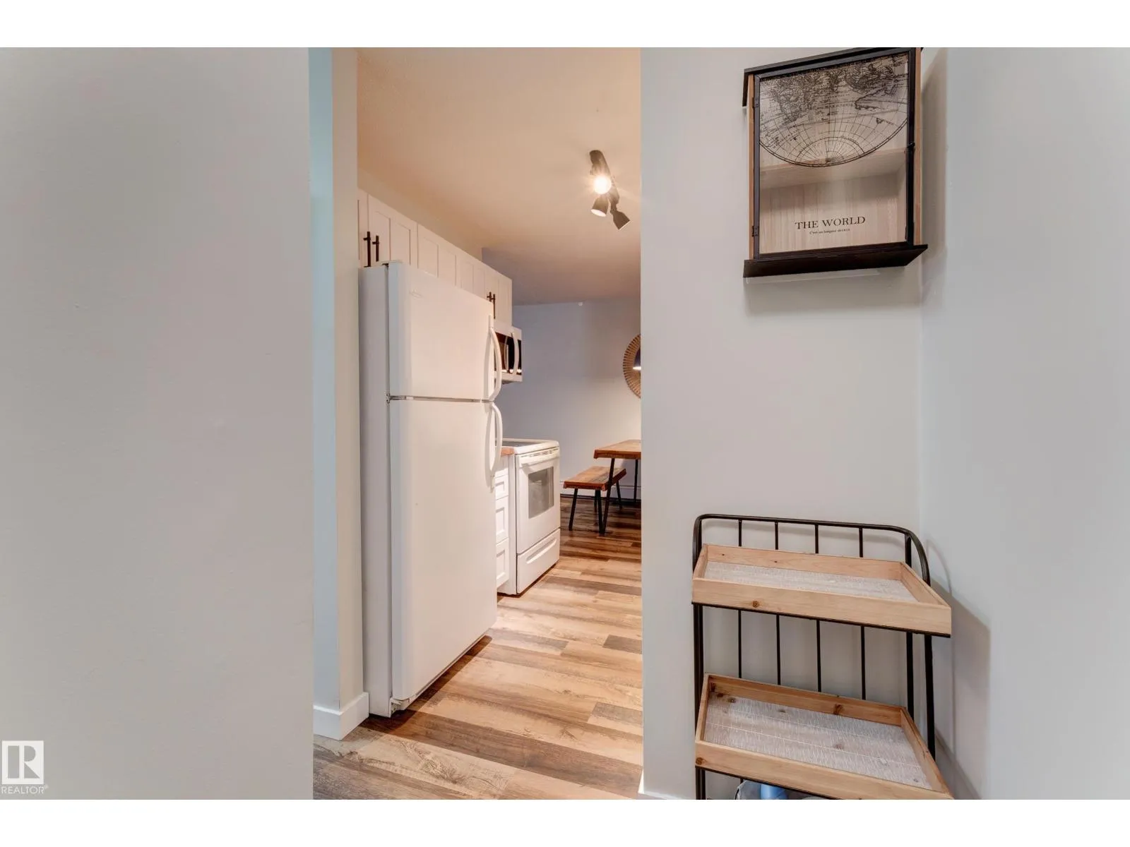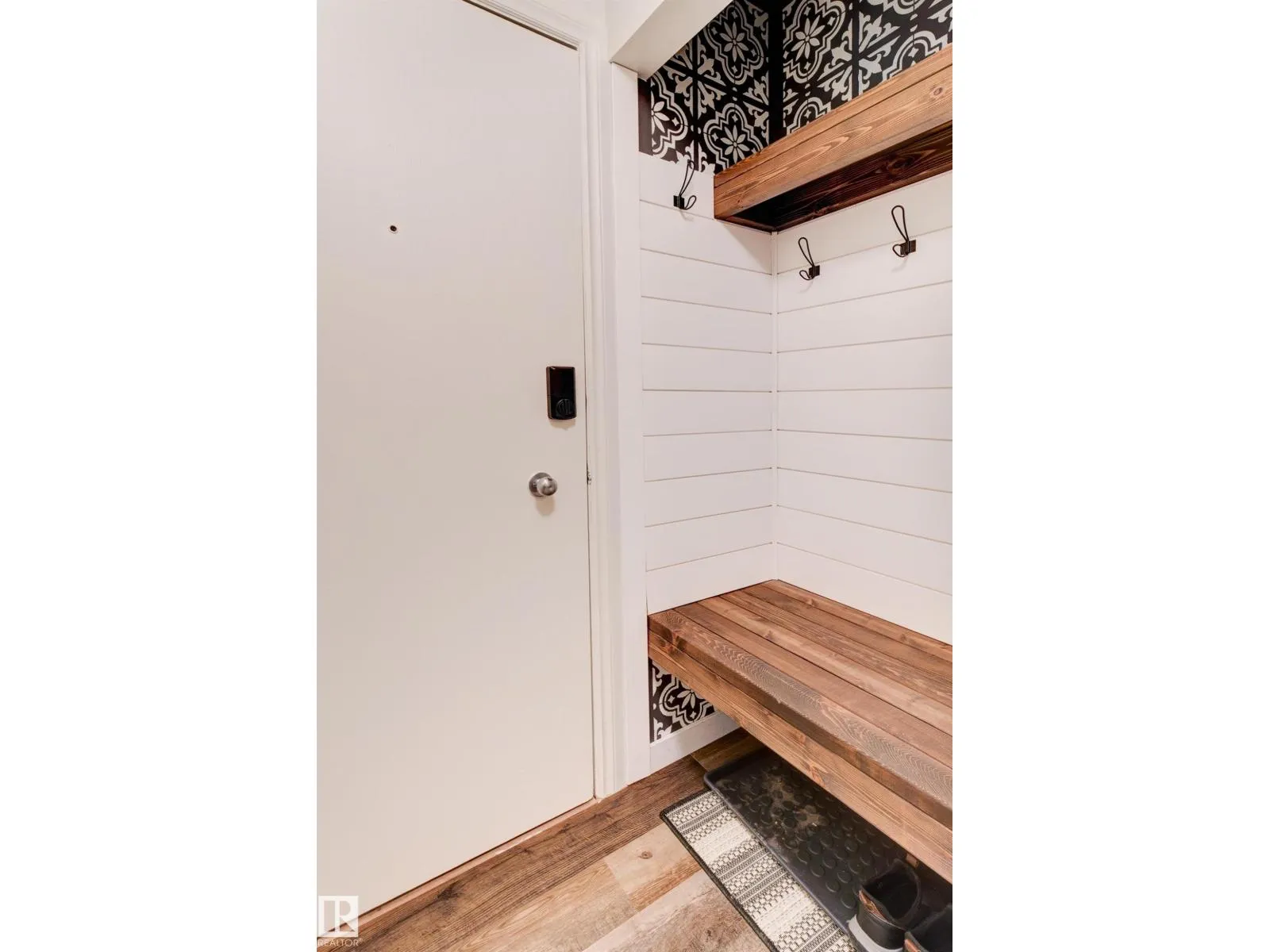 Attention savvy investors & buyers, looking for a property that can cash flow? Consider this FULLY RENOVATED, FULLY FURNISHED top floor, one bedroom, turnkey unit. Located steps to Edmonton's scenic river valley with downtown skyline views, this unit has been completely renovated in a modern farm house style. New vinyl plank & tile flooring throughout. White timeless kitchen cabinets with subway tiles in the kitchen. Fully renovated 4 pc bathroom. New sliding barn doors, light fixtures and fresh paint. Cozy wood burning fireplace in the living room. Full width balcony with downtown skyline view. This unit is perfect for student going to Grant McEwan University or NAIT, someone working downtown, young or retired couple looking to downsize All furniture and decor in the unit are included with sale. (id:27476)