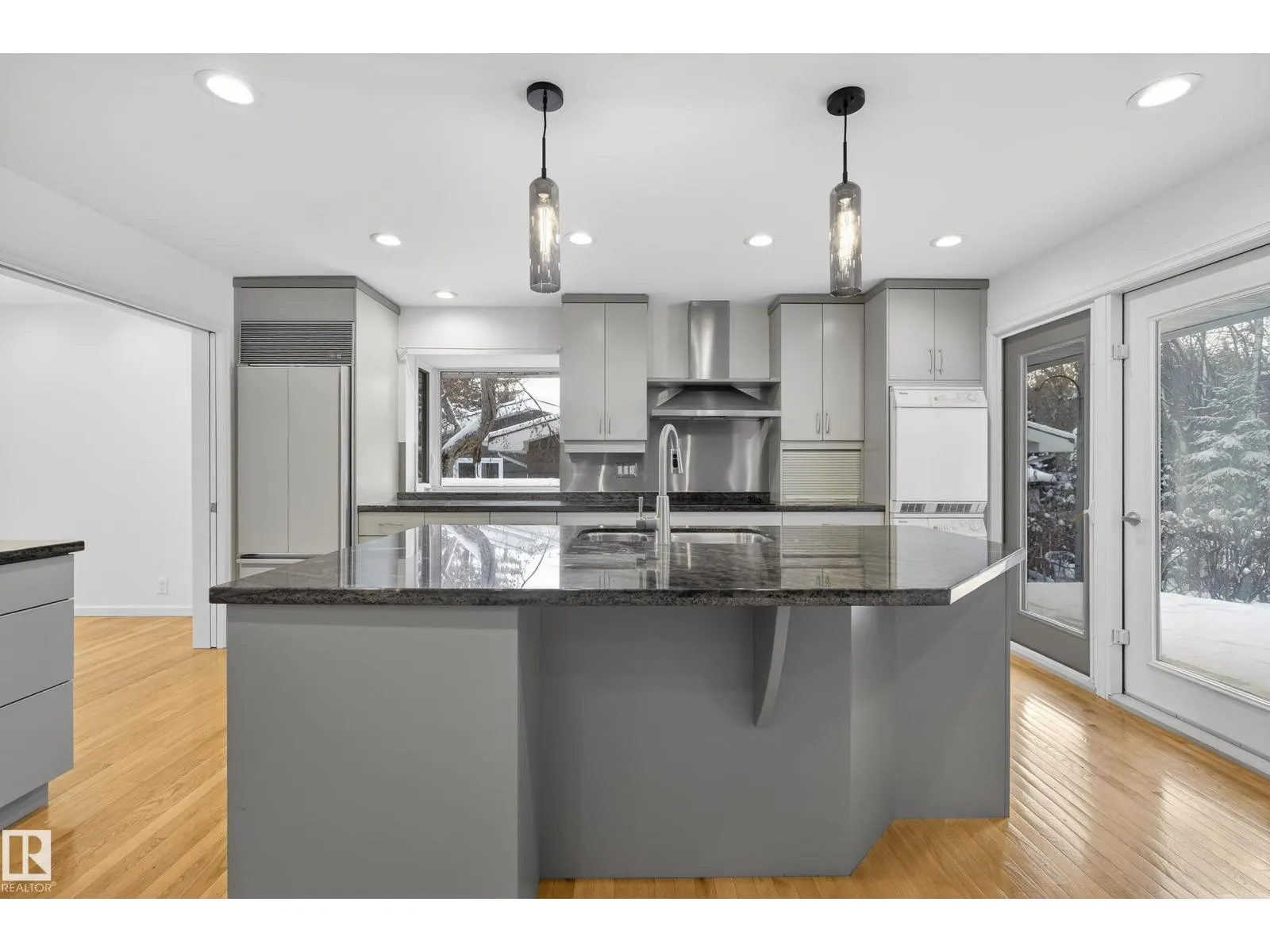 Updated home in a prime Laurier Heights/Buena Vista location steps to the river valley, Laurier Park, Buena Vista Park, and the Edmonton Valley Zoo. Offering 2,820 sq.ft. of total living space (incl. walkout level), this 2+1 bedroom home features a 2004 designer renovation on the main floor with an upgraded kitchen and two renovated baths, including a steam shower. Recent updates include fresh interior/exterior paint (2025), electrical upgrades (2025), new fencing (2025), LeafFilter system (2024), and central A/C. The walkout basement provides a large rec area, an additional bedroom, and potential to add more bedrooms if needed. Custom built-ins in the walkout level are included. Double detached garage and quick access to major routes, U of A, downtown, and nearby shopping. Some Photos have been staged (id:27476)