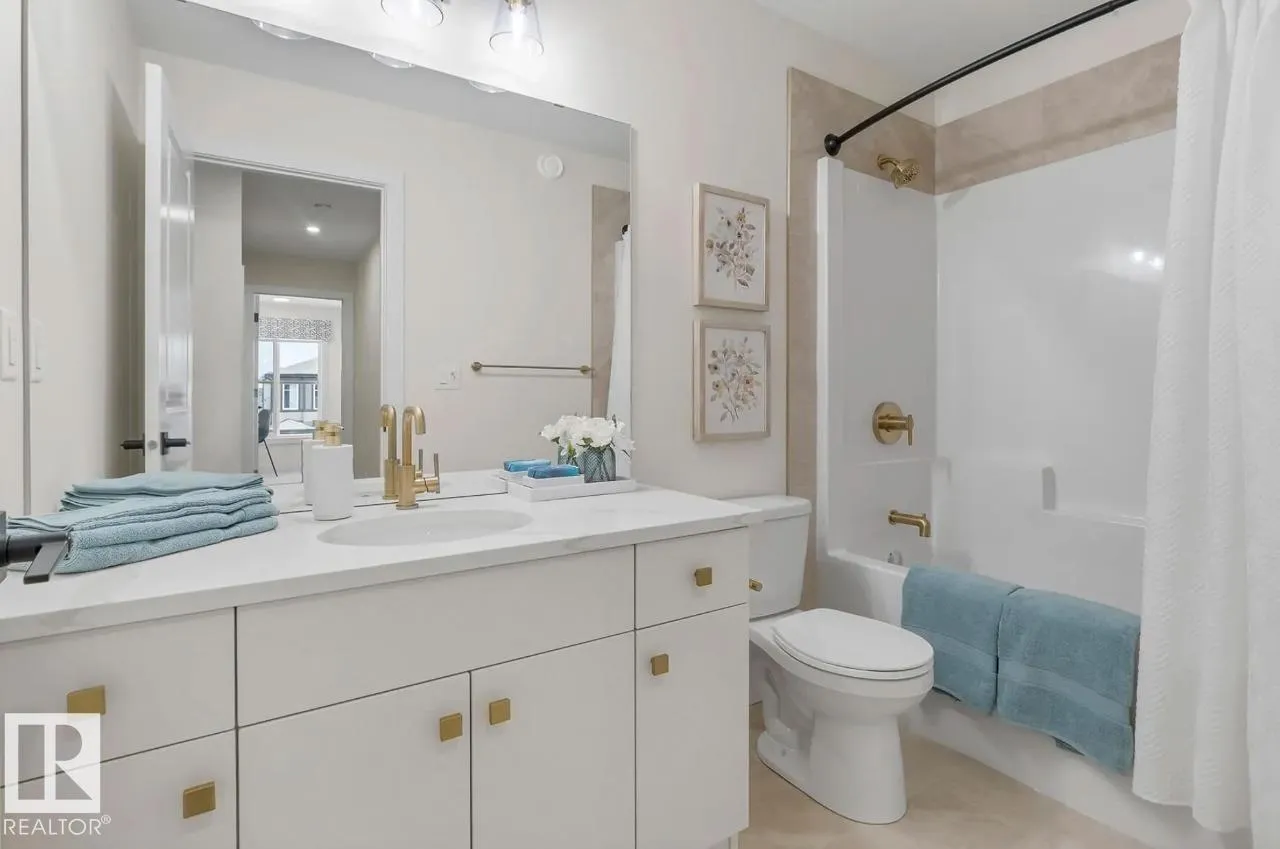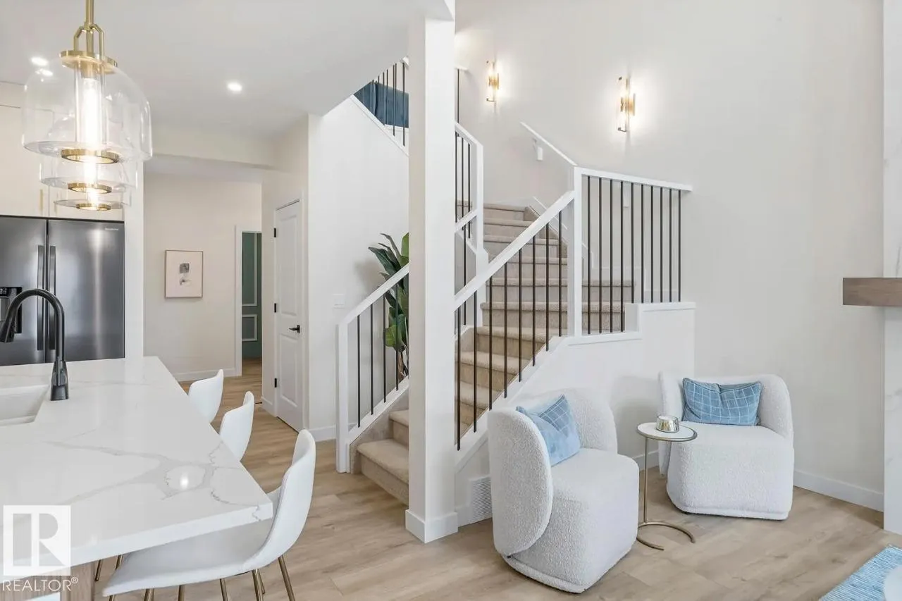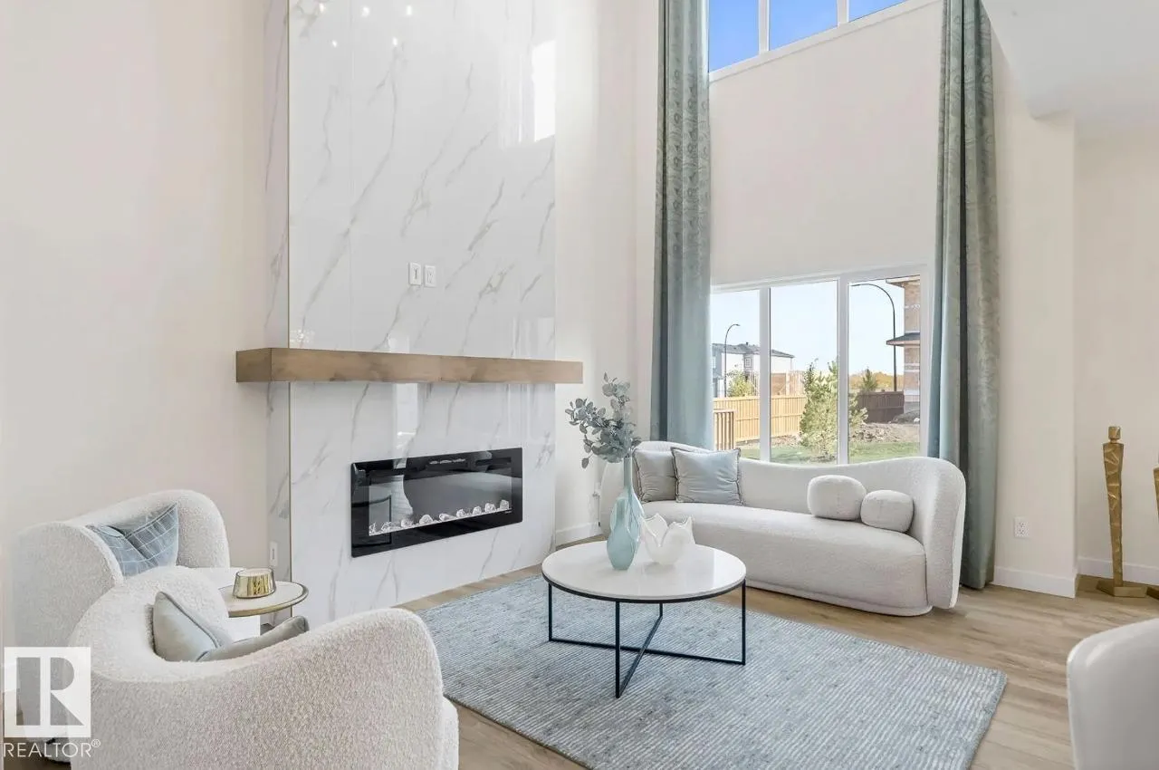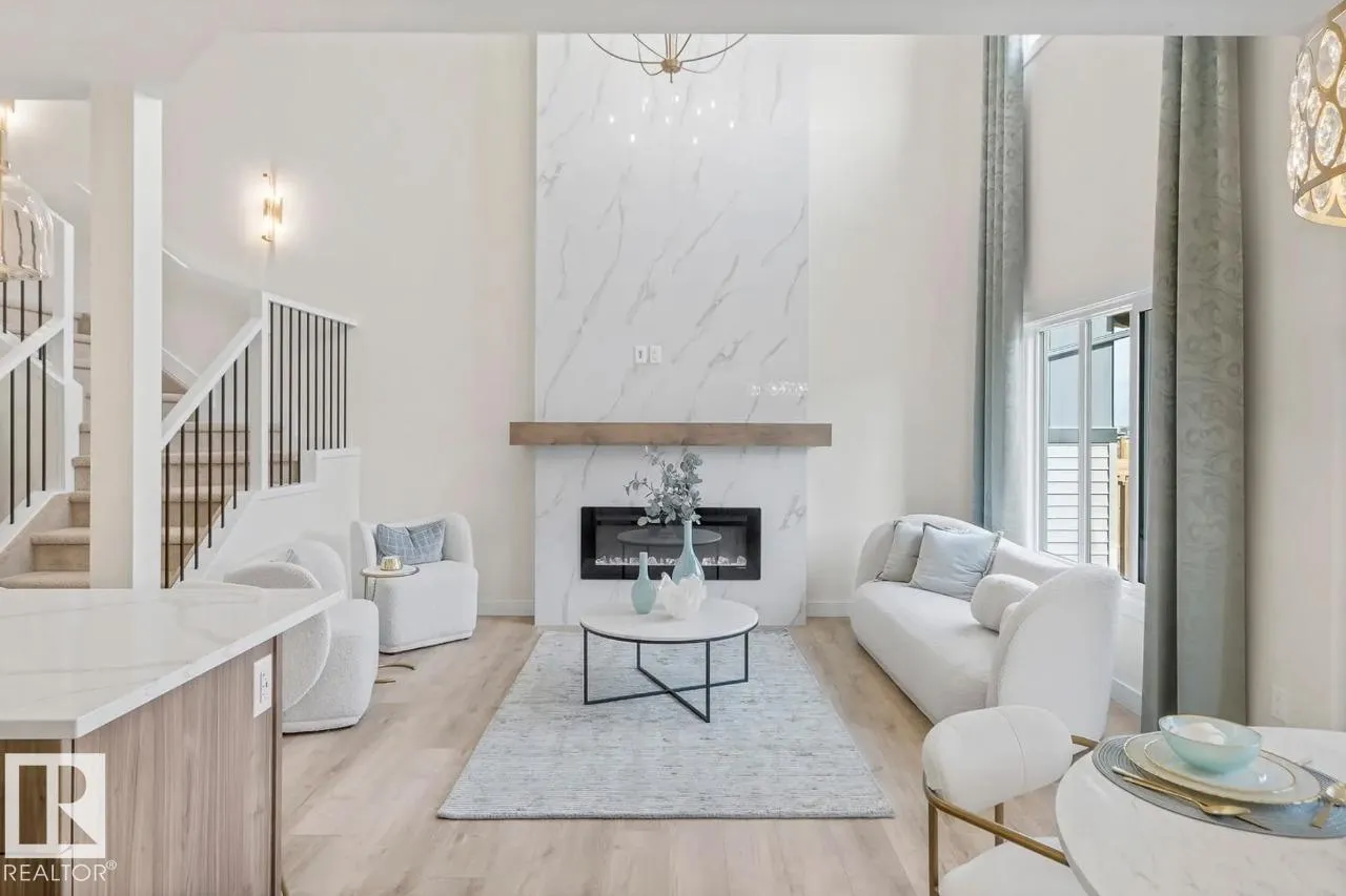 Scheduled for April 2026 possession, 320 27 Street SW offers 2,223 sq ft of spacious, modern living by San Rufo Homes. This 4-bedroom, 3.5-bathroom home features a bright open-concept main floor with a spice kitchen, main-floor bedroom and full bath, and a stylish kitchen with quartz countertops, modern cabinetry, and luxury vinyl plank flooring flowing into the dining and living areas. A side entry adds flexibility for future basement potential. Upstairs, the primary bedroom includes a walk-in closet and private ensuite, complemented by three additional bedrooms, a full bath, a central bonus room, and convenient second-floor laundry. Built with a 9â foundation, this home offers added ceiling height and long-term value. A double attached garage provides secure parking and storage. Located in the desirable Alces community, close to parks, pathways, and amenities, this home blends style, comfort, and functional design for todayâs family. Photos are representative. (id:27476)