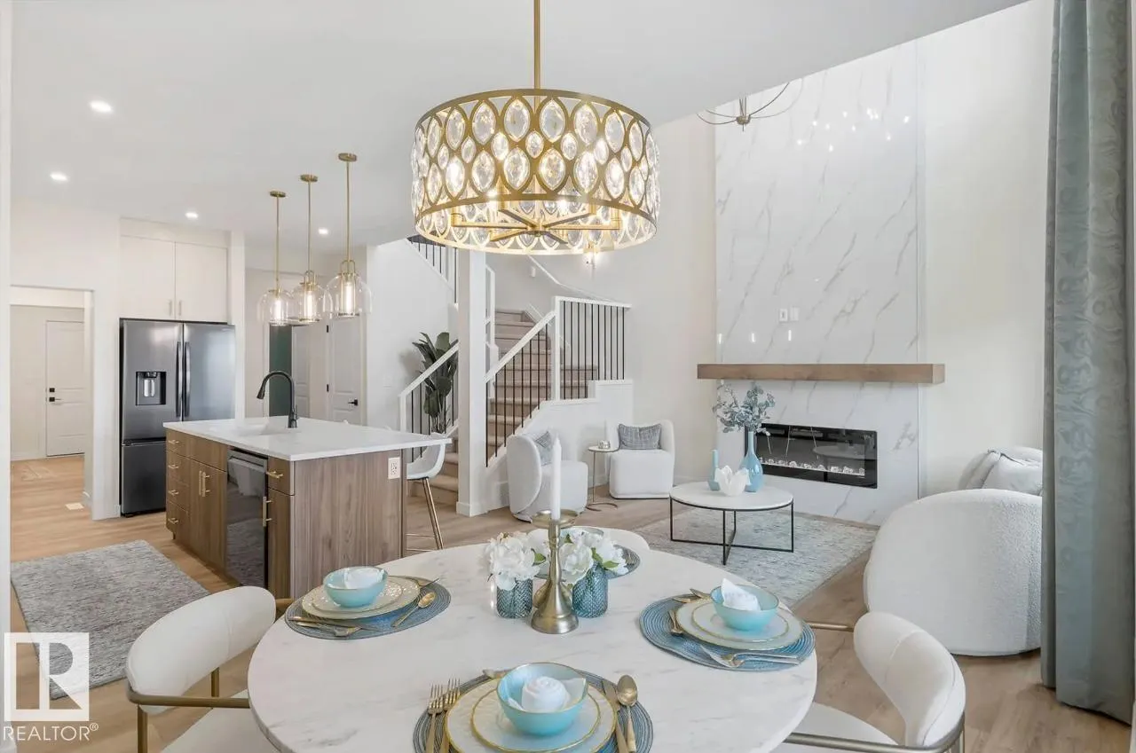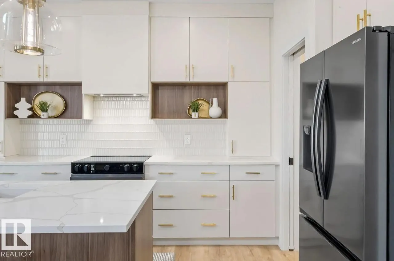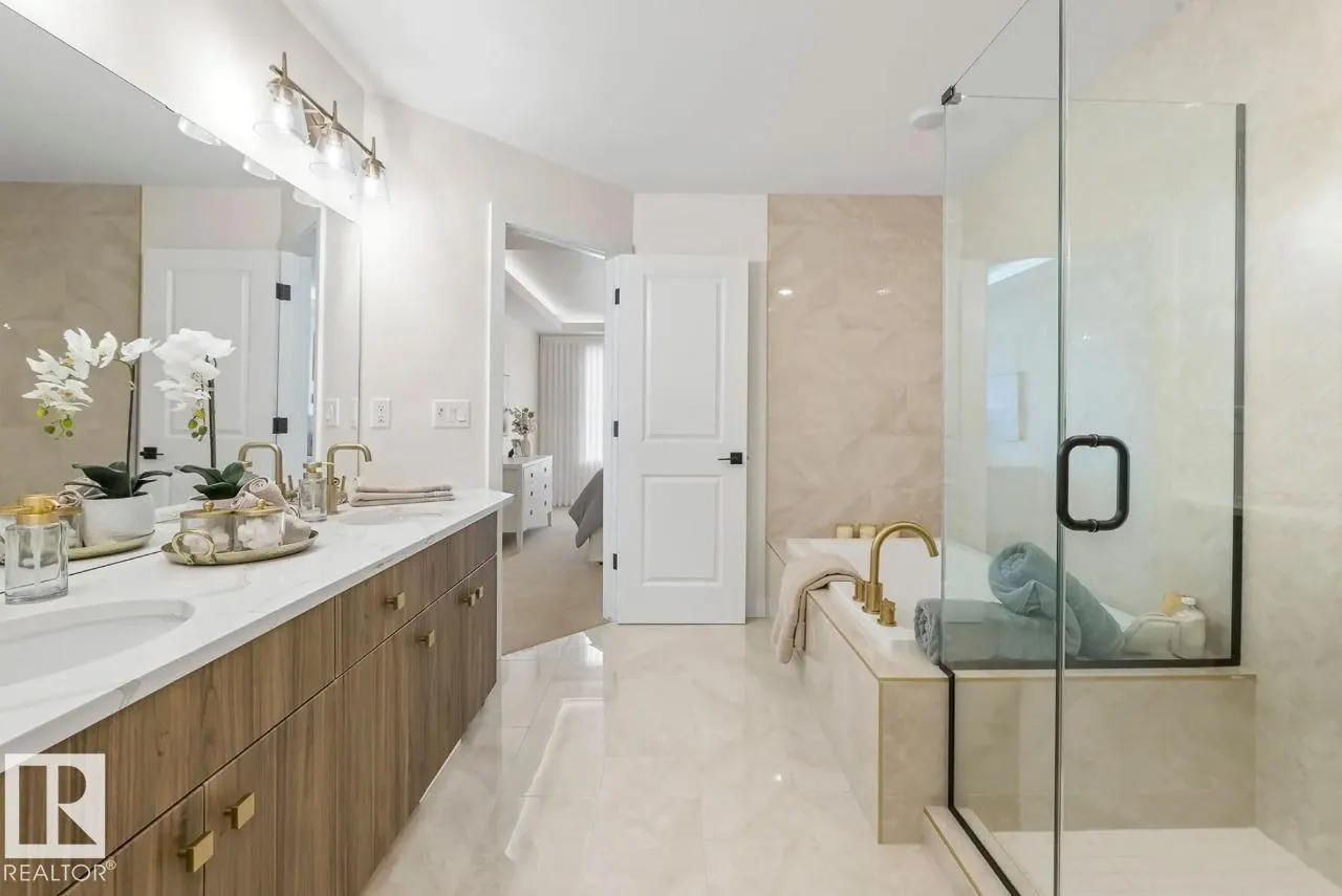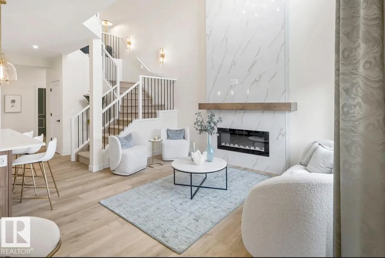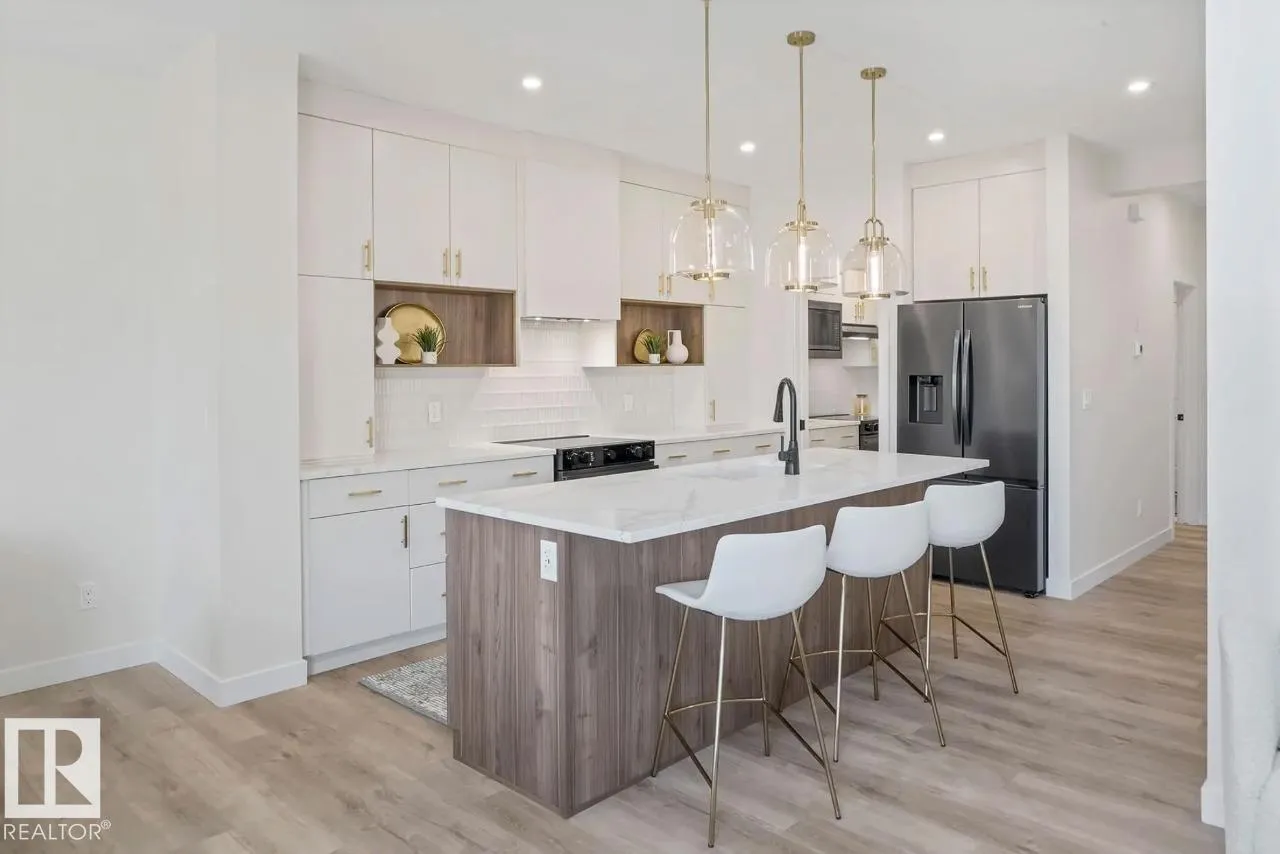Scheduled for April 2026 possession, 320 27 Street SW offers 2,223 sq ft of spacious, modern living by San Rufo Homes. This 4-bedroom, 3.5-bathroom home features a bright open-concept main floor with a spice kitchen, main-floor bedroom and full bath, and a stylish kitchen with quartz countertops, modern cabinetry, and luxury vinyl plank flooring flowing into the dining and living areas. A side entry adds flexibility for future basement potential. Upstairs, the primary bedroom includes a walk-in closet and private ensuite, complemented by three additional bedrooms, a full bath, a central bonus room, and convenient second-floor laundry. Built with a 9â foundation, this home offers added ceiling height and long-term value. A double attached garage provides secure parking and storage. Located in the desirable Alces community, close to parks, pathways, and amenities, this home blends style, comfort, and functional design for todayâs family. Photos are representative. (id:27476)