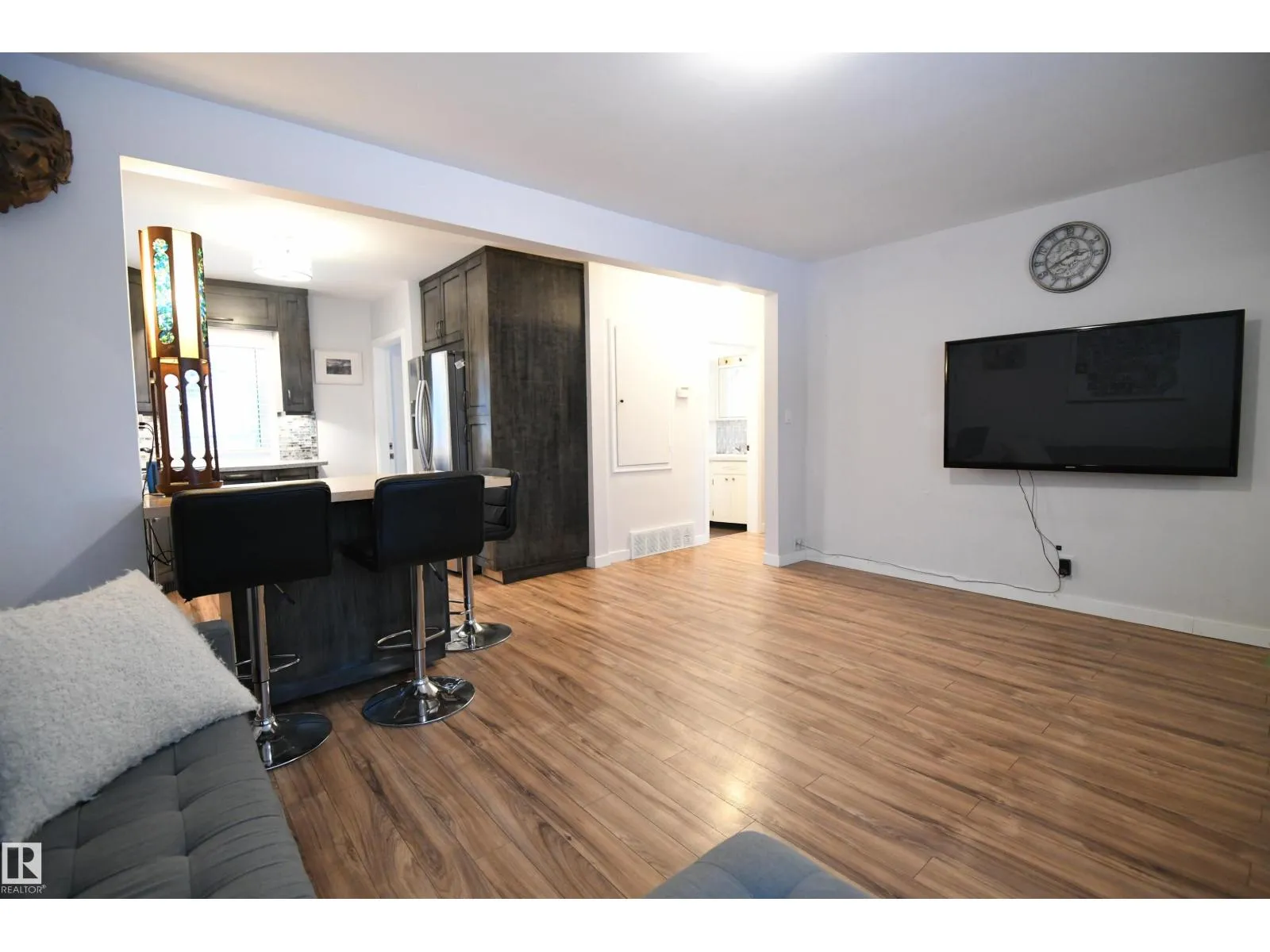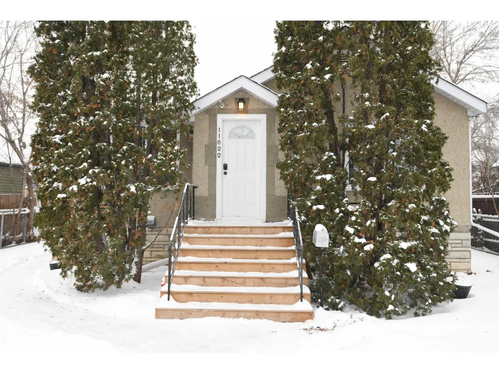 Sitting on a large 50'x150' lot, on a quiet tree lined street in Inglewood, this renovated & upgraded bungalow, with vinyl windows & recent shingles, is a great find. 2 nice sized bedrooms on the main floor, with large windows, & hardwood floors. The master easily supports large bedroom furniture. The living room and kitchen are truly open spaces. Again, the large windows let in nice natural light, and the modern kitchen has full height cabinetry, a great stainless appliance package with a gas stove, French door fridge, undercabinet lighting, & a glass tile backsplash. Fully finished basement with a large rec room, a 3rd bedroom/flex area, & a full walk up wet bar with a fridge, perfect for snacks & refreshments while enjoying your family or home theater time. Huge rear yard with a 16'x29' deck makes for a great 3 season hangout. The yard size is impressive, and will catch your attention. An older oversized single garage sits at the rear, with a gate for additional or RV parking. Pack your bags. (id:27476)