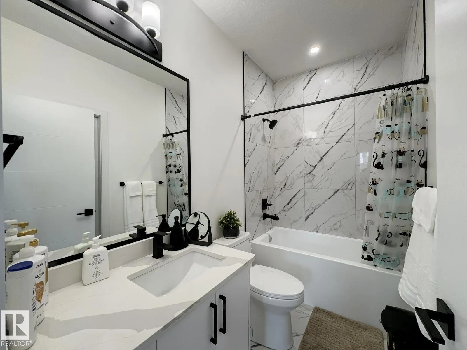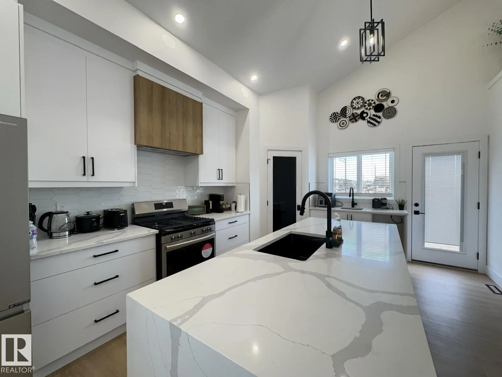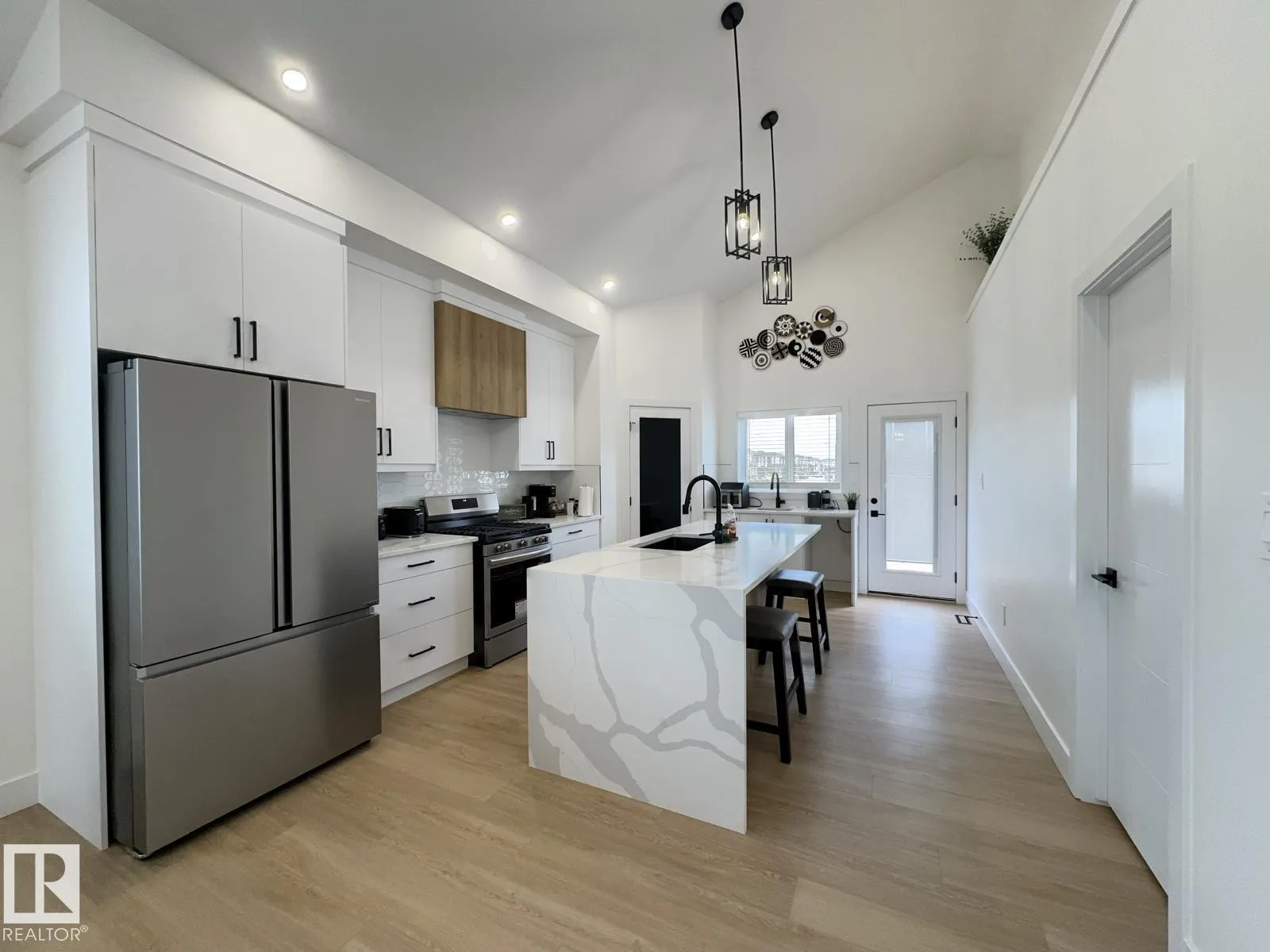 Enjoy this stunning, bright spacious Upper-Level Home with a fabulous cathedral ceiling! This 2023 constructed bi-level offers over 1800 sqft of modern lifestyle living! Loads of light floods the main floor from all the windows on this corner lot location. Enjoy contemporary sleek design w/ high end finishes & custom builds. Cook in your gourmet style kitchen w/ your gas stove, large prep island along w/ your side counter & bar sink. This Upper-Level Home offers 4 bedrooms, 3 full baths including 2 ensuites & main floor laundry. Enjoy the master bedrooms, walk-in closet & 5-piece ensuite w/ a beautiful jacuzzi tub, separate shower, w/ separate his/hers sinks all above the garage w/ plenty of room & privacy too. Main floor offers 3 bedrooms, 1-3-piece ensuite, 1-4-piece bath & 3 bedrooms along with your open-concept kitchen, living & dining areas. Located in a peaceful, family-friendly neighborhood, this bi-level home is close to schools, parks, shopping & major highways for easy commuting. (id:27476)