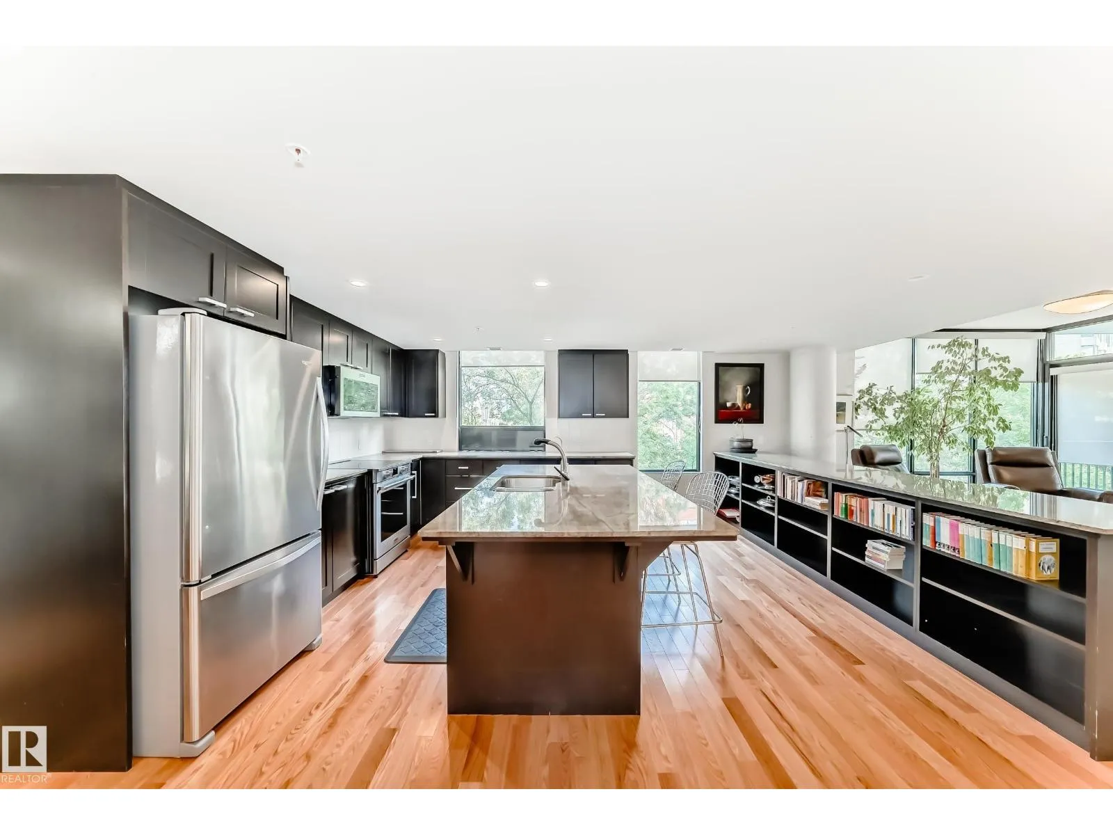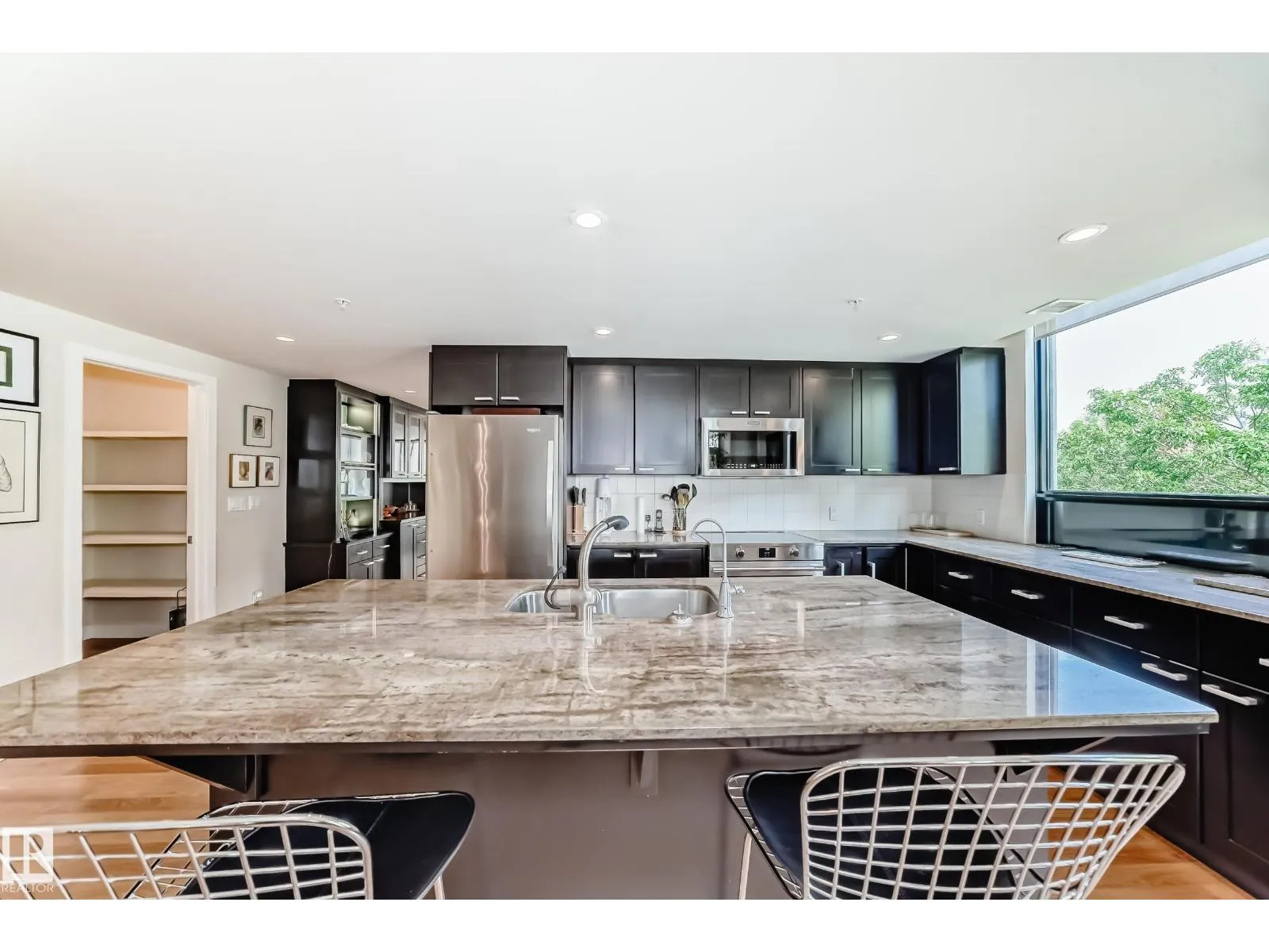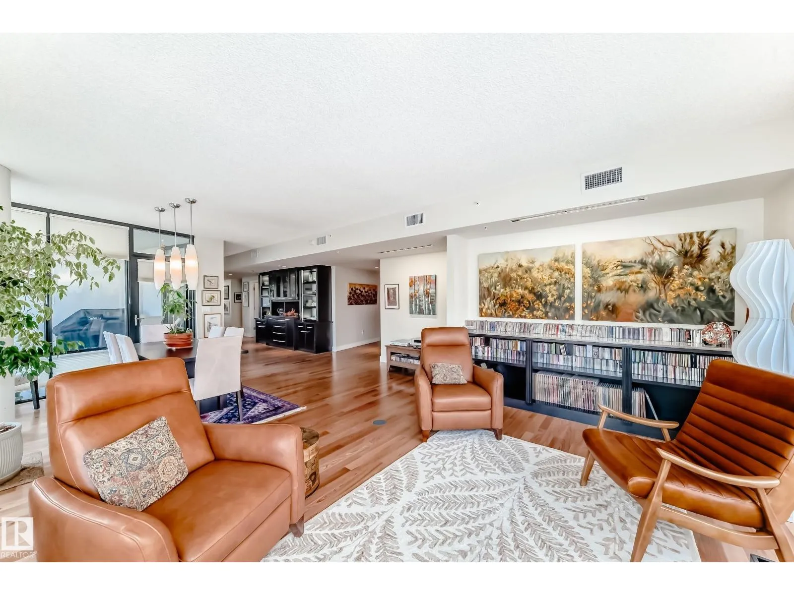 Amazing size 2,749 sq ft of elegance, wine cellar, office, Dream Chef +++ Kitchen for the body and soul unlike any other! Wraparound mature tree views from wall size windows in living and dining roomsâ high celings complemented by two balconiesâthis serene retreat must be seen to appreciate its timeless elegance. Extensive custom cabinetry is perfect for your cherished possessions. The showcase kitchen with endless counters and cabinets plus a temperature controlled wine cellar is perfect for entertaining and opens to a cozy family room with fireplace. A window-wrapped den lined with bookshelves creates the perfect retreat, while the breathtaking primary suite with wall-to-wall custom cabinetry is an oasis of calm. With two additional bedrooms (one currently a library), a serious amount of in-suite storage space, two titled parking stalls, exceptional downtown walkability to all amenities and the river valley steps away, this home perfectly fits the effortless living urban lifestyle you are looking for. (id:27476)