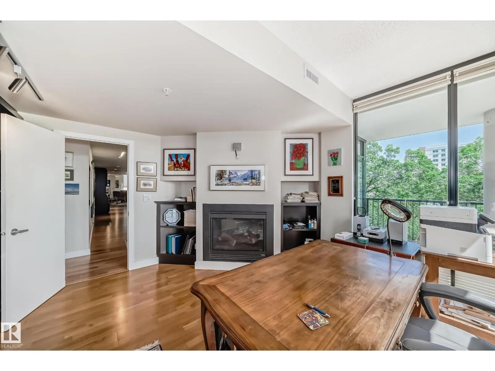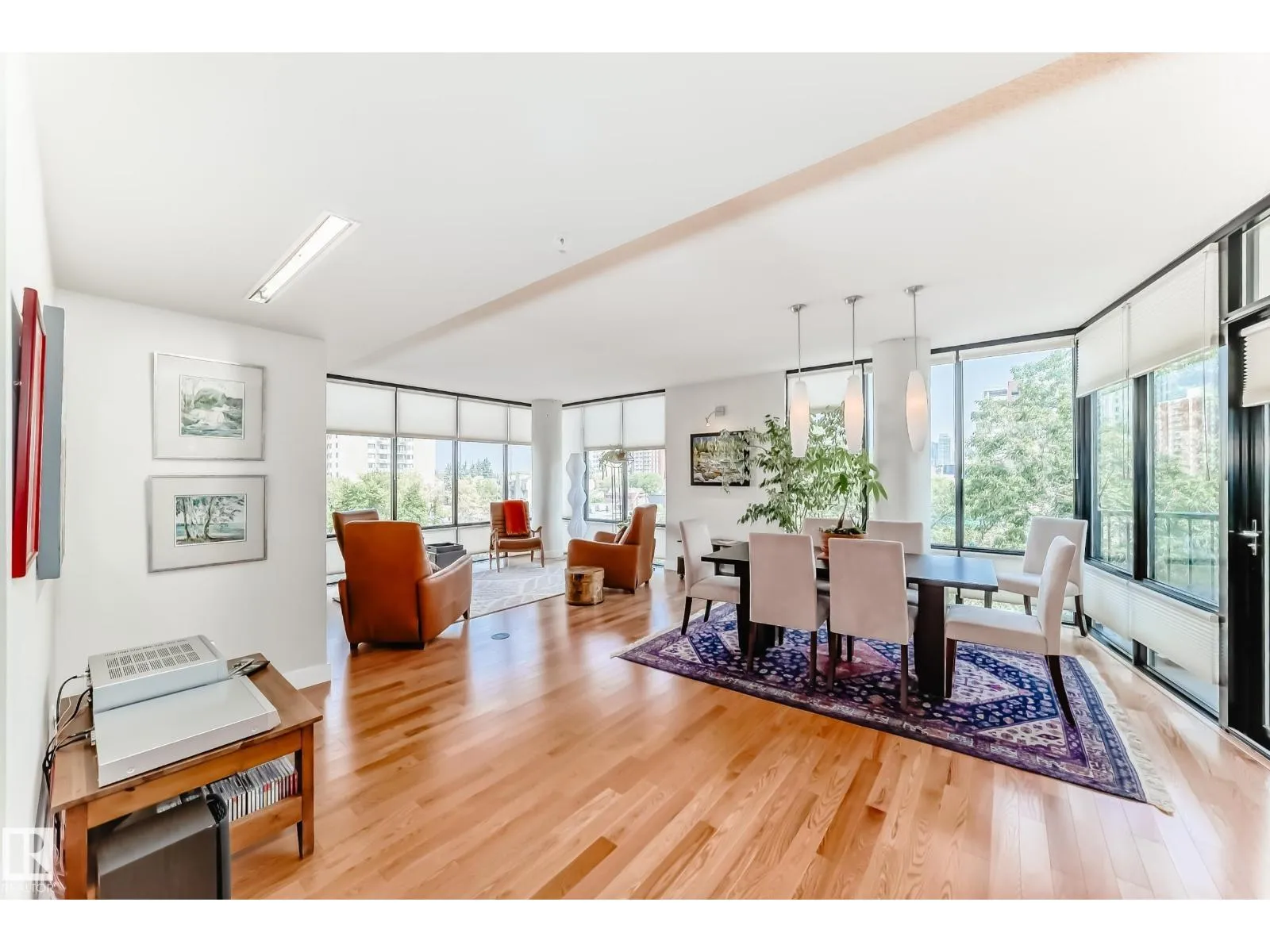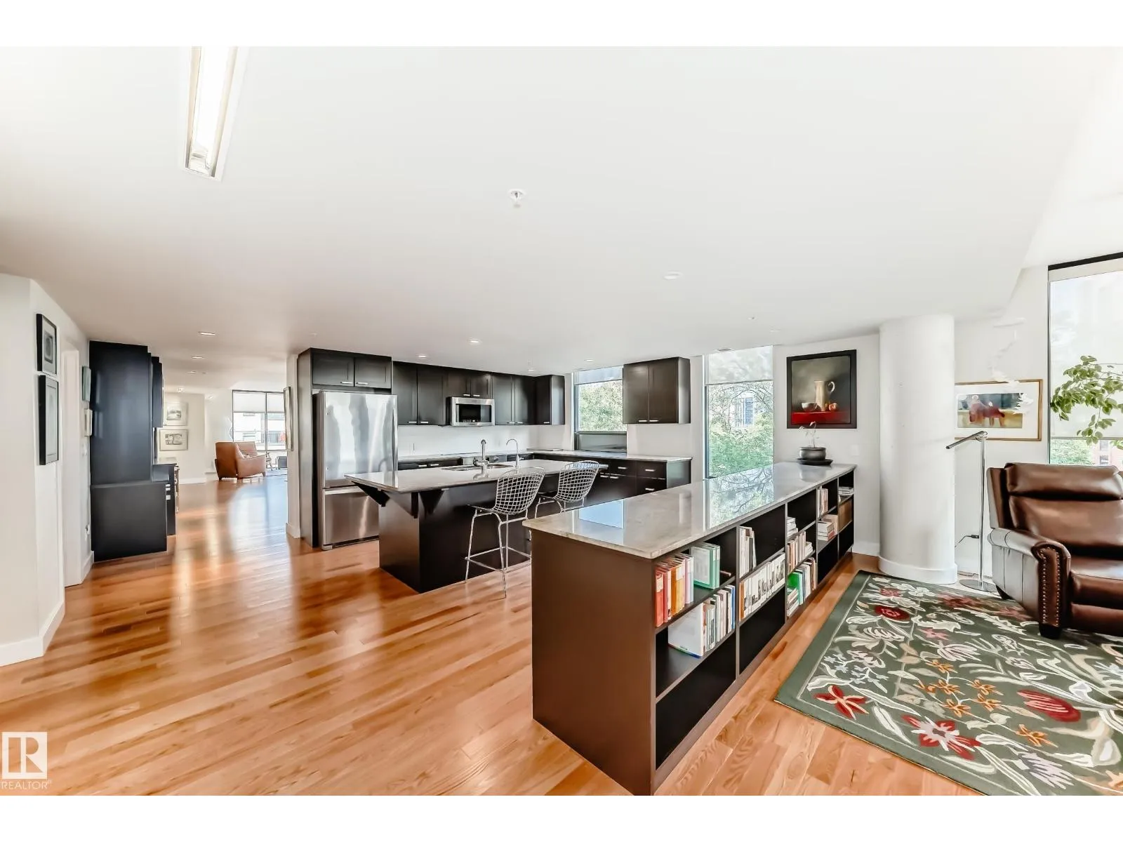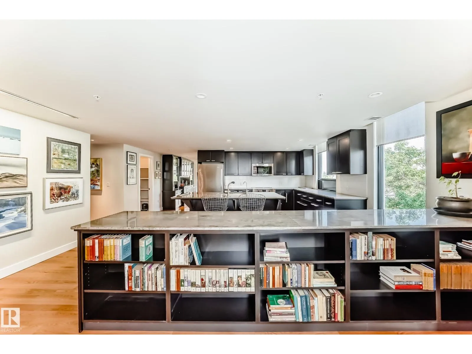 Amazing size 2,749 sq ft of elegance, wine cellar, office, Dream Chef +++ Kitchen for the body and soul unlike any other! Wraparound mature tree views from wall size windows in living and dining roomsâ high celings complemented by two balconiesâthis serene retreat must be seen to appreciate its timeless elegance. Extensive custom cabinetry is perfect for your cherished possessions. The showcase kitchen with endless counters and cabinets plus a temperature controlled wine cellar is perfect for entertaining and opens to a cozy family room with fireplace. A window-wrapped den lined with bookshelves creates the perfect retreat, while the breathtaking primary suite with wall-to-wall custom cabinetry is an oasis of calm. With two additional bedrooms (one currently a library), a serious amount of in-suite storage space, two titled parking stalls, exceptional downtown walkability to all amenities and the river valley steps away, this home perfectly fits the effortless living urban lifestyle you are looking for. (id:27476)