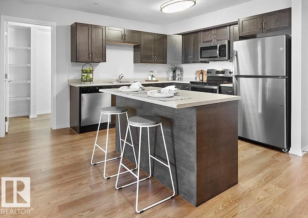 Welcome to the highly desirable neighbourhood of Summerside! Close to all amenities, parks & transit. This main floor 1 bedroom 1 bath home features an open concept kitchen & great room. Youâll find direct access to the spacious patio. Modern finishes throughout with luxury vinyl plank flooring & fresh paint means you can move in ASAP & make this your new home. The main bathroom is spacious & the unit also has an insuite laundry/storage room. Non-Smoking & Pet friendly building. On site management. Both underground & outdoor parking available. Rent includes heat & water. Currently offering 3 months free outdoor parking! This is a MUST SEE! (id:27476)