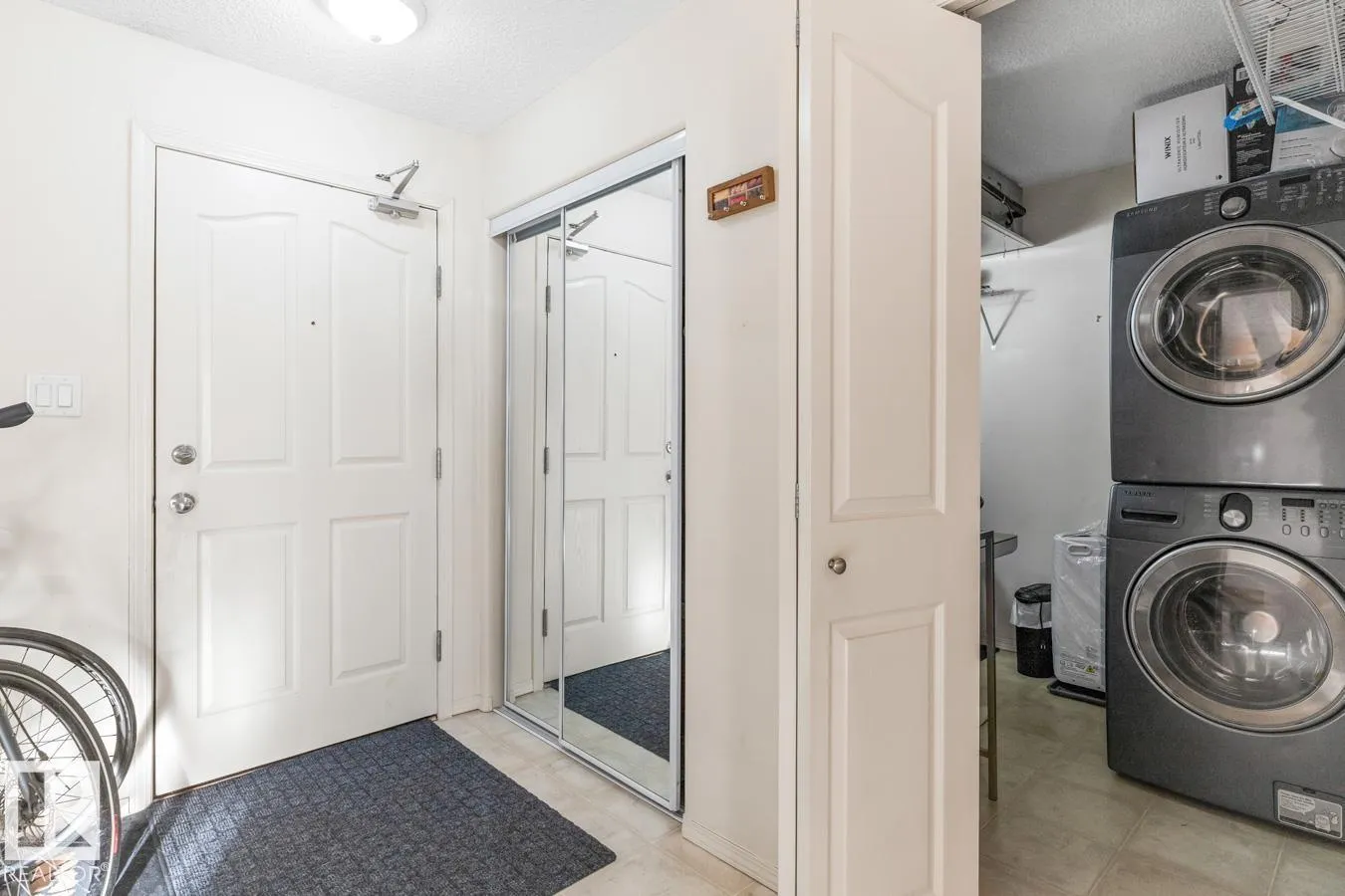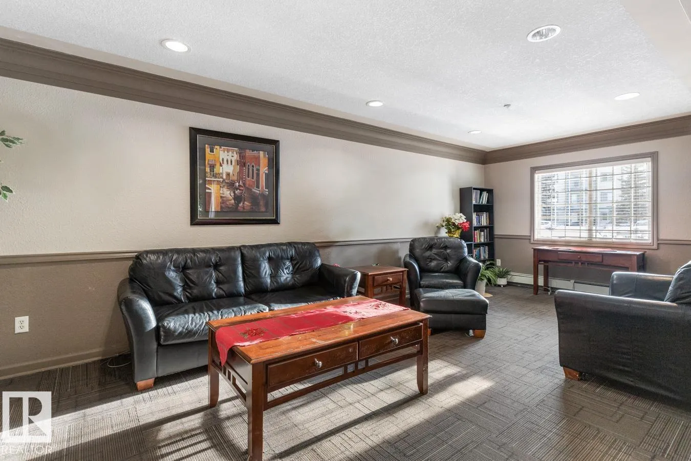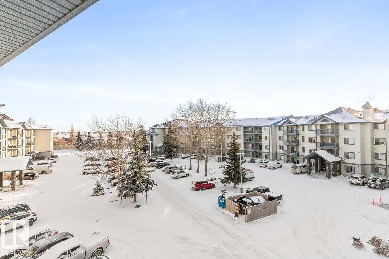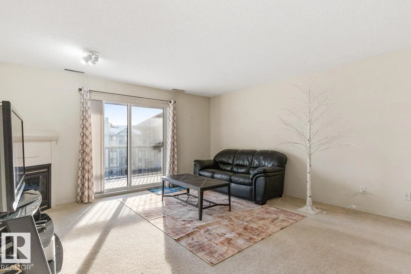 Top-floor living with unbeatable value! This bright and spacious 1-bedroom unit in Promenade Eaux Claires offers an open-concept layout with great natural light and a sunny south-facing covered balcony. The kitchen features plenty of cabinetry, a walk-around island, and flows effortlessly into the large living area, complete with a cozy corner gas fireplace and balcony access. The oversized laundry/storage room adds convenience and flexibility, while the 4-piece bathroom and generous bedroom complete the suite. Enjoy in-suite laundry, central air conditioning, and one titled above-ground parking stall visible from the unit. The building offers fantastic amenities including a fitness centre, social room with games and lounge areas. Condo fees include heat and water. All this in a prime location close to shopping, public transit, Anthony Henday, and every convenience. A great opportunity to own or invest in this well-managed north Edmonton community. (id:27476)