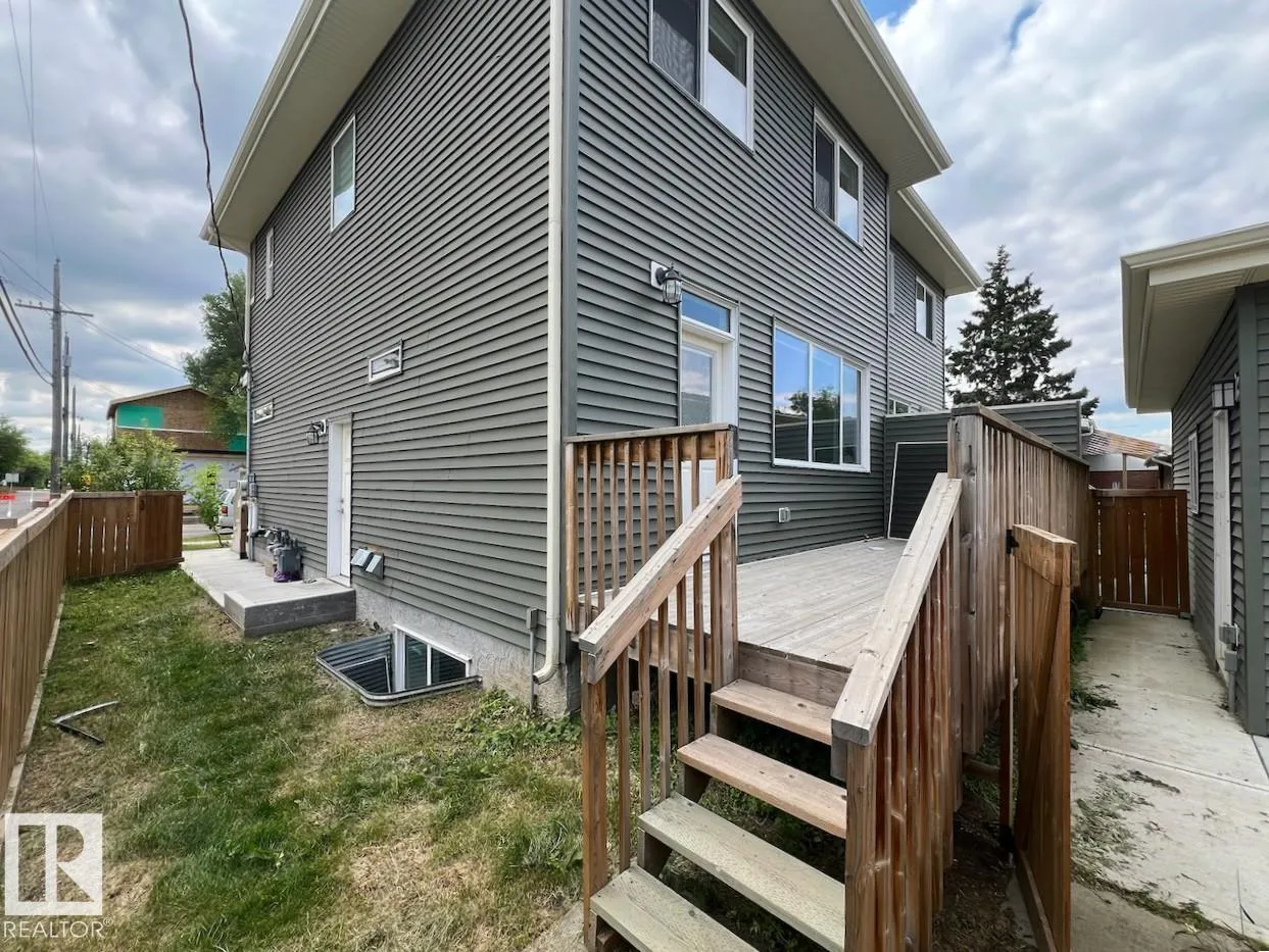 Fantastic half duplex with no condo fee in popular Allendale! Enjoy easy access to the UofA, LRT, Southgate, and Whyte Avenue. The main floor of this open concept home includes a bright living room with electric fireplace, a gourmet island kitchen, dining space, and back mud-room with adjoining 2pc. powder bathroom. Upstairs your primary bedroom has a walk-in closet and 4pc. ensuite. Two secondary bedrooms share the main 4pc. bathroom. Enjoy convenient second floor laundry off the hallway. The basement has a separate side entrance and is fully finished with a 1 bedroom suite. The home also features a large back deck, single garage, and fenced yard space. (id:27476)