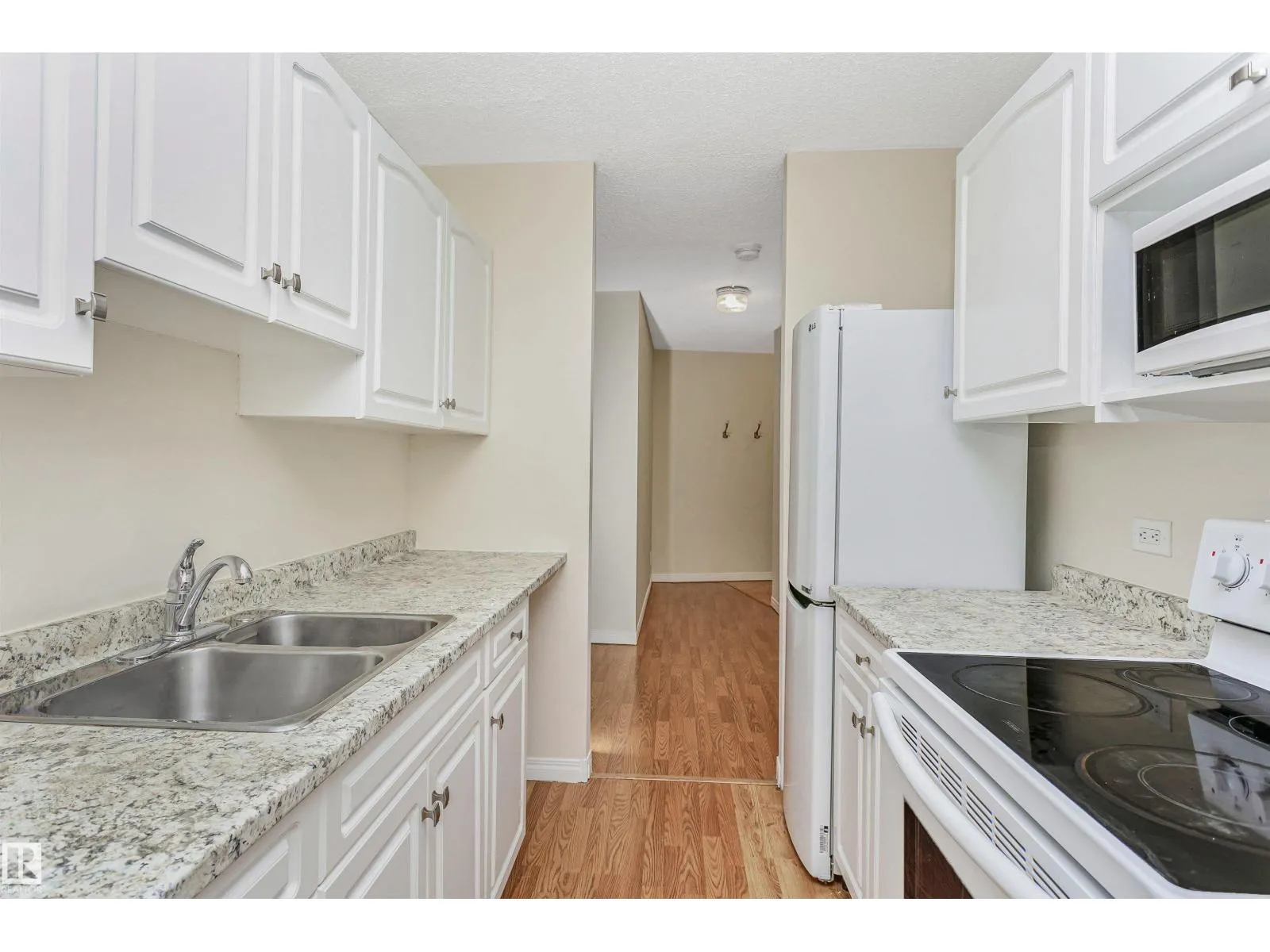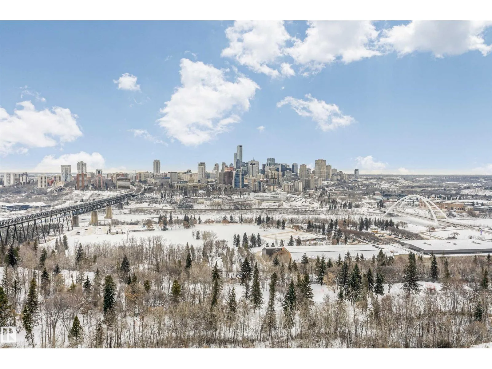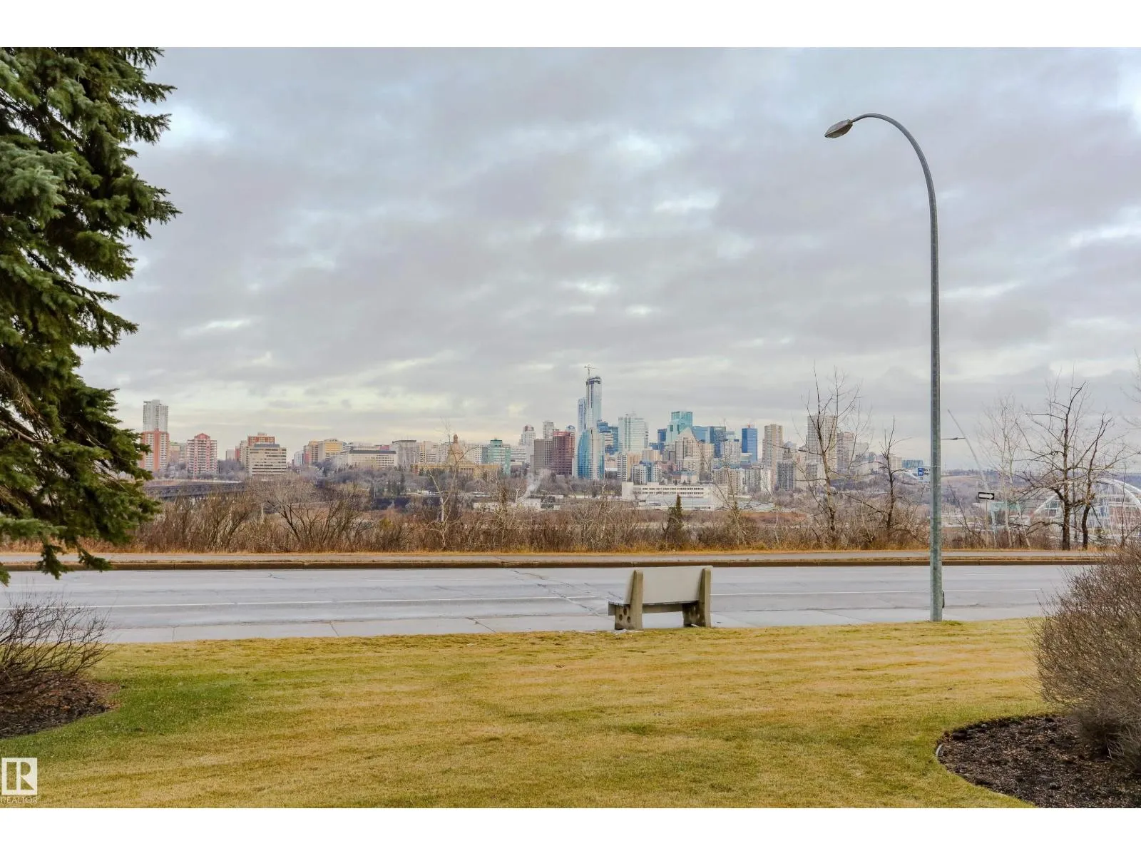 Enjoy panoramic views of downtown and the river from this spacious, renovated one-bedroom, one-bathroom unit in Strathcona House, featuring a newly renovated kitchen and bathroom. Fantastic location on Saskatchewan Drive within walking distance to the U of A and seconds away from River Valley trails. Close proximity to the U of A Hospital, LRT station, and Whyte Ave. The building offers an exercise room, social room, and beautifully maintained private gardens with a BBQ area. Condo fees include all utilities, and the unit comes with an assigned parking stall (#239) and storage locker (#107). (id:27476)