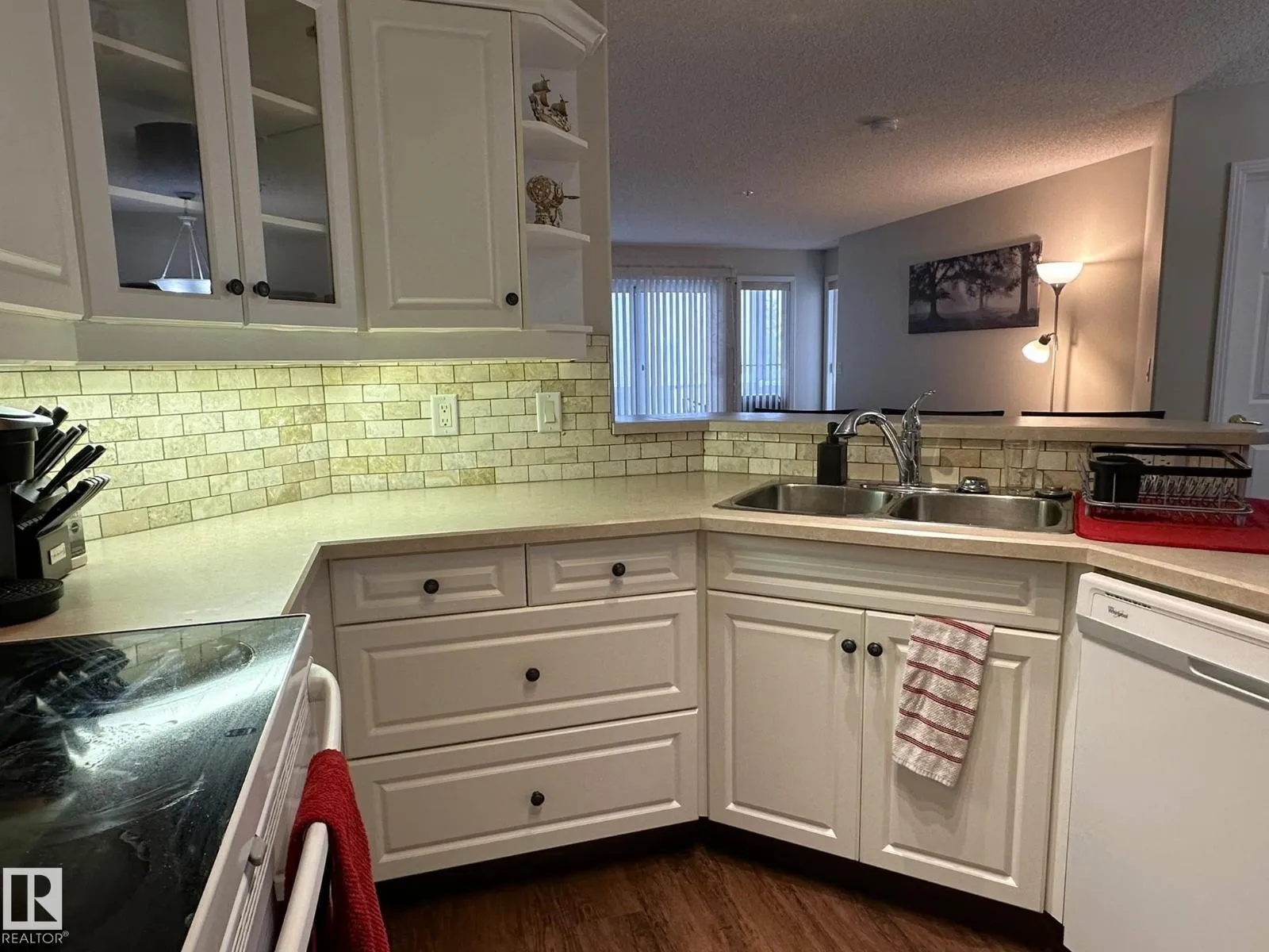 Welcome to Henday Village, offering adult 18+ living in the heart of West Edmonton. This bright and immaculate 2-bedroom, 2-bathroom unit features a well-designed open-concept layout with central AC. The spacious primary bedroom easily accommodates a king-sized bed and full furniture, and includes a private 4-piece ensuite. The second bedroom is also bright and generously sized, ideal for guests or a home office. The open kitchen offers a peninsula with breakfast bar, ample cabinetry, and open shelving. A convenient laundry room with extra storage is tucked behind a pocket door off the kitchen. The main 3-piece bathroom features a step-in shower and generous counter space. Amenities include a fitness room, recreation room, car wash, ample visitor parking. Enjoy TITLED heated underground parking with storage locker, steps from the elevator! Conveniently located near West Edmonton Mall, transit, walking trails, and major roadways, this well-maintained condo offers comfort, convenience, and an easy lifestyle (id:27476)
