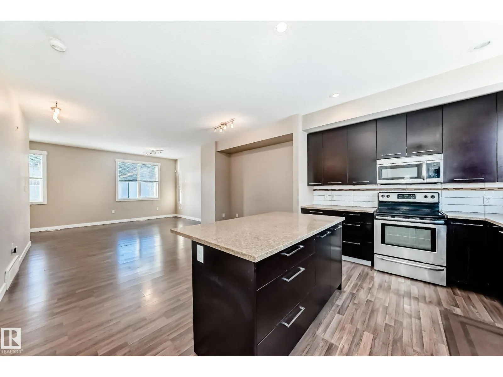 Live at Mirra at Poplar Lake! This 3-storey townhouse offers 3 bedrooms, 2.5 baths, and a double attached garage. The main living level features 9â ceilings and an open-concept layout. The modern kitchen showcases ceiling-height cabinetry, stainless steel appliances, quartz countertops, a large island, pantry, and ample storage. The dining and living areas are perfect for entertaining, while the west-facing balcony with gas BBQ hookup provides the ideal spot to enjoy fresh air. A 2-piece powder room completes this level. Upstairs, the large primary bedroom includes a full ensuite and dual closets. Two additional bedrooms share a second full bathroom and laundry is located on the upper floor. Situated in the desirable Klarvatten community, steps from Poplar Lake and walking trails, with quick access to the Anthony Henday, downtown, CFB Edmonton, schools, shopping, and amenities. Ideal for anyoe seeking a low-maintenance lifestyle. Quick Possession! (id:27476)