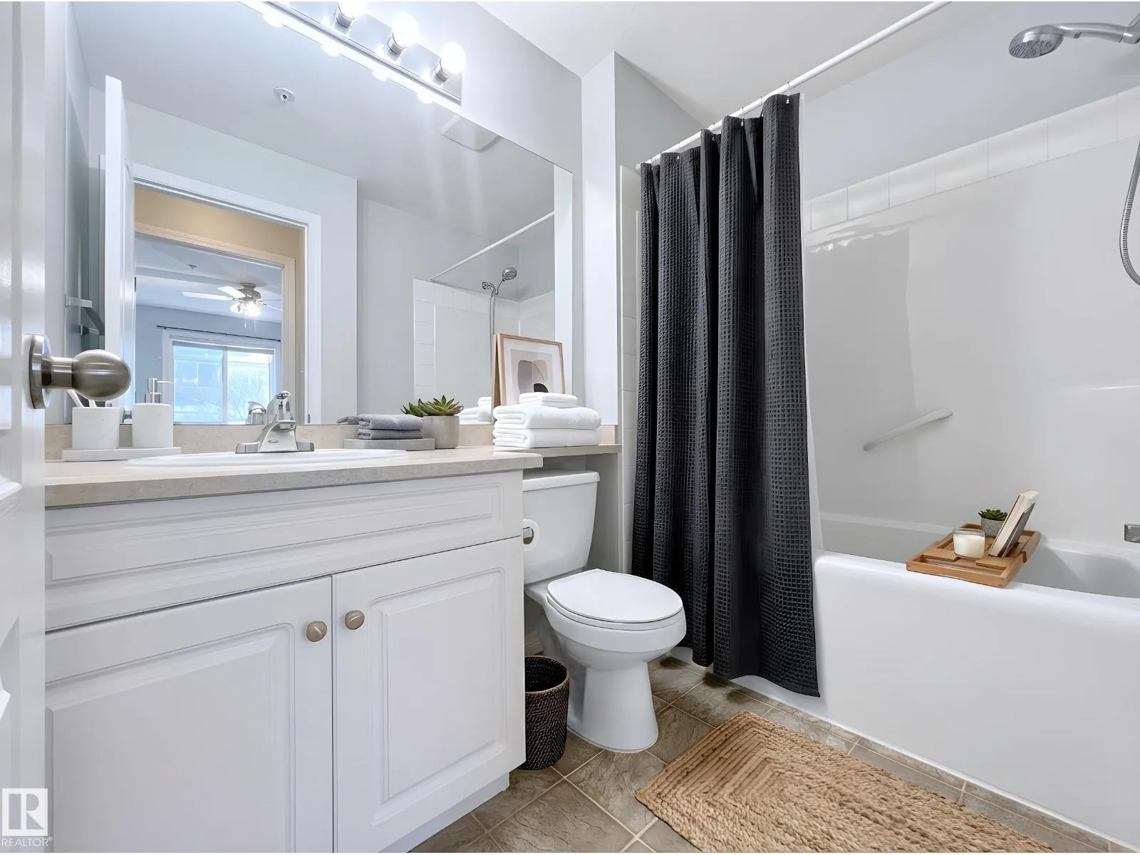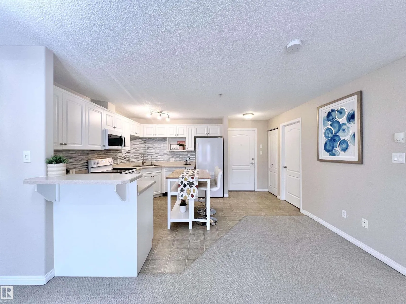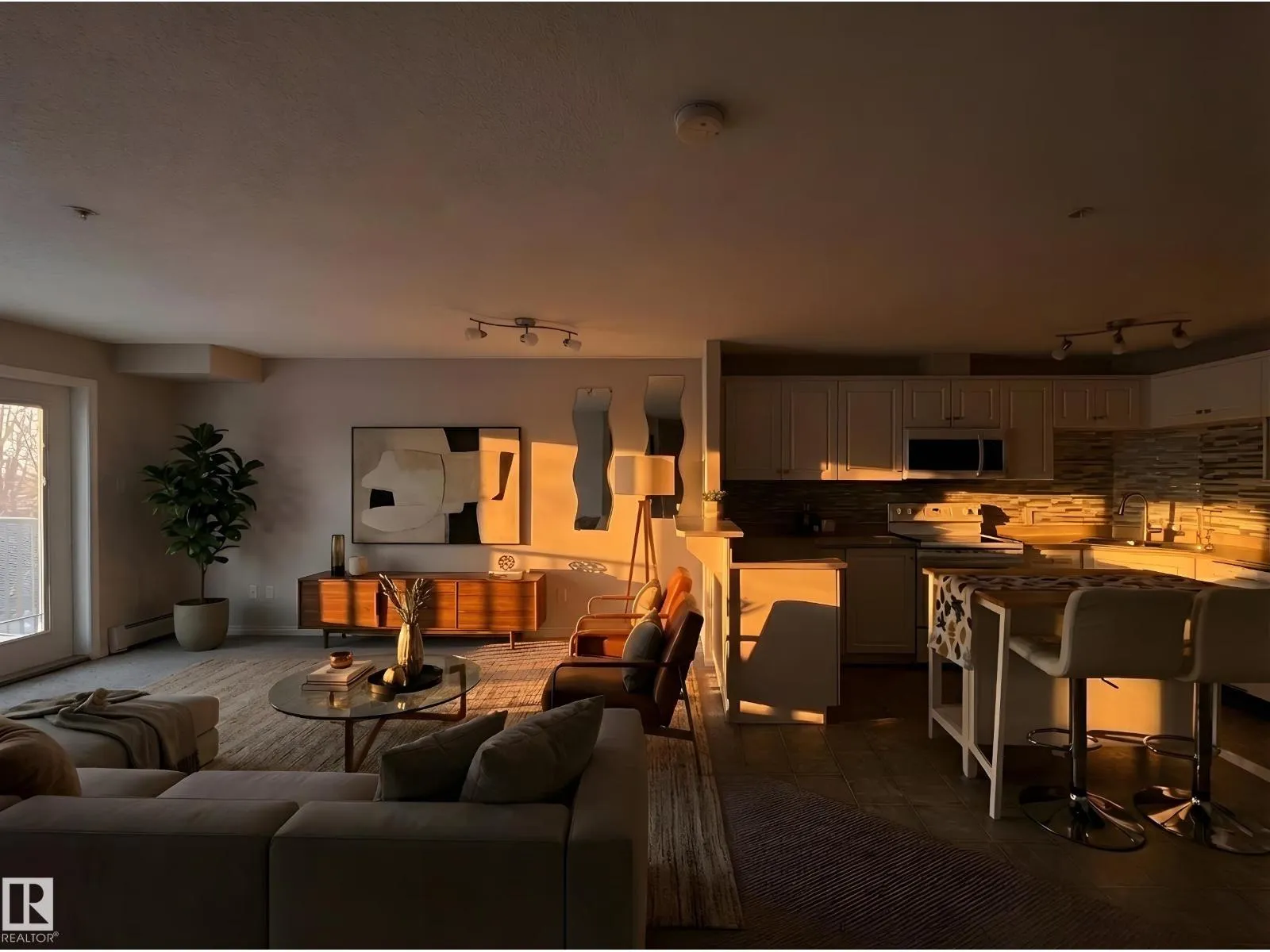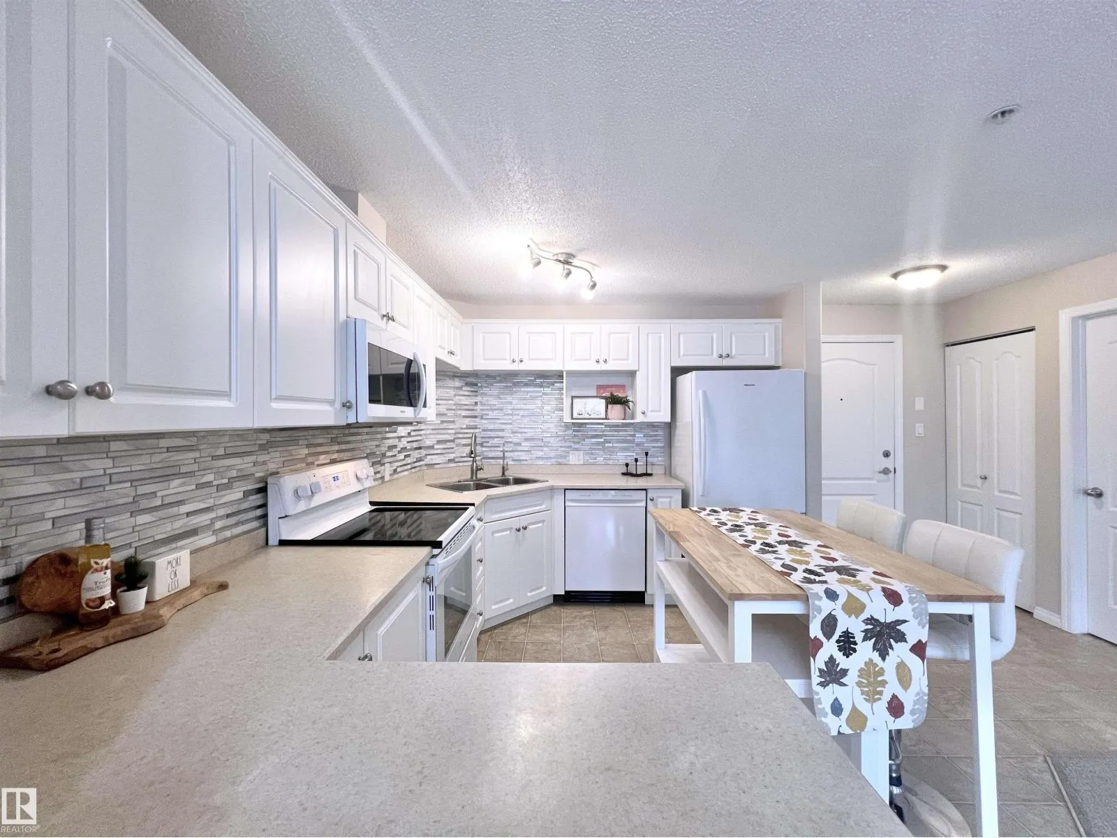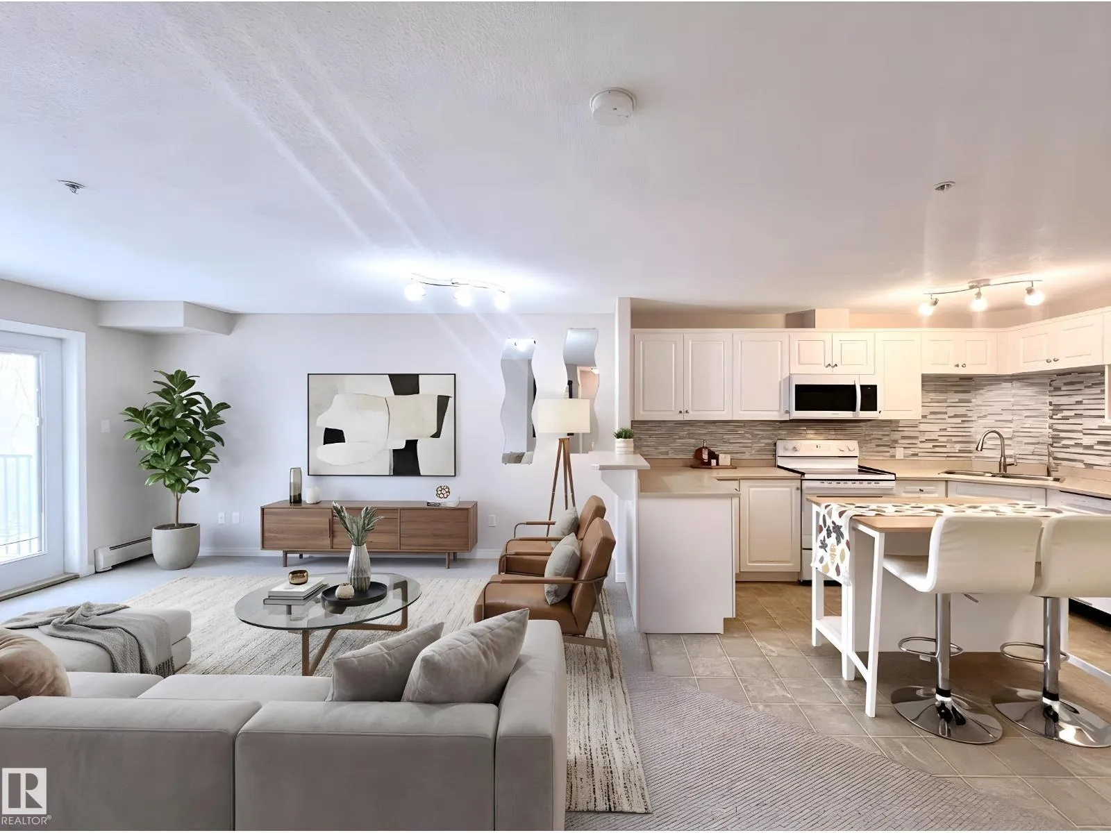 Welcome to Park Place Ellerslie Court in Ellerslie. This bright and comfortable 1-bdrm condominium is quietly situated within the complex. The unit features a modern open-concept layout that feels spacious and airy. Upon entry, you are welcomed by a well-proportioned kitchen seamlessly connected to the living area. The living room is equipped with air conditioning, providing comfort during the summer, while the large window facing the balcony fills the space with abundant natural light. The bdrm and a full 4pc bath are located to the left of the living area, offering a comfortable and functional layout. Additional highlights include in-suite laundry and a convenient parking stall near the buildingâs side entrance. Previously owner-occupied, the unit has been very well maintained. Close to public transit, shoppings and parks, with quick access to highways. Combined with low condo fees, this property is an excellent opportunity for both owner-occupiers and investors. Some photos are virtually staged. (id:27476)