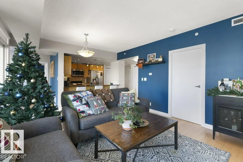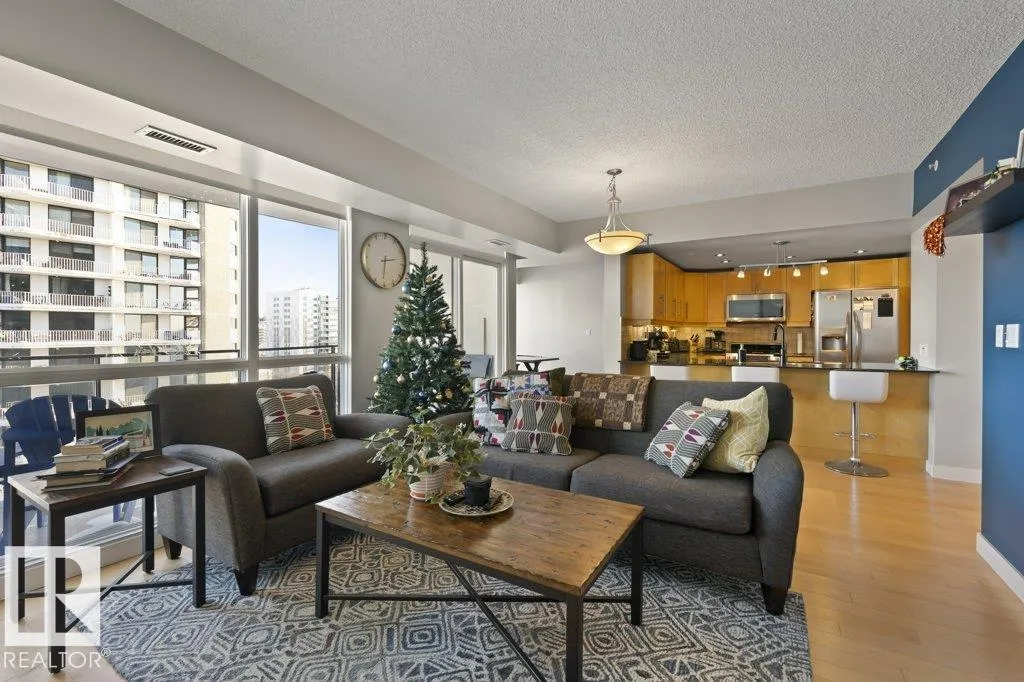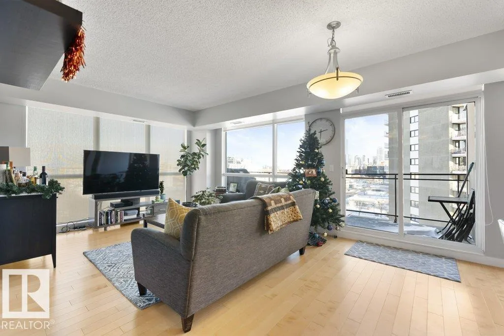 Elevate your downtown lifestyle in this IMMACULATE 11th-FLOOR executive condo with 2 bedrooms + DEN, 2 full baths, 2 TITLED UNDERGROUND parking stalls w/ storage PLUS the rare bonus of only 4 UNITS PER FLOOR for added privacy! This bright CORNER UNIT offers stunning east & north city views through FLOOR-TO-CEILING windows and a large balcony w/ natural gas BBQ hookup, perfect for entertaining above it all. A thoughtfully designed space features hardwood floors, a modern kitchen with granite counters, tons of cabinets, and a versatile den ideal for a home office or dining space. The spacious primary suite includes a WALK-IN closet & spa-inspired 5-PIECE ENSUITE with soaker tub and DOUBLE sinks. Enjoy year-round comfort with a heat pump system (furnace & A/C replaced in 2022) and in-suite laundry. Well-managed building w/ gym and ample visitor parking. Steps to Jasper Ave, restaurants, river valley trails, and everything downtown has to offer, this is urban living done right! (id:27476)
