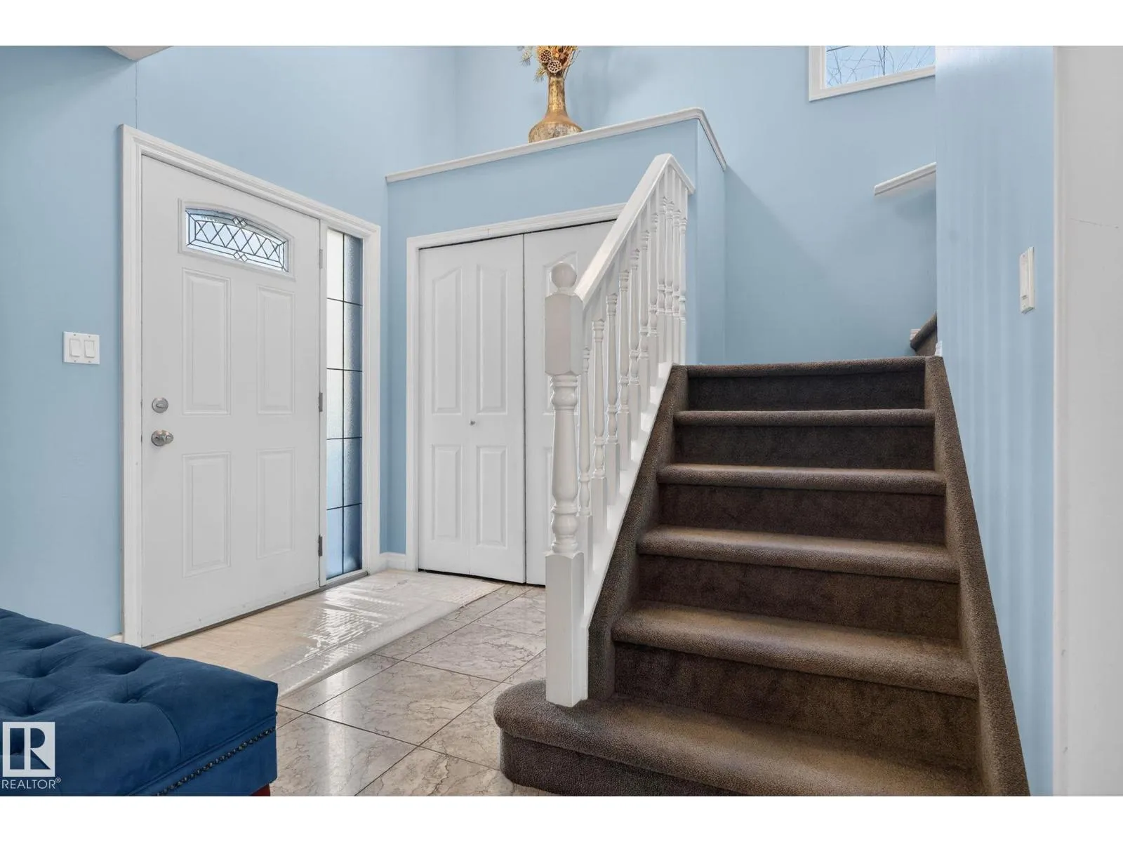 Welcome to this 5 bedroom open and bright family home on a corner lot in Oxford with nearly 2,000 sq ft of finished space above grade plus a fully finished basement. Large windows provide excellent natural light throughout. The kitchen features GRANITE countertops, an island with extended eating bar, and newer appliances, opening to the main living area, deal for daily living and entertaining. Main floor laundry adds convenience, and a cozy fireplace creates a warm atmosphere. A SUNROOM offers additional year-round living space. Upstairs includes a spacious primary bedroom with ensuite and wall-to-wall closet space, three additional bedrooms, and a full bathroom. The finished basement has one bedroom and one full bathroom, totaling FIVE BEDROOMS and 3.5 bathrooms. Recent updates include a new hot water tank and A/C. HEATER in double garage. Large fenced yard with deck. Conveniently located near schools, transit, shopping, and minutes from Anthony Henday. (id:27476)