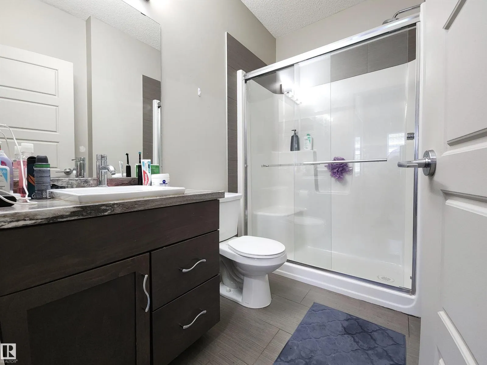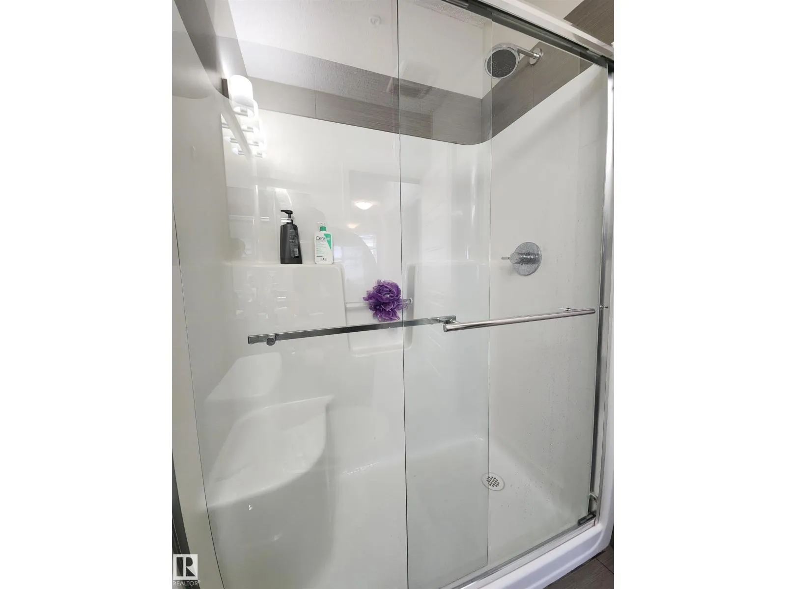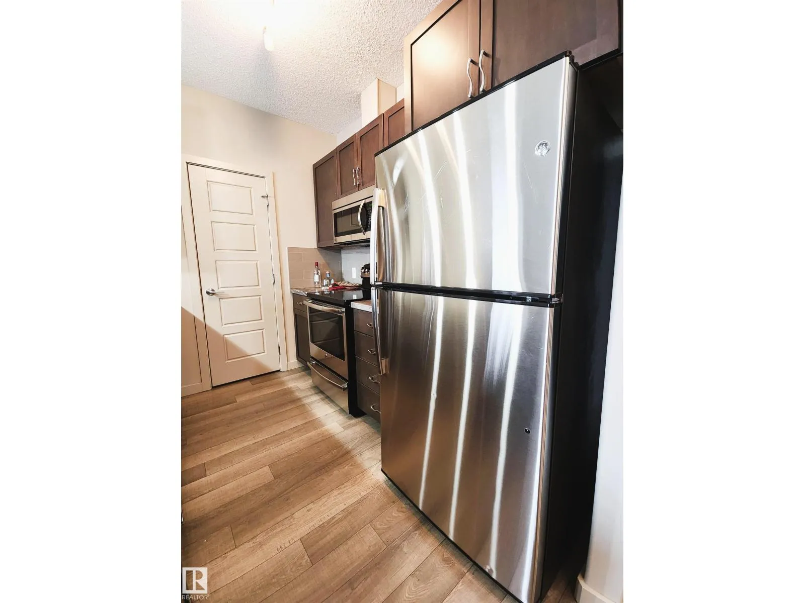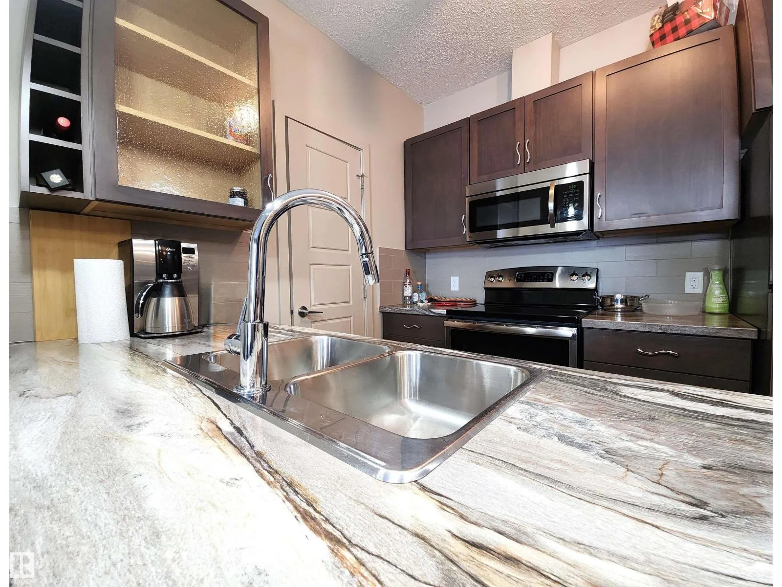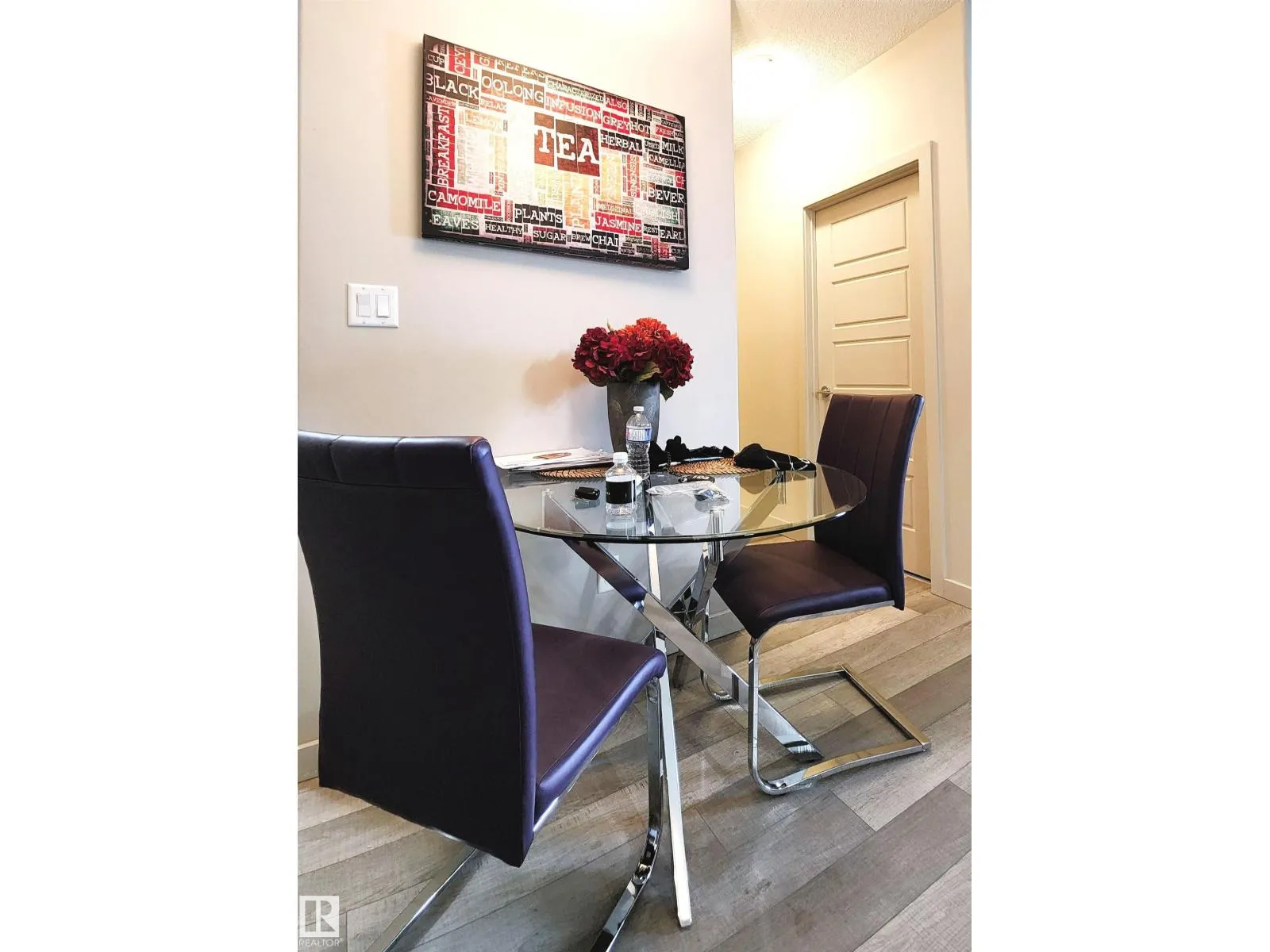 Top-floor 2-bedroom, 2-bathroom condo offering two TITLED underground parking stalls, extra storage, and a large balcony with gas BBQ hookup. This premium floor plan features a spacious open-concept layout with upgraded wide-plank flooring throughout, a modern kitchen with a large island and eating bar, plus generous cabinet and counter space that flows seamlessly into the dining and living areasâideal for entertaining. The king-sized primary bedroom includes a walk-through closet with organizers and a 3-piece ensuite, while the spacious second bedroom is conveniently located next to the 4-piece main bathroom. Enjoy added privacy and quiet top-floor living, along with building amenities such as a fitness room, social room with pool table and wet bar, and a guest suite. Ideally located steps from parks, trails, and man-made lakes, with quick access to Anthony Henday, Whitemud, shopping, and restaurants. (id:27476)