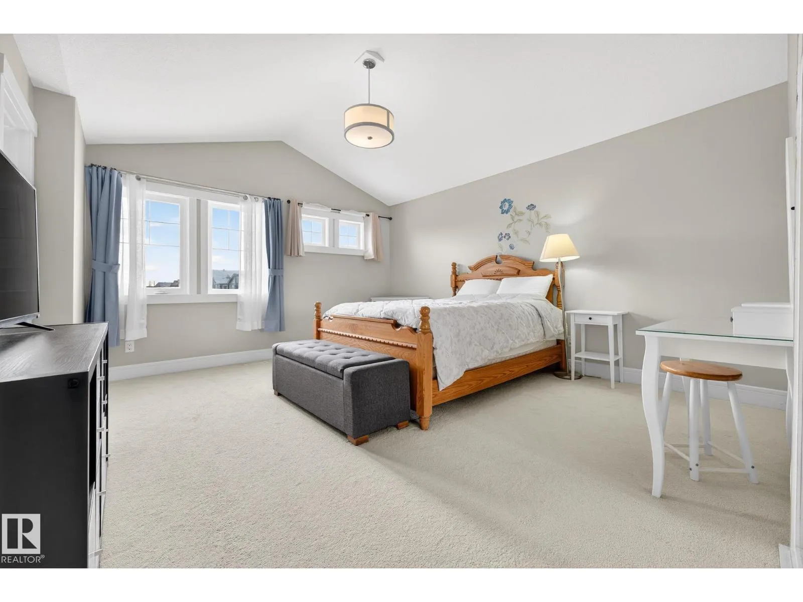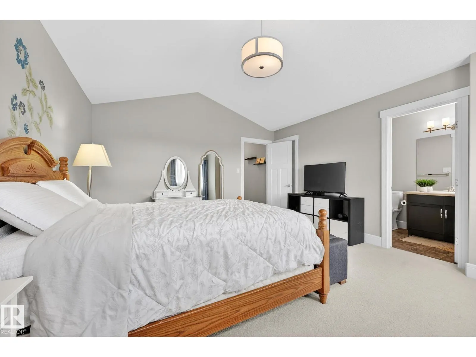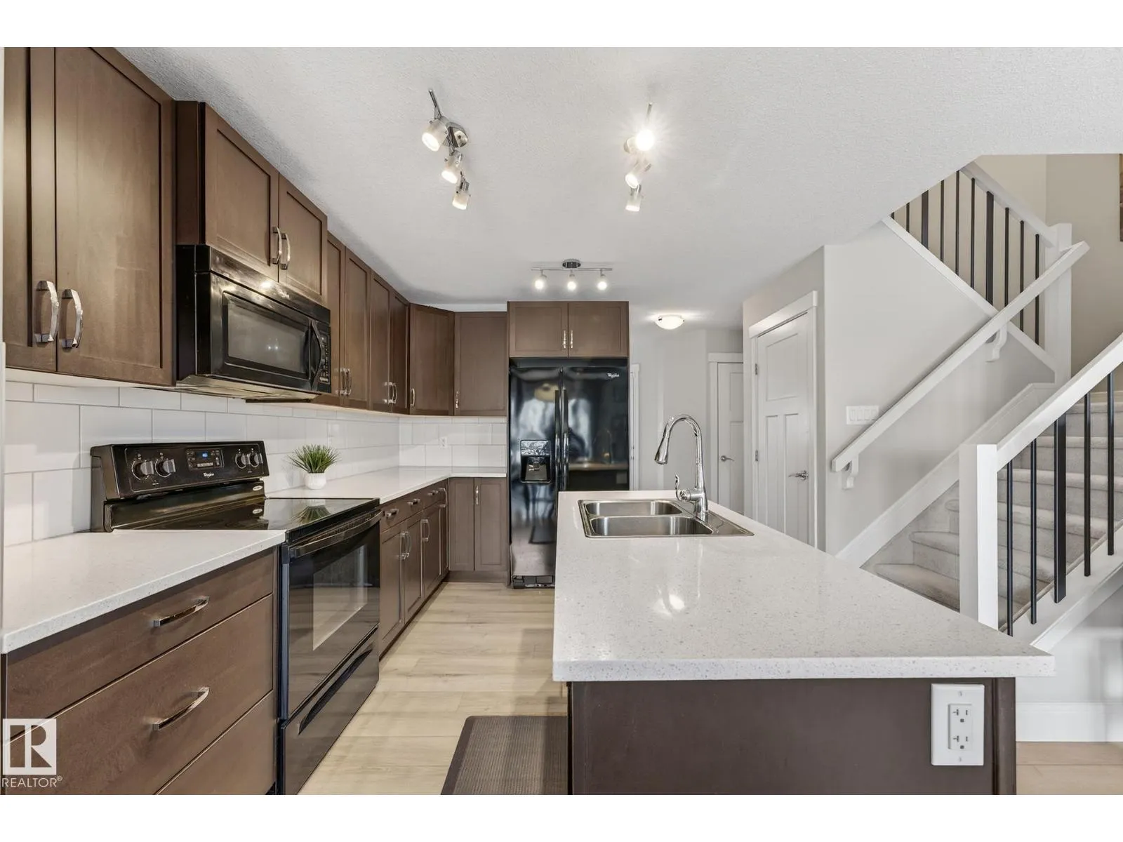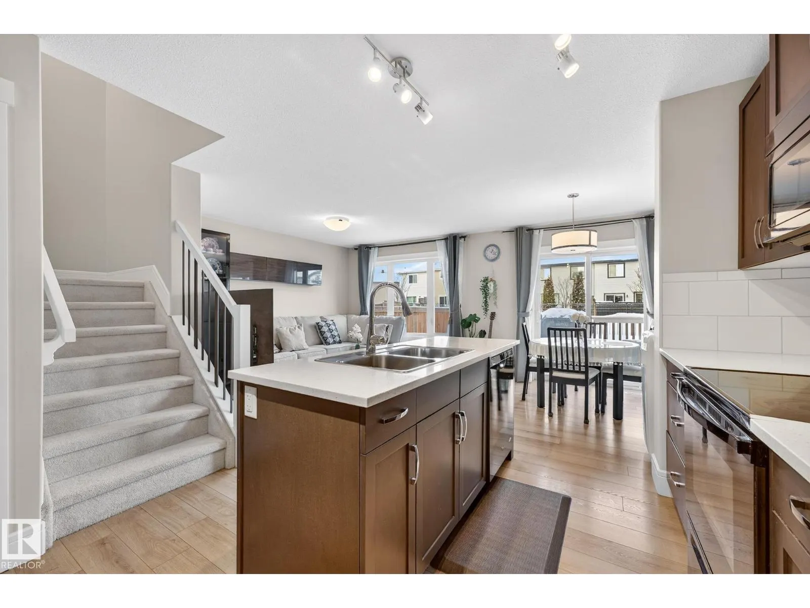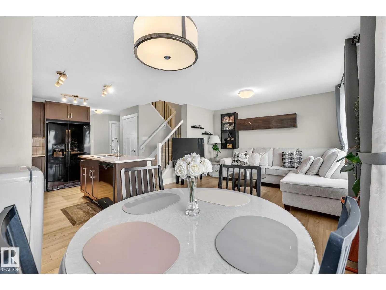 This is the perfect home for your New Year's resolution! Located in highly desirable Windermere, this home offers total living space of 1,845 Sq Ft ,and an unbeatable lifestyle. Enjoy the premium location steps from a top playground and backing onto a peaceful walking trail leading to a scenic pond, plus the convenience of great schools and shopping nearby. The open-concept main floor features durable laminate flooring and a gourmet kitchen with sleek quartz countertops and black appliances. The living room includes custom built-ins and display shelving for smart storage. Upstairs, the massive Primary Suite boasts a dramatic vaulted ceiling, a spacious w/i closet, and a luxurious 4-piece ensuite, complemented by two additional bedrooms and a second 4-piece bath. The fully finished basement enhances the living space with resilient laminate flooring, a home theatre-wired bonus room, and a 2-piece bath. Don't miss this gem! A perfect lifestyle property awaitsâcome live life! (id:27476)