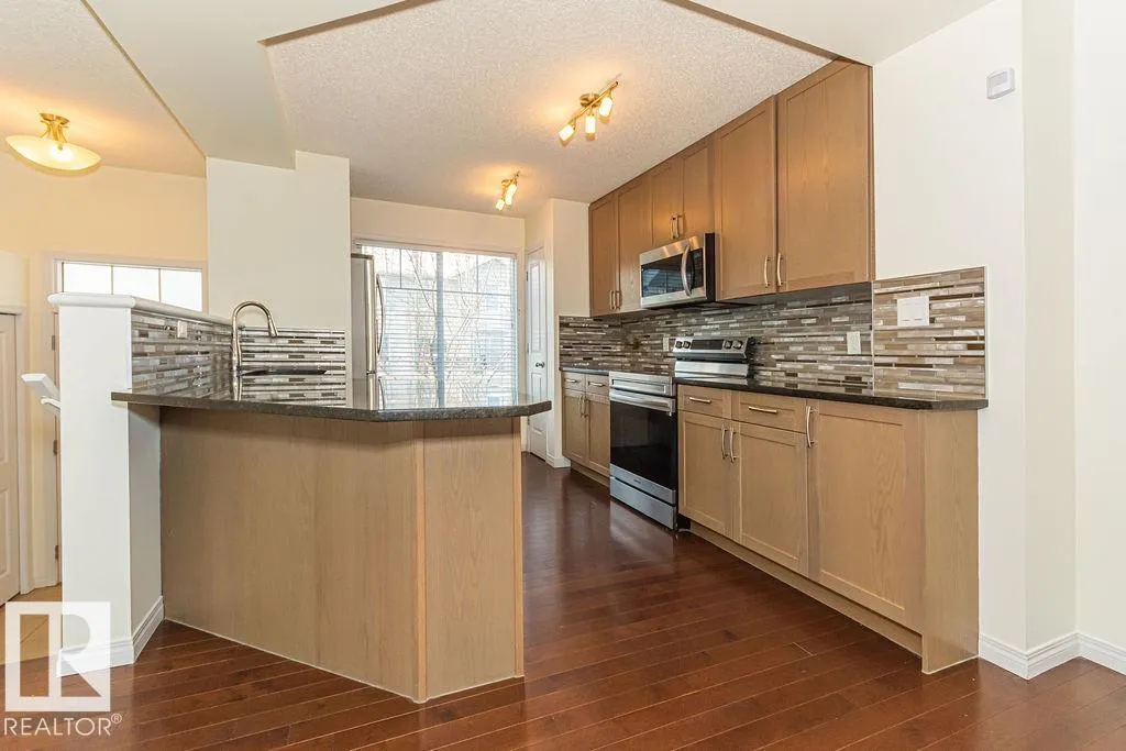 Welcome to your modern townhouse in desirable Chappelle Gardens with two huge Master suites both with their own ensuite & walk in closets. This unit is freshly painted with Quartz countertops, under mount sink & flush eating bar at the peninsula in the kitchen with upgraded appliances. The oversized windows attract an abundance of natural light. Double attached garage, fenced west facing front yard & nice sized patio with walking access to road so no traffic noise! This unit is also steps away from a large park with community gardens, playground, splash park & rink. This neighbourhood is minutes away from shopping and major commuter routes. (id:27476)