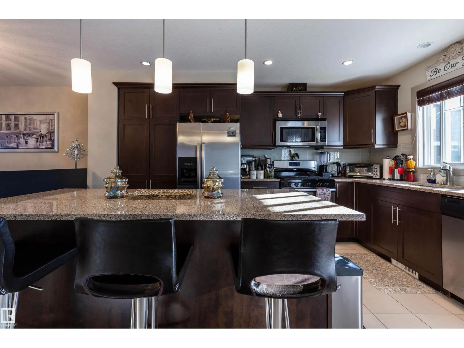 *NEW YEARS SPECIAL* Meticulously maintained former SHOWSUITE located in the sought after complex of The Estates of Upper Windermere with UPGRADES GALORE!! Just under 1800sqft(builder plans show 1862sqft) of spacious and open floor concept living. Huge kitchen with quartz counters, glass tile backsplash, maple cabinets, crown molding,under cabinet lighting w/valance, gas stove, pot lights, B/I pantry and a huge centre island. Good size nook area leads to a oversized 11'x20' maintenance free deck with a gas line. Large LR area with a corner gas fireplace and a formal DR area. Upstairs features 2 large double MB both with huge custom(MDF) walk-in closets with fully upgraded ensuites. Upstairs laundry with built-in cabinets and a sink. Fully finished basement with an additional 2pc bathroom. This end unit features extra windows, central A/C, double attached garage, upgraded carpet, upgraded plumbing and lighting fixtures. Steps to all major amenities including schools, shopping and bus and is move-in ready! (id:27476)