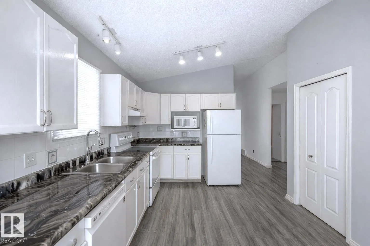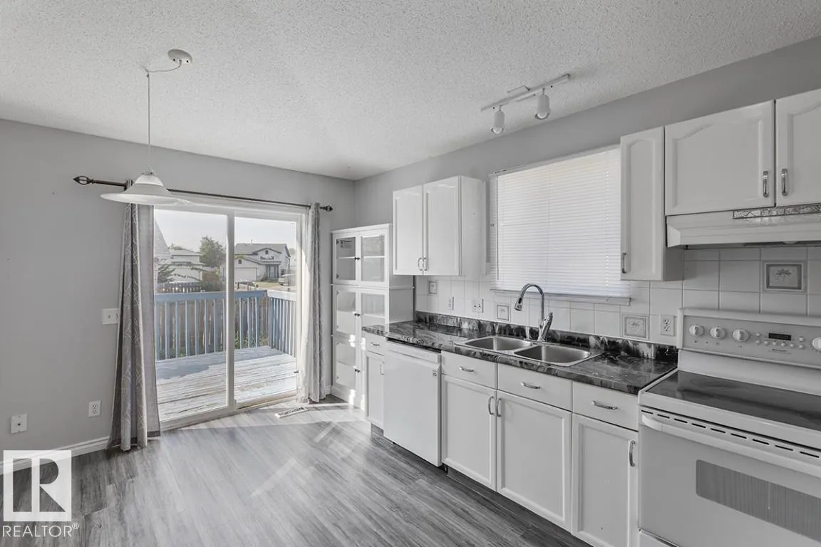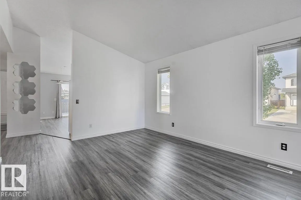 This CORNER LOT 5-BEDROOM bungalow is the perfect match for large or multi-generational families seeking space, and unbeatable convenience. Located just one minute from Belmont School, and moments from the Henday, Manning Drive, and Transit Centre. Inside, soaring VAULTED ceilings and an airy OPEN-CONCEPT layout welcome you with warmth and natural light. Premium laminate flooring with carpet in all bedrooms for added comfort. The FULLY FINISHED basement features a cozy family room with a gas FIREPLACE and two completed bedrooms (2025), ideal for teens, or extended family. Enjoy peace of mind with recent mechanical upgrades, including a HIGH-EFFICIENCY furnace, central AC (2025), shingles (2017). Outdoors, the CORNERLOT adds ample parking, the side of the home is lined with mature plants ready to thrive with care, and raspberry bushes in the backyard add a sweet summer bonus. A double attached garage, and fresh interior paint. Incredibly well-located, this gem is the definition of âfamily-ready.â (id:27476)