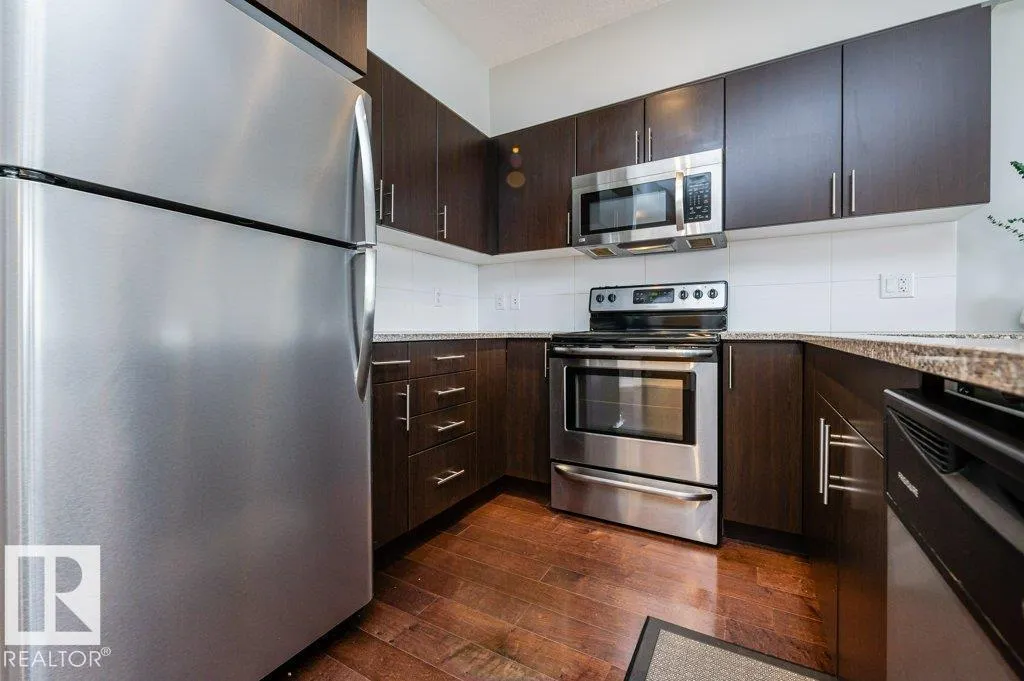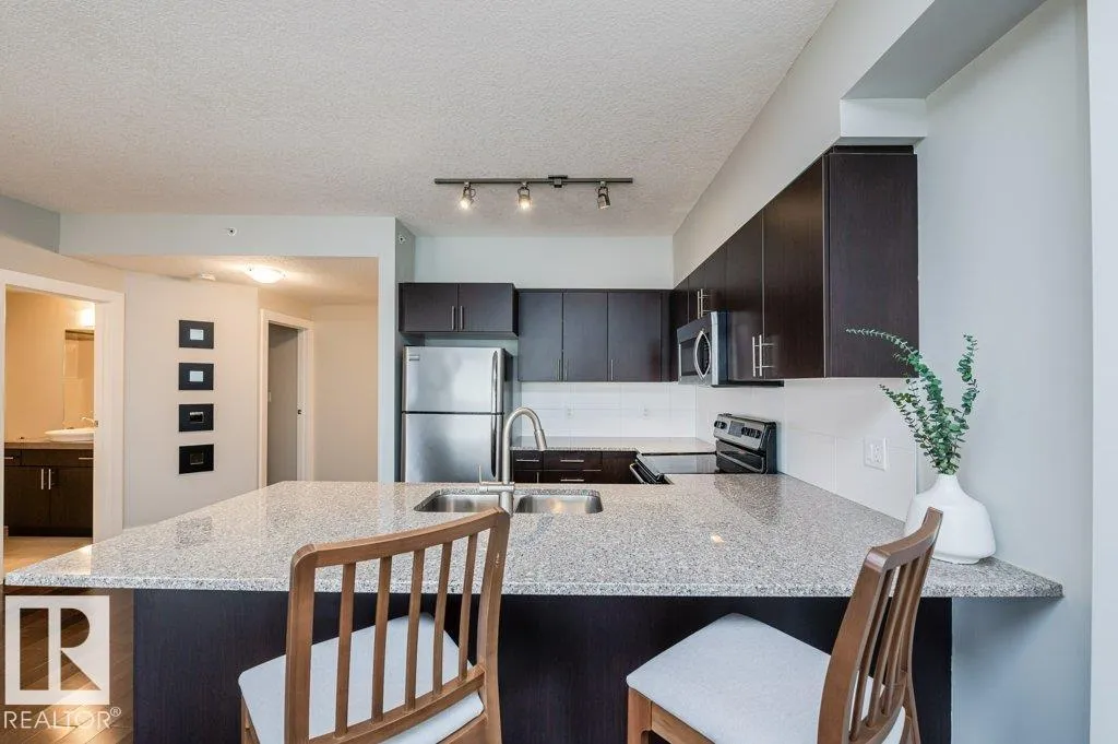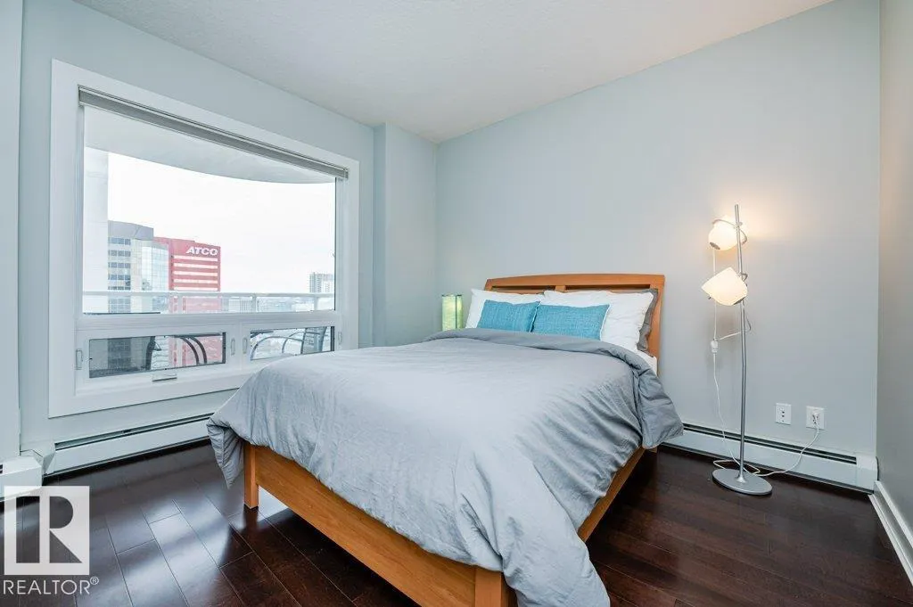 Freshly painted, fully furnished, and ready to enjoy! This modern high-rise retreat perfectly situated on vibrant 104 Street, just two blocks from Rogers Place and steps from the Ice District, this 17th-floor unit offers stunning skyline views and unbeatable walkability. Enjoy a lifestyle surrounded by top restaurants, boutique shopping, and entertainment right at your doorstep. The award-winning City Market Downtown, named âBest Farmersâ Market 2013â by National Geographic Traveler, is located right on your street. Plus, youâre only minutes from Edmontonâs scenic River Valley trails. This stylish 2-bedroom, 2-bathroom end-unit condo features 9 ft ceilings, a southwest-facing balcony with a gas BBQ hookup, and modern finishes throughout. The spacious layout includes granite countertops, stainless steel appliances, in-suite laundry, and Hunter Douglas blinds. Added perks include in-unit storage, one titled underground parking stall, and visitor parking. (id:27476)
