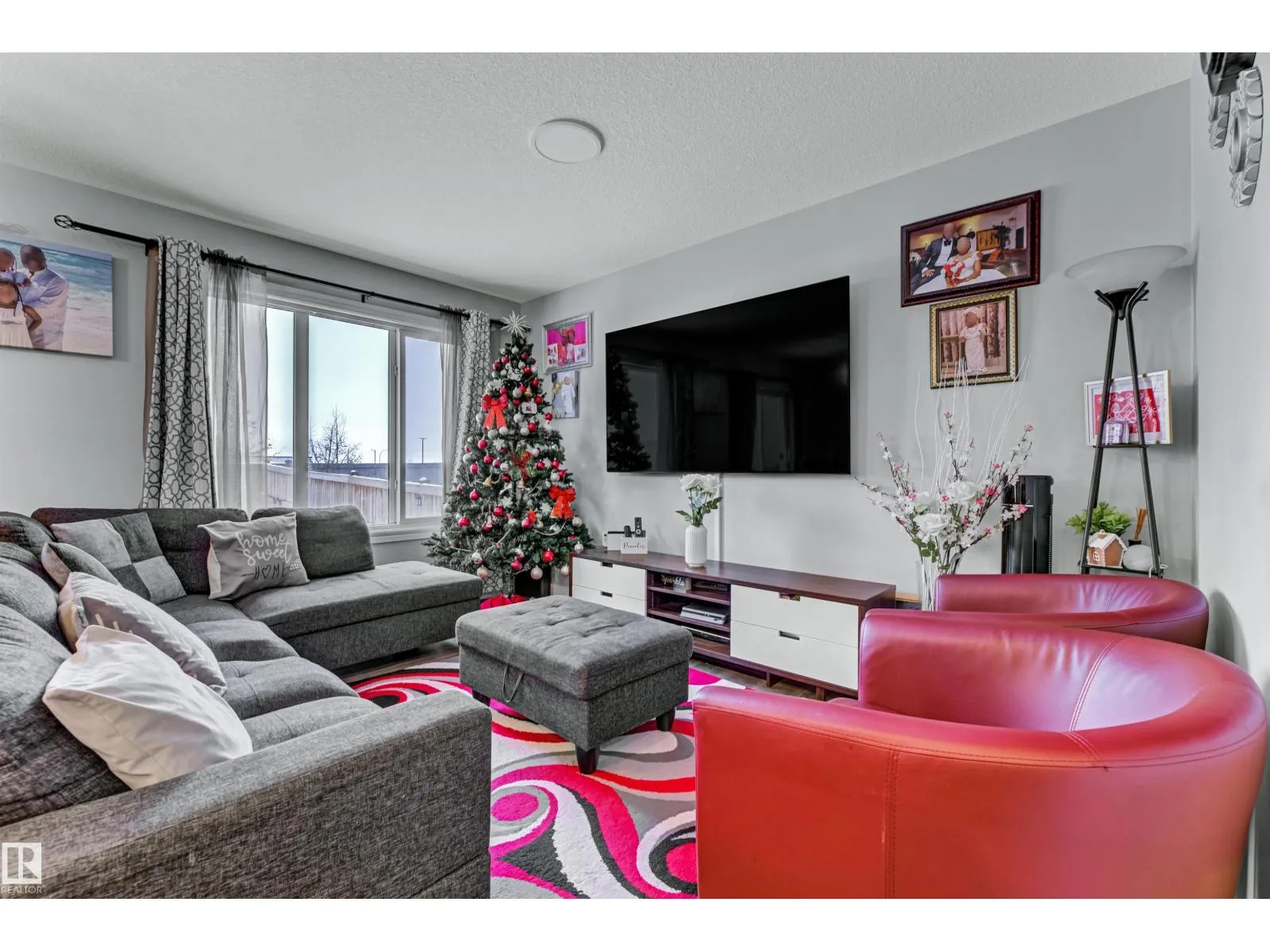 Beautifully designed open-concept home featuring a gourmet kitchen with upgraded two-tone cabinetry and marble-style quartz countertops. Enjoy the convenience of an attached garage and side entry, ideal for future suite potential or private access. Upstairs offers a spacious primary bedroom with ensuite, two additional large bedrooms, a bonus/flex room, and upper-level laundry. The huge landscaped yard provides plenty of outdoor space for relaxation and entertaining (id:27476)