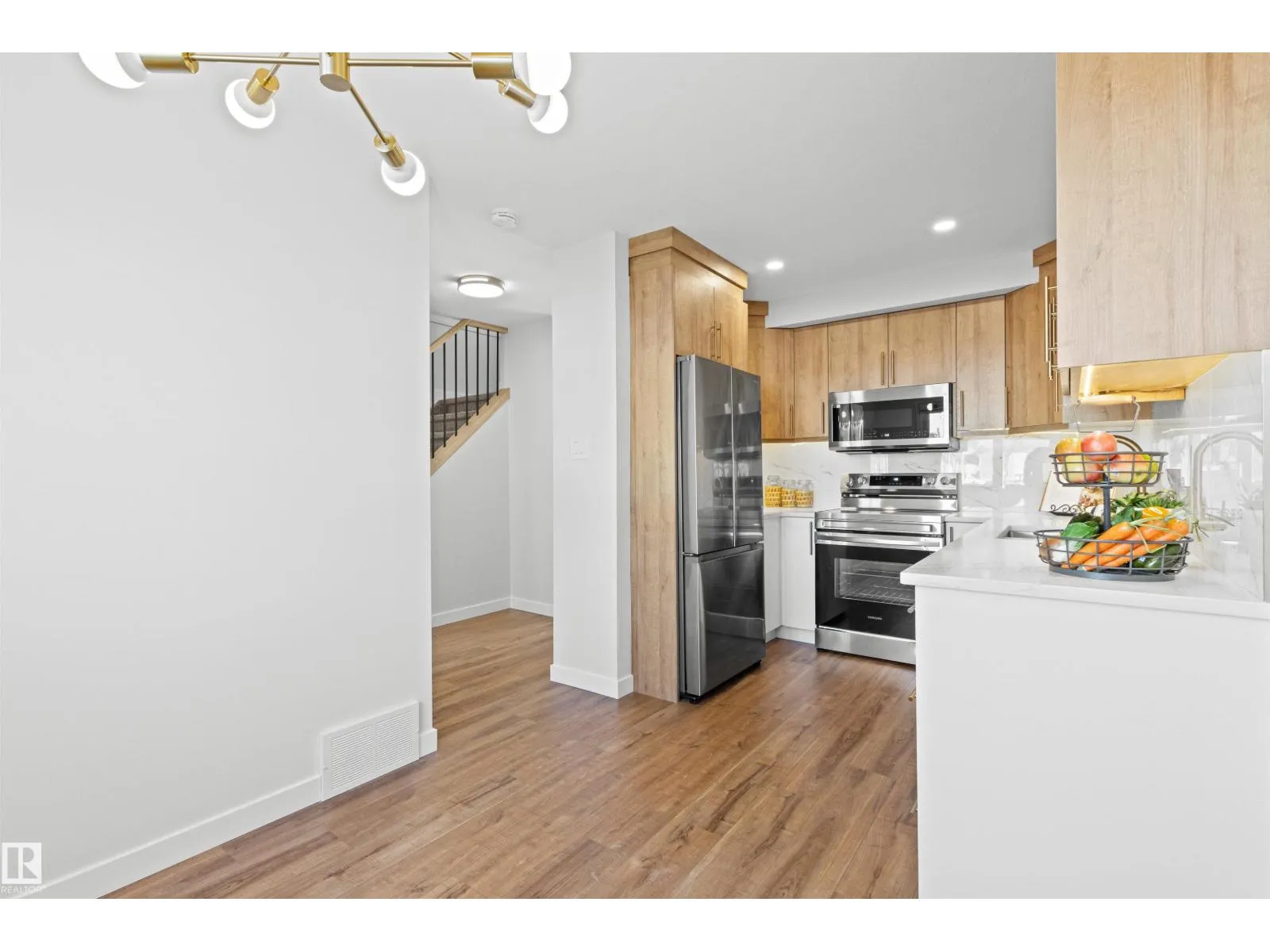 If youâve been looking for a brand-new home in a central location, look no further. This amazing 3-bedroom town home with a fully developed basement has been completely redone. Imagine living in a show home with all of its new and current beautiful finishings, including, drywall (75%), flooring, lighting, kitchen cabinetry & undercabinet lighting, Stainless Steel smart appliances, white oak railings, 2 new bathrooms, electric fireplace, 2-stage high efficiency furnace, HWT, electric fireplace, front door with digital dead bolt, mirrored closet doors, interior doors & handles, T-bar basement ceiling and all the blinds. Commonwealth Place is a very well-run complex with low condo fees and is a super short walk to Steinhauer Elementary School, playground and community league. There are 2 outdoor parking stalls and a south facing fenced yard that overlooks a greenspace behind the complex. This property is a great package with location, affordability, comfort and style. Itâs a must to consider!! (id:27476)