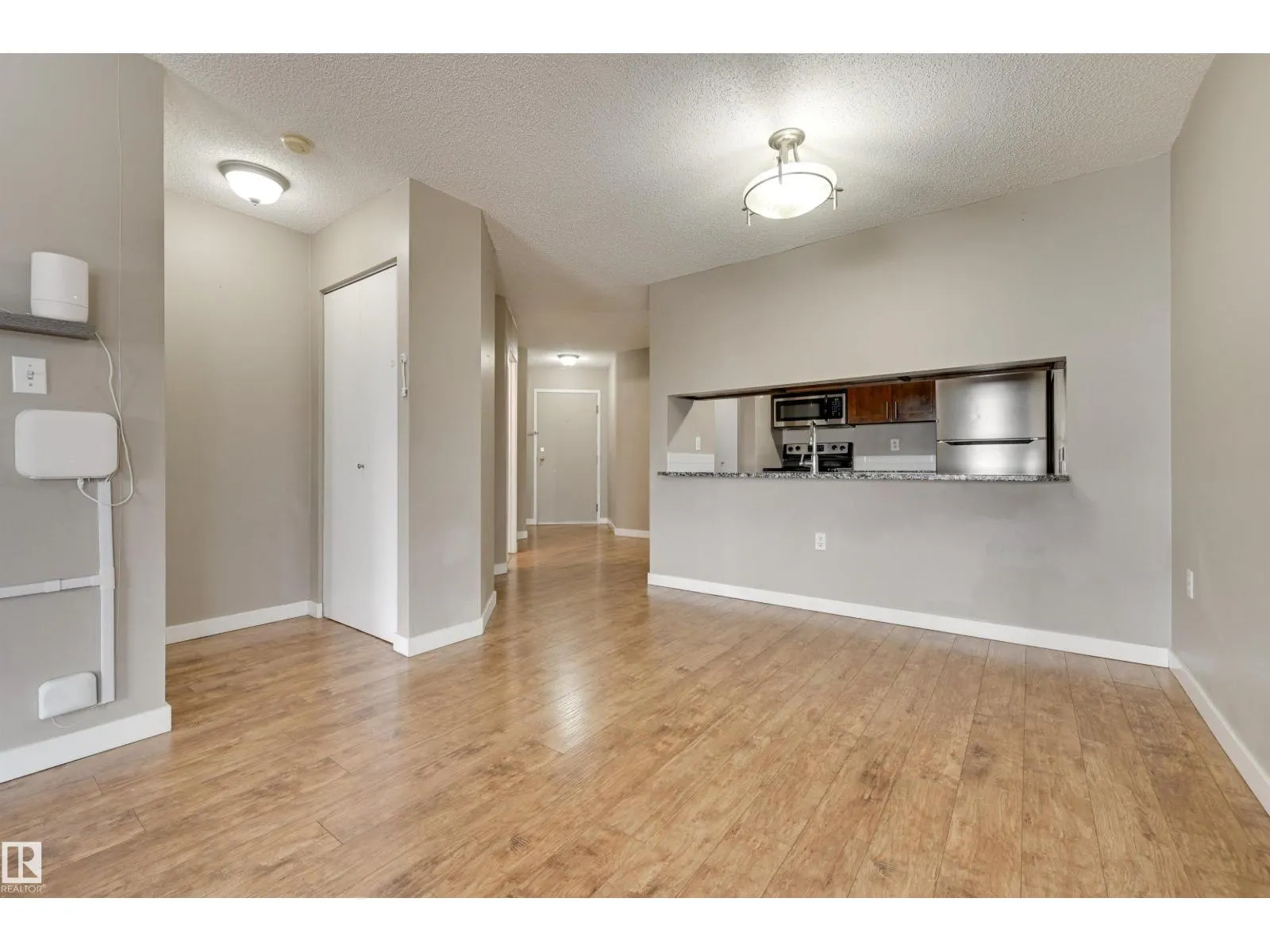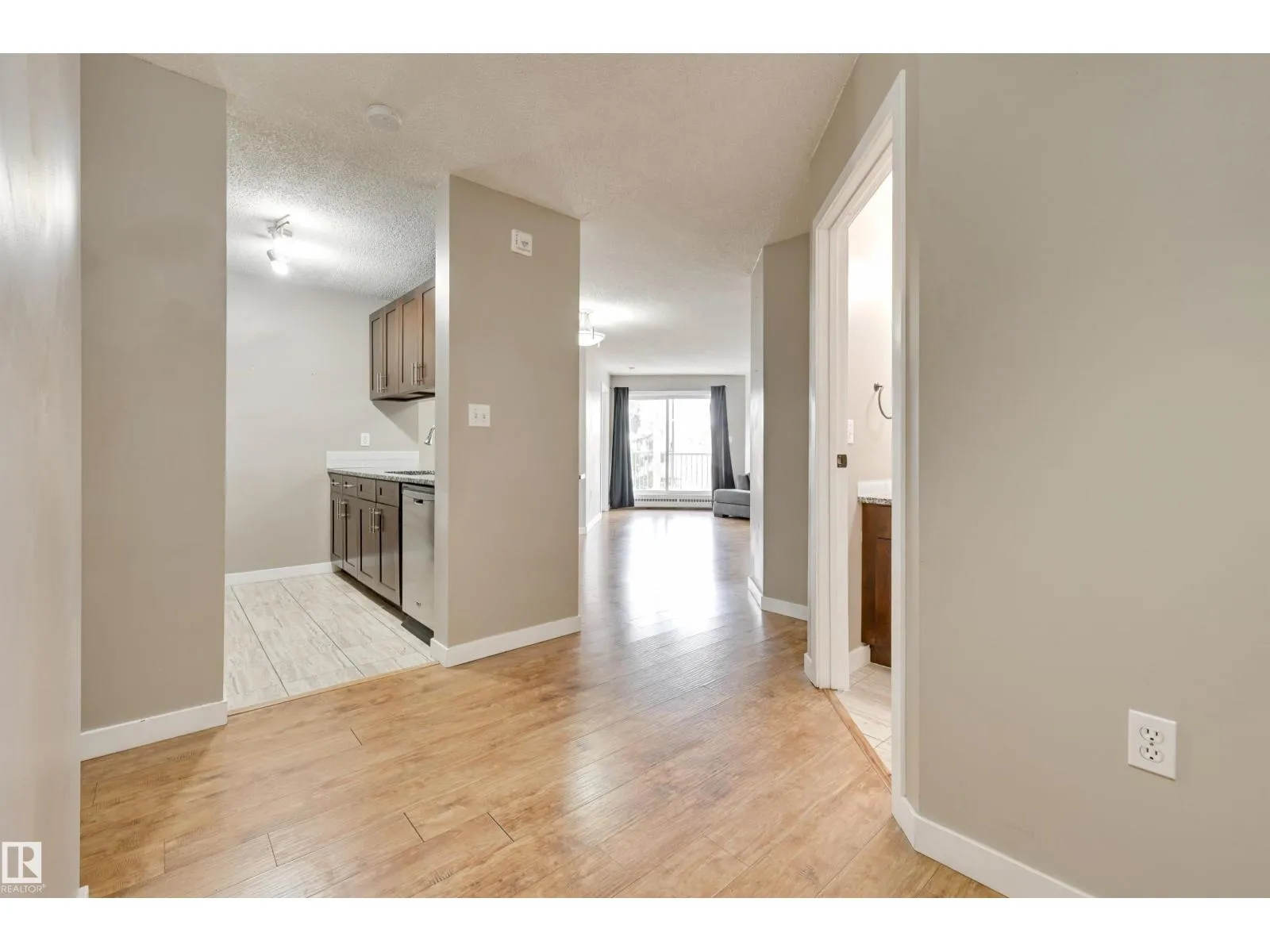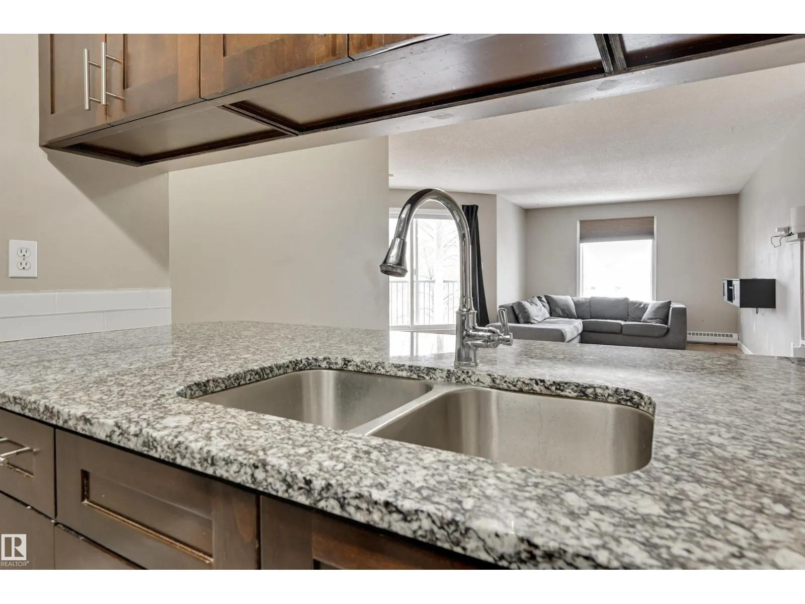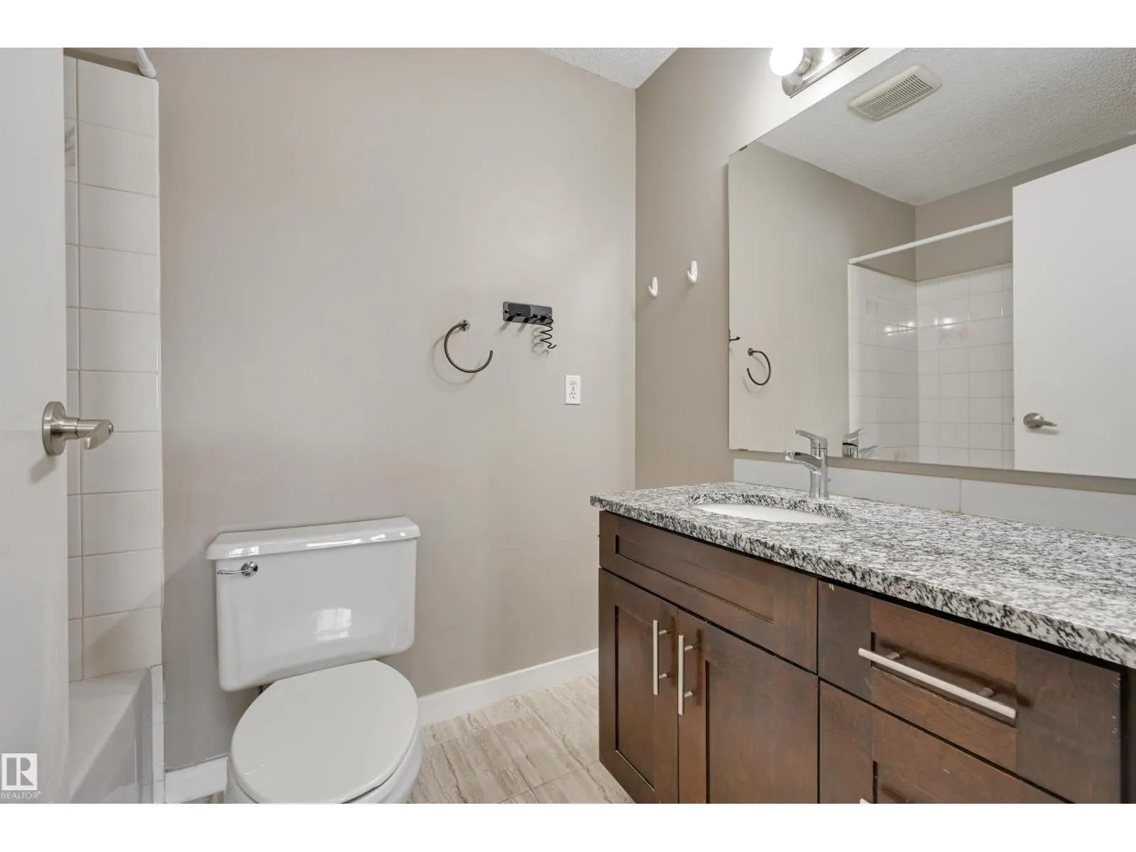 TREELINE VIEWS from this RENOVATED 3 BEDROOM 2 BATHROOM SOUTHEAST facing condo in The POINTE WEST conveniently located close to schools, parks, public transportation, walking paths, West Edmonton Mall & the Whitemud Freeway. This spacious condo offers an OPEN CONCEPT LAYOUT with lots of natural light. The kitchen has espresso color cabinetry with granite countertops, an eating bar & stainless steel appliances. Good size balcony to enjoy great views. The primary suite has a walk through closet to the 4 piece ensuite with granite counters & tile flooring. Plenty of room in the 2nd & 3rd bedrooms. The 4 piece main bathroom has granite counters & tile flooring. Included is the ceramic top stove, microwave hood fan, fridge, dishwasher, INSUITE WASHER & DRYER, window coverings & the couch. A great condo in a convenient West End location! (id:27476)