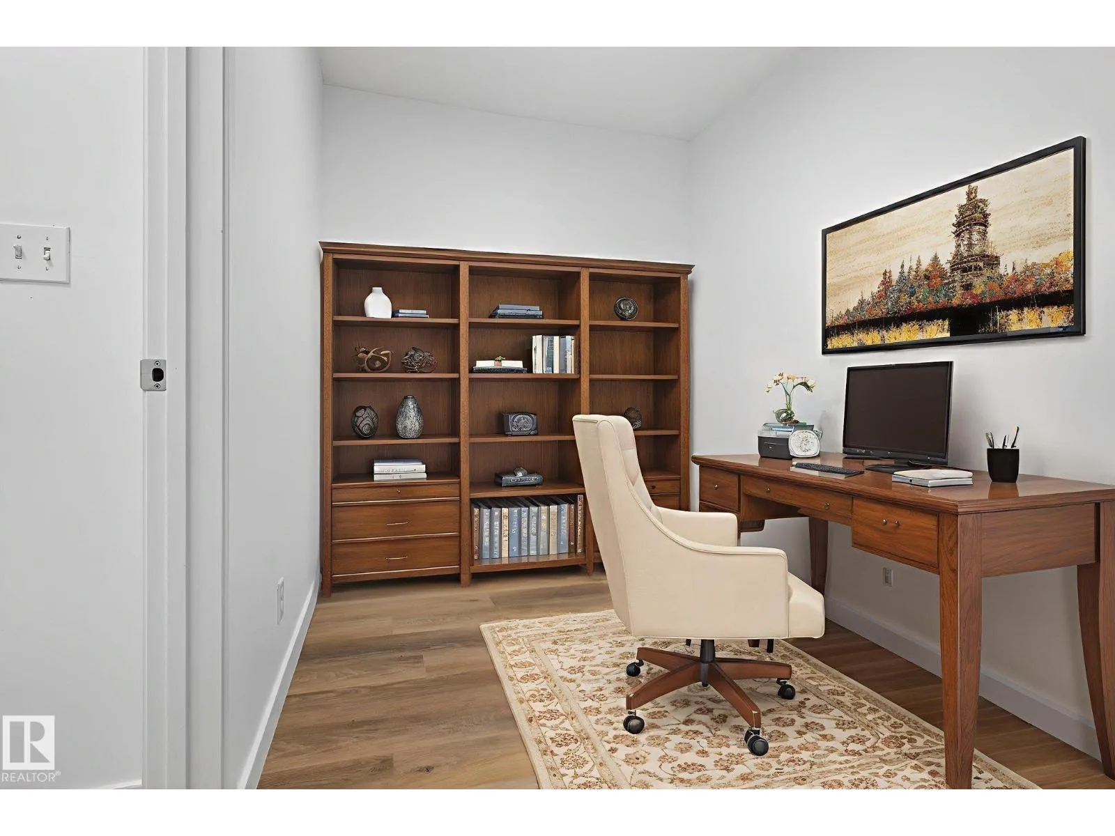 Discover this inviting 2-bedroom condo in the sought-after community of MacTaggart, steps from scenic Whitemud Creek ravine trails and minutes to the Currents of Windermere. The open den offers flexible use as a home office or dining space, while the primary bedroom includes its own private ensuite. Start your day on the balcony and enjoy the convenience of titled underground parking. The unit also offers AC rough-in, providing added comfort and the option for future air conditioning. With easy access to transit, schools, shopping, parks, and a nearby recreation centre, this home is perfectly suited for first-time buyers, downsizers, or investors. (id:27476)