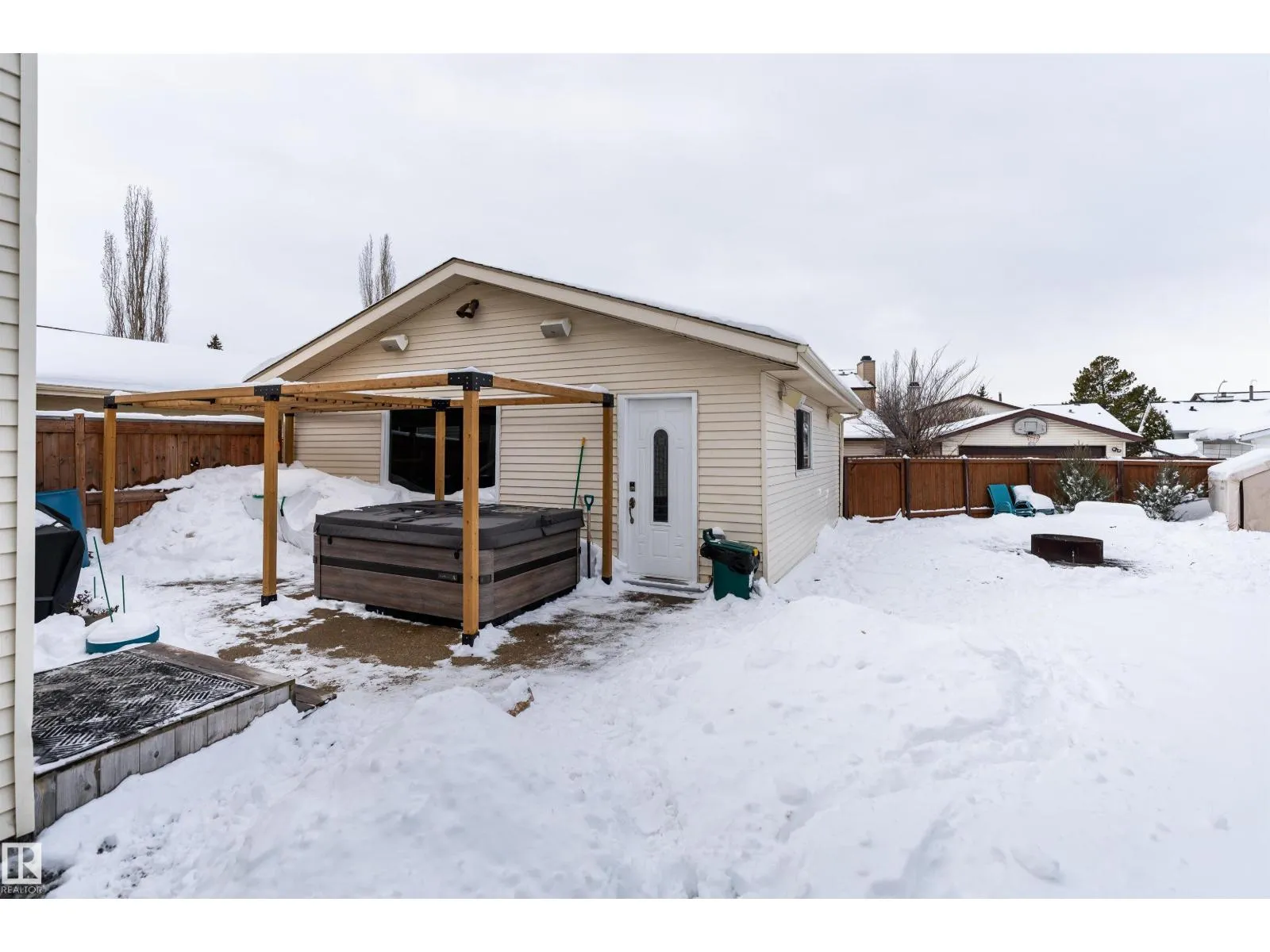 Beautiful two-storey home located on a quiet crescent in the desirable community of Kiniski Gardens. This property offers over 1,180 sq. ft. of developed living space plus a partially finished basement. The main floor features a bright open-concept layout with laminate flooring, pot lights, and a spacious living room. The modern renovated kitchen boasts updated cabinetry, ample counter space, stainless steel appliances, and a large island, flowing seamlessly into the dining area with access to the backyard. Upstairs offers three generously sized bedrooms and a full bathroom. The basement adds excellent versatility with a large recreation space, bedroom and utility/laundry room. Enjoy a fully fenced and landscaped yard, lane access, and an oversized double detached garage. Additional features include central air conditioning and a fantastic location close to schools, parks, shopping, and public transit. Exceptional value in a family-friendly neighbourhood! (id:27476)