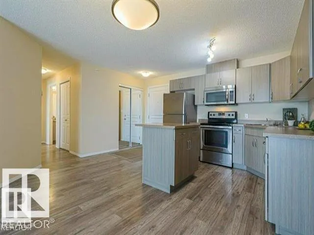 TOP FLOOR LIVING meets ULTIMATE CONVENIENCE! This immaculate 2-bed, 2-bath unit at The Avenue at Clareview is perfectly situated right next to the LRT station. As a top-floor unit, youâll enjoy a quiet home with a bright, open floor plan. The heart of the space is the spacious kitchen, featuring newer modern cabinets, a centre island, and 4 stainless steel appliances. The interior is move-in ready with newer laminate flooring throughout. The large living room opens to a private balcony complete with a natural gas hookup. The primary bedroom boasts a walk-in closet and 4-piece ensuite, while the second bedroom is perfect for guests or an office. Rare added value with TWO parking stalls (1 underground, 1 surface) and an in-suite laundry/storage room. Condo fees conveniently include heat, water, and gym access. Stylish, upgraded, and steps from transitâthis is the perfect place to call home! (id:27476)