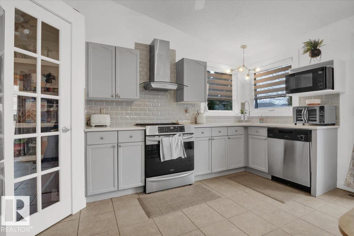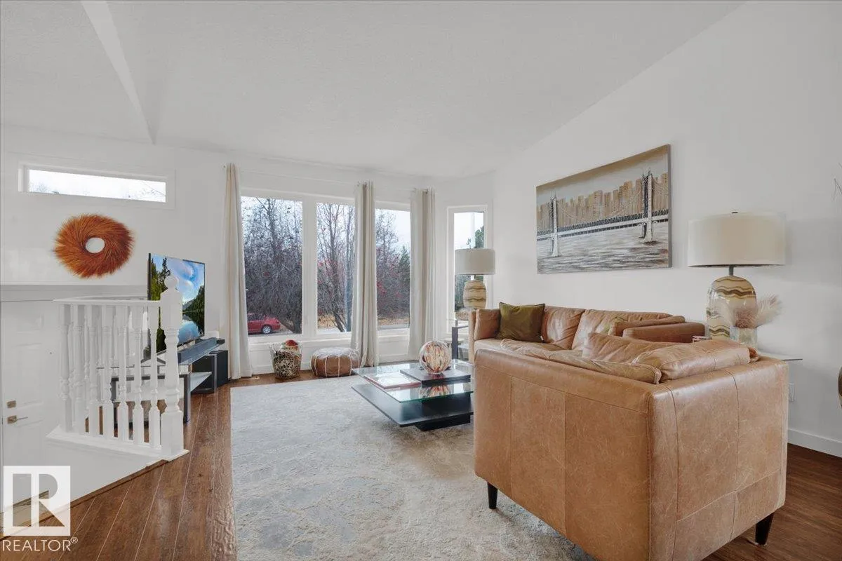 Magnificent location! Rarely do homes become available in this highly sought-after quiet area, where most neighbours are original owners. Situated on a large corner lot facing the ravine, this beautifully updated bi-level offers direct access just steps away from scenic walking trails. Thoughtfully maintained and upgraded, the home features 12 solar panels (2024), a new roof, fascia, and storm drains (2023), all new windows, new front and back doors, and a new insulated garage door with opener. Inside, enjoy fresh white paint upstairs, modern laminate flooring, updated bathrooms, and a refreshed kitchen with painted cabinets, and a spacious dining area. The finished basement includes two additional bedrooms, a living room, 3-piece bath and a large storage area under the stairsâ ideal for guests or extended family. With vaulted ceilings, formal dining, and an oversized double garage, this home blends comfort, efficiency, and timeless charmâall just minutes from schools, shopping, and transportation. (id:27476)