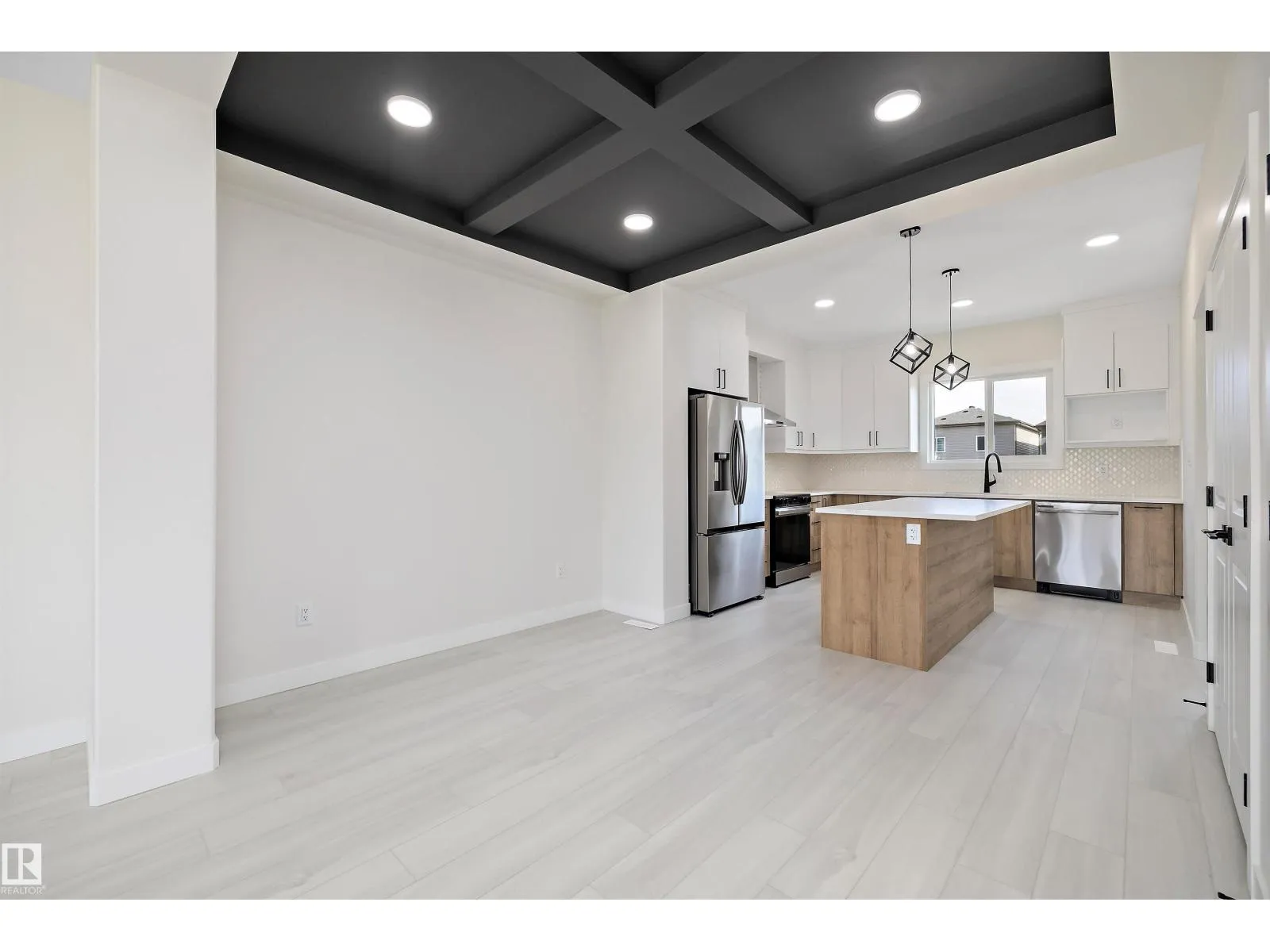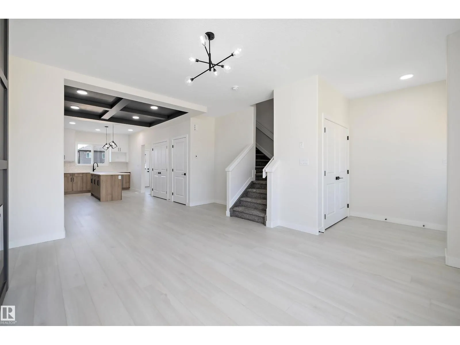 Welcome to this brand new 1590 SQFT home with double garage, Leeds model by award winning builder Blackstone Homes in upscale community of Kinglet, Big Lake. Upon entry, you will be welcomed by spacious foyer with huge great room with electric fireplace finished with feature wall. Dining room offers beautiful coffered ceiling, spacious kitchen offering up to the ceiling soft closing cabinets with ample counter space. Back entry offers a mudroom with built in bench & closet The 2nd floor offers 3 large bedrooms, 2 baths, bonus room & laundry. Master bedroom has feature wall and beautiful en-suite with good size closet. Other upgrades - Double detached garage, Separate entrance, rear deck with metal railing, 9' main/basement ceiling, MDF shelving, upgraded flooring, electrical & black plumbing fixtures, upgraded quartz, SS appliance included & New Home Warranty. Great location-close to Yellowhead and Anthony Henday, shopping, park and other amenities. (id:27476)