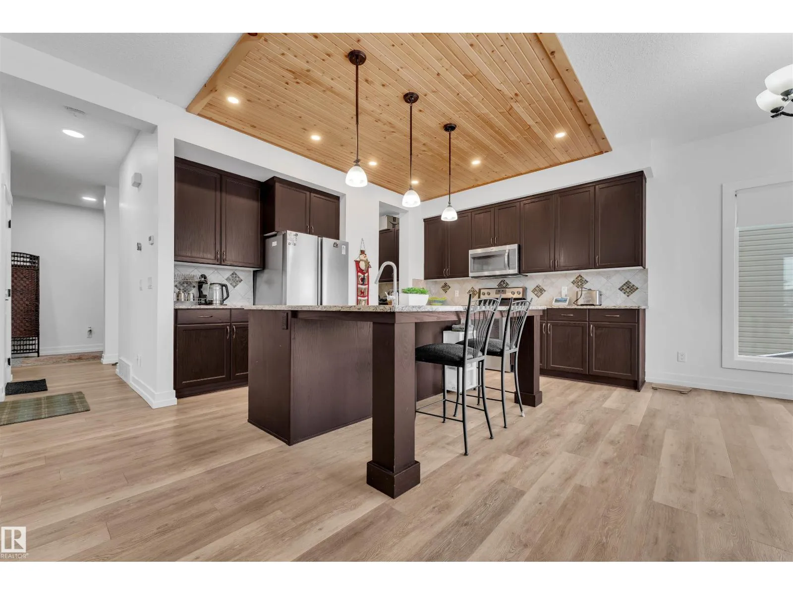 Welcome to your DREAM Home! This Beautifully built Two-storey sits on a pie-shaped lot backing onto WALKING Trail. The main floor features a grand OPEN-TO-BELOW foyer, spacious living room, office space, and a chefâs kitchen with Butlerâs pantry, oversized granite island, under-mount sink, stainless steel appliances, and Ample cabinetry. A mudroom and convenient half bath complete the Main Level. Upstairs offers TWO Rare Primary bedrooms, each with a 5-Piece Ensuite and walk-in closet, plus a Third spacious bedroom with Double door entrance and ensuite access from the bedroom and an upper-floor laundry room. The FULLY FINISHED WALKOUT Basement includes a Second Kitchen, Bedroom, Den, full bathroom, and private laundryâideal for extended family. Enjoy evenings on the large deck overlooking the backyard with direct trail access. This home also features an oversized Double garage with high ceilings and a floor drain. Comes move-in ready with FINISHED DECK, LANDSCAPING, BLINDS & Fully FENCED (id:27476)