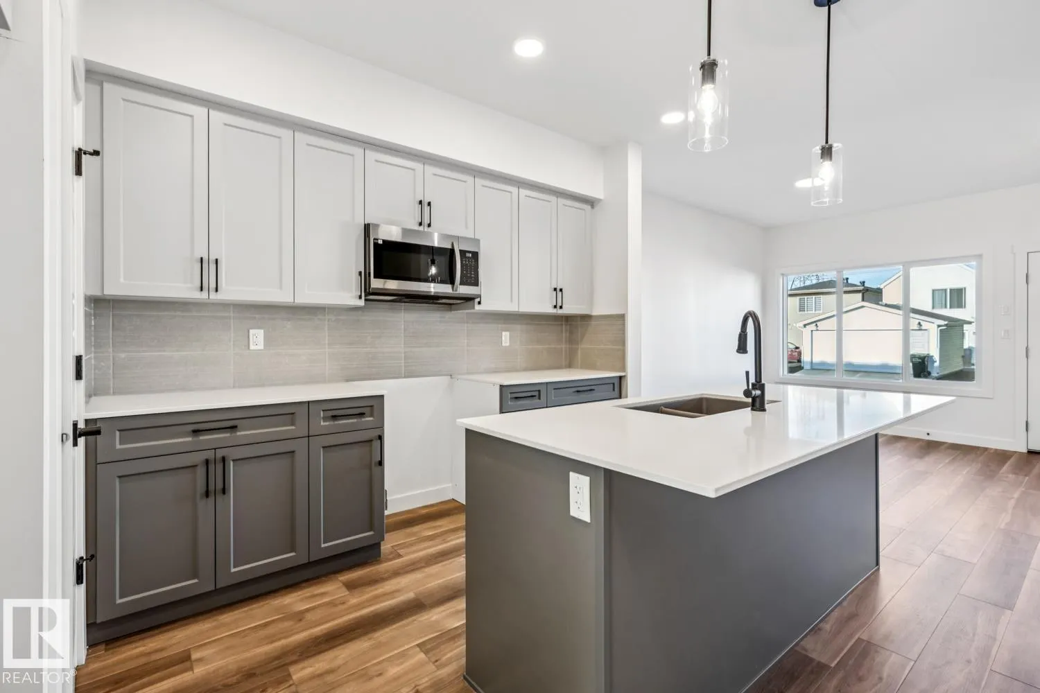 Welcome to the Sapphire by Sterling Homes, a well-designed 1,594.37 sqft home offering modern style and everyday functionality. The main floor features 9â ceilings and luxury vinyl plank flooring, creating a bright, open feel. The kitchen combines form and function with quartz countertops, an island with flush eating ledge, undermount sink, over-the-range microwave, full-height tile backsplash, and a spacious corner pantry. Large windows fill the living and dining areas with natural light, while a centrally located garden door provides easy backyard access. A main-floor bedroom and 3-piece bath with walk-in shower add flexibility for guests or a home office. Upstairs includes a bonus room, primary bedroom with walk-in closet and 3-piece ensuite, two additional bedrooms, a full bath, and a convenient laundry closet for stackable appliances. 9â basement ceilings, a separate side entrance, and basement rough-in plumbing complete this home. (id:27476)