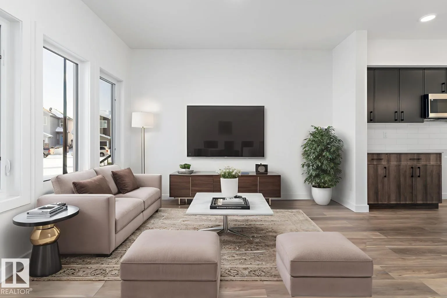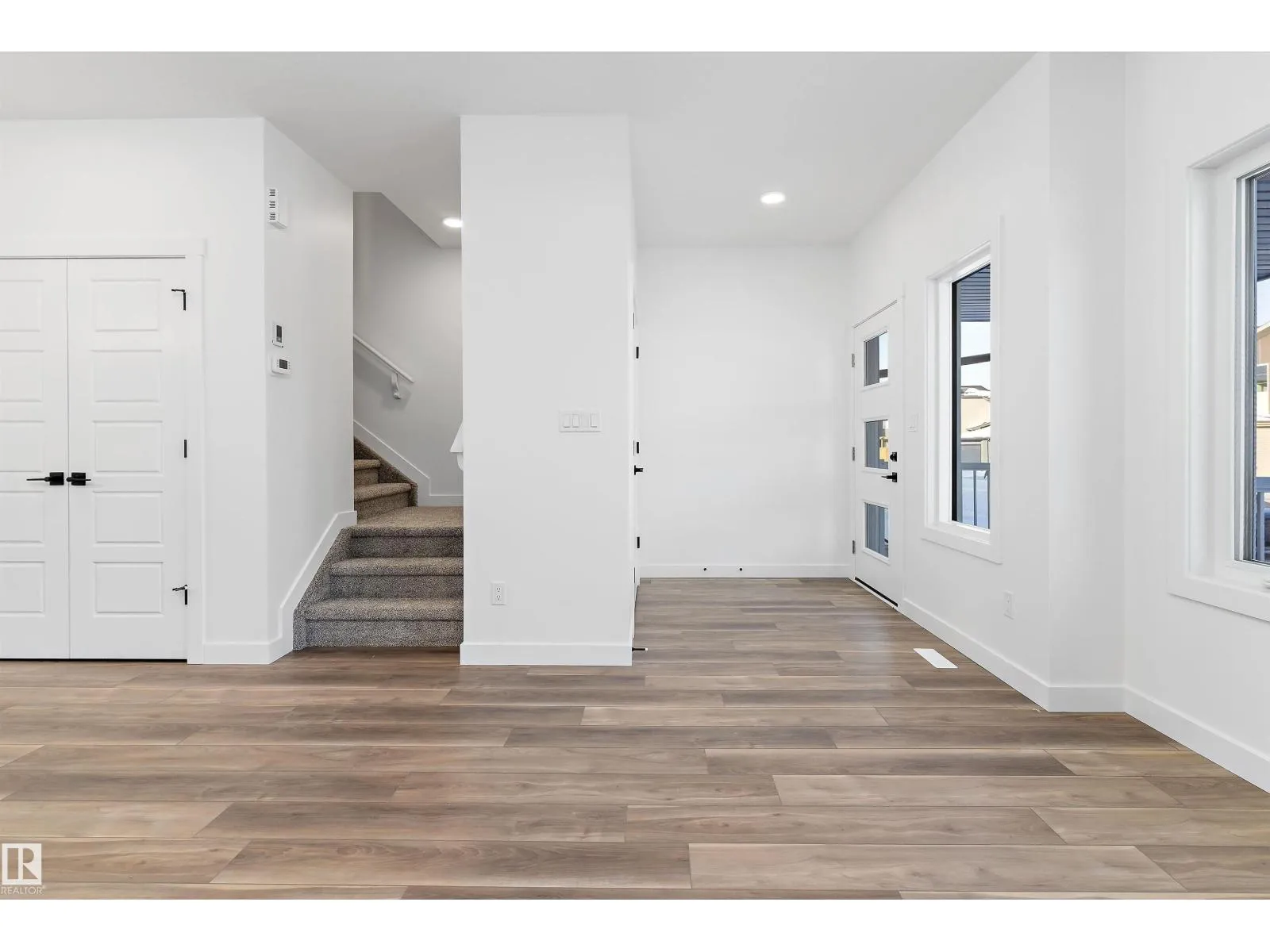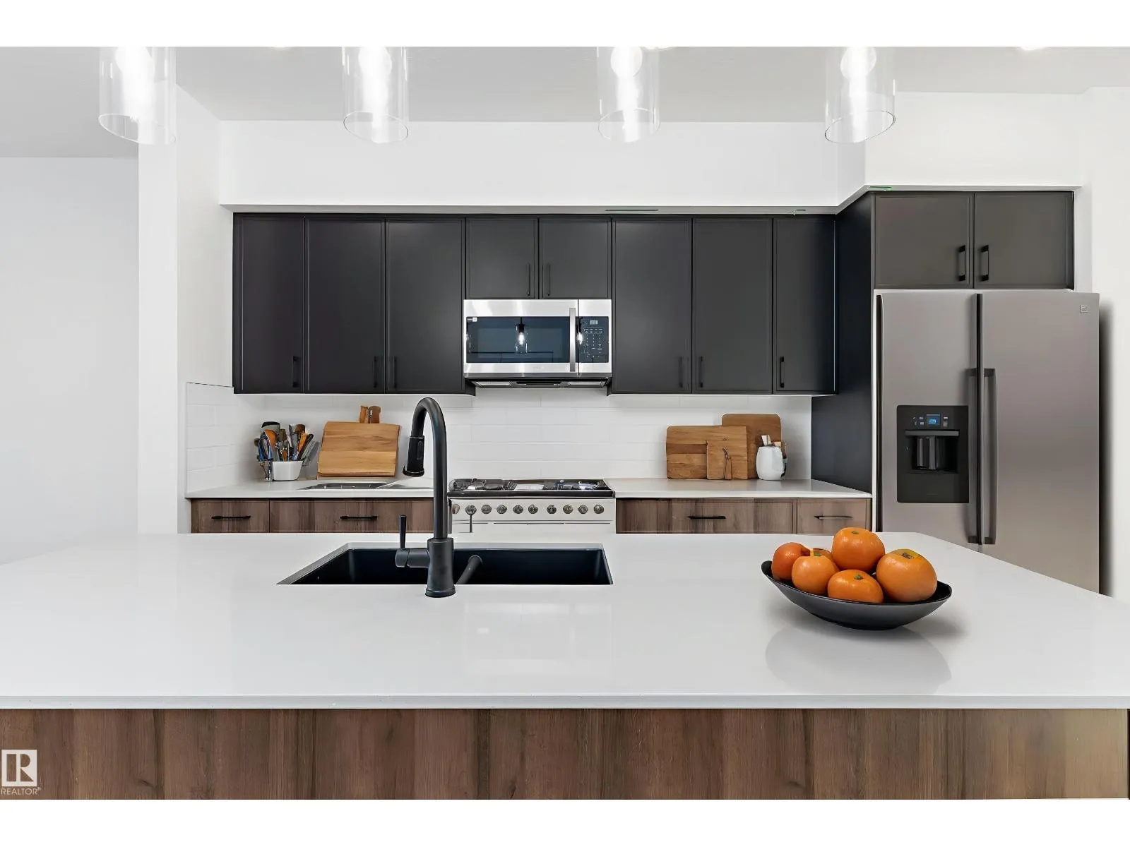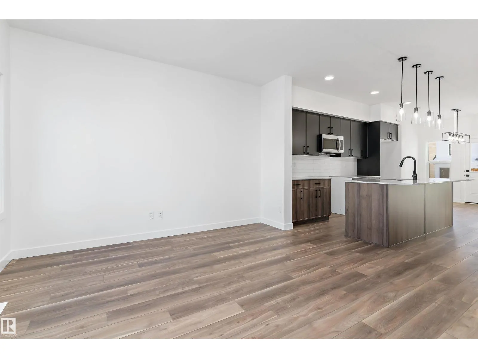 Discover the Sylvan by Sterling Homes, a well-crafted home designed for comfort and functionality. The main floor features luxury vinyl plank flooring and a welcoming foyer with coat storage leading to a bright great room. The kitchen offers quartz countertops, an island with flush eating ledge, Silgranit undermount sink, pendant lighting, over-the-range microwave, soft-close cabinetry with upgraded door profiles, and a pantry tucked near the stairs. At the rear, the sunlit nook overlooks the backyard and sits beside a main-floor bedroom and 3-piece bath with stand-up shower, with a garden door to the outdoors. Upstairs includes a primary suite with walk-in closet and 4-piece ensuite with tub/shower combo, two additional bedrooms, a full bath, and a laundry closet. 9â ceilings on main and basement levels, a separate side entrance, black plumbing and lighting fixtures, basement rough-in plumbing, and a parking pad with option for a detached double garage complete this home. (id:27476)