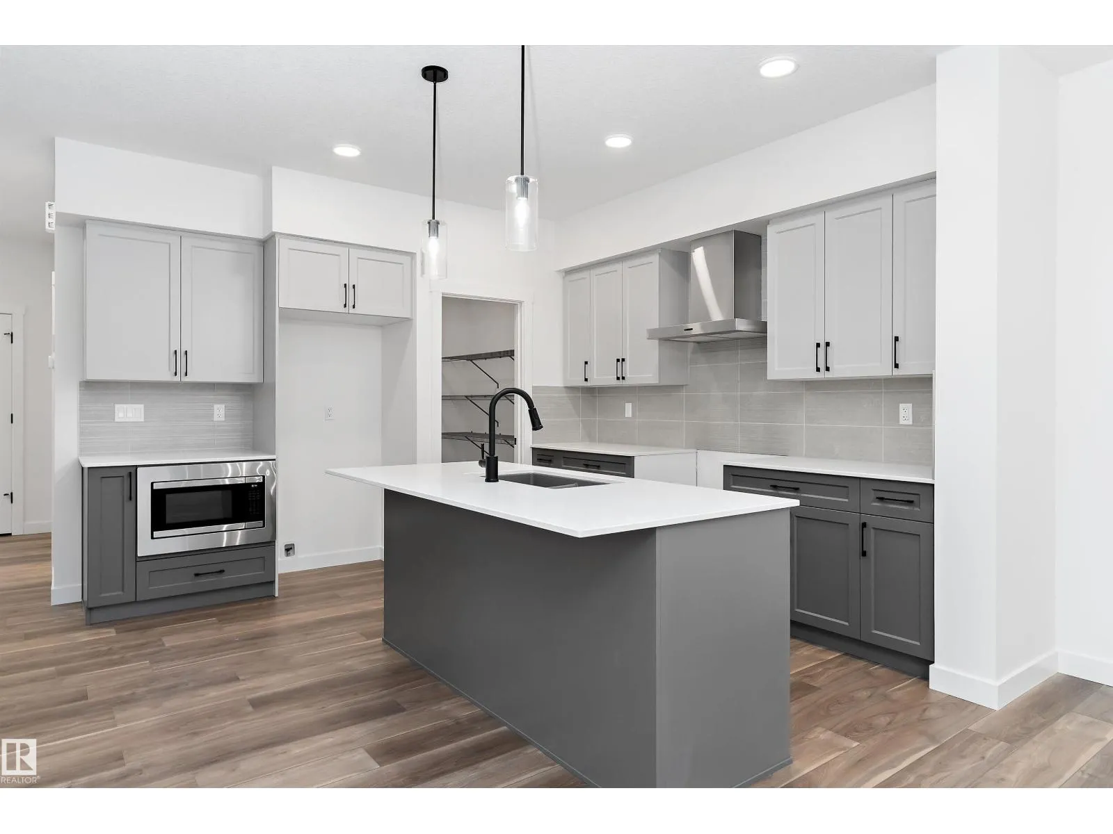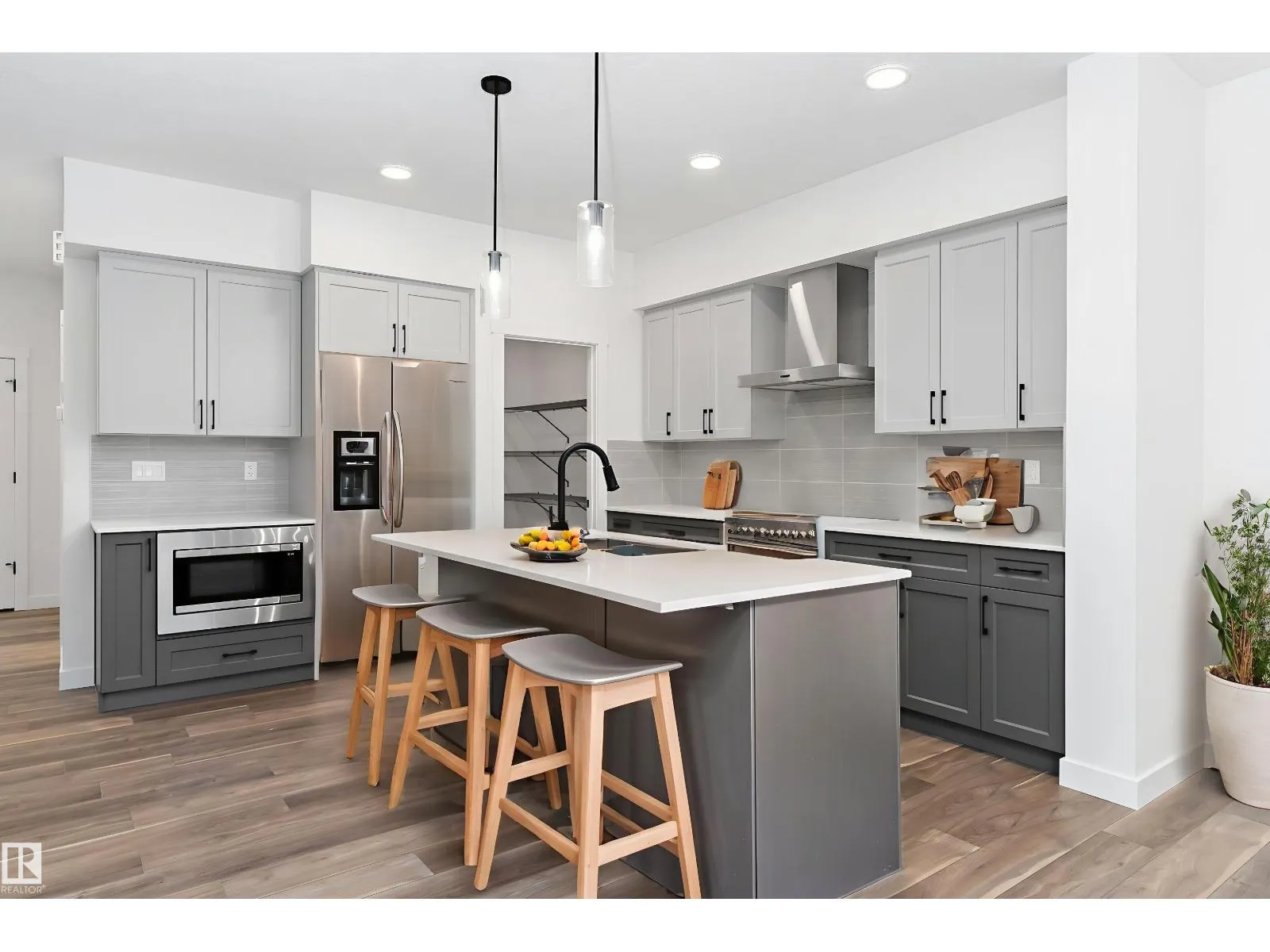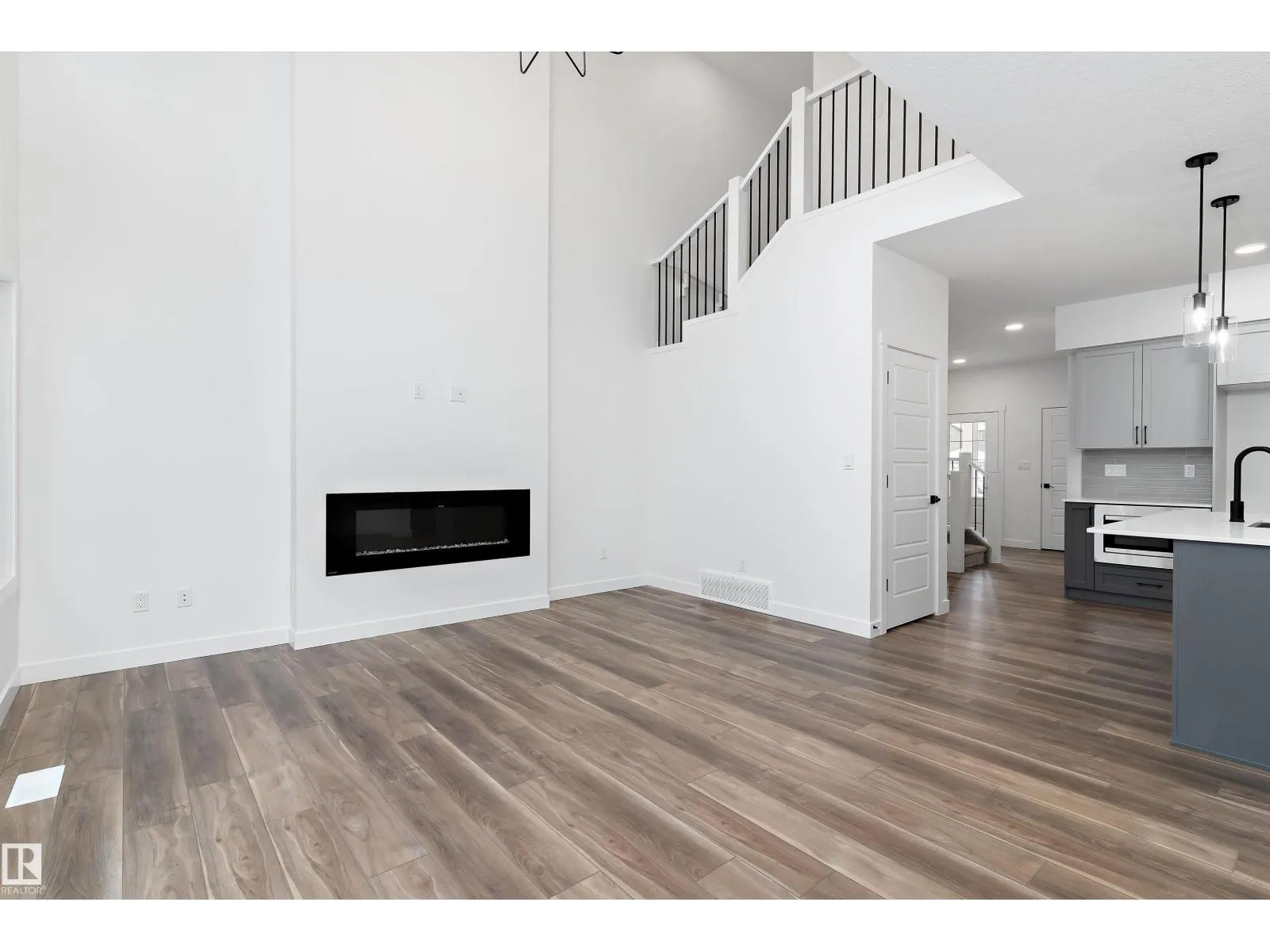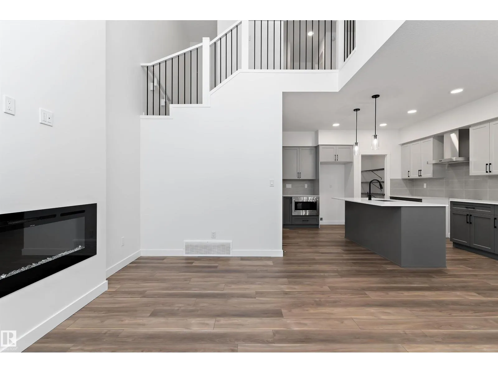 The Allure by Sterling Homes blends modern style with smart design. An open-to-below great room with soaring 17â ceilings, electric fireplace, and large windows creates a bright, airy feel. Luxury Vinyl Plank flooring and 9â ceilings on the main and basement levels enhance the homeâs contemporary appeal, while a double attached garage with floor drain and a separate side entrance add convenience. The kitchen features quartz countertops, a spacious island with flush eating ledge, Silgranit undermount sink, built-in microwave, pendant lighting, and a full-height tile backsplash, plus soft-close Winston cabinetry and a walk-through pantry to the mudroom. Upstairs offers a private primary suite with walk-in closet and 4-piece ensuite, a bonus room, two additional bedrooms, full bath, and laundry. Finished with black fixtures, basement rough-ins, and Sterlingâs Signature specification. (id:27476)