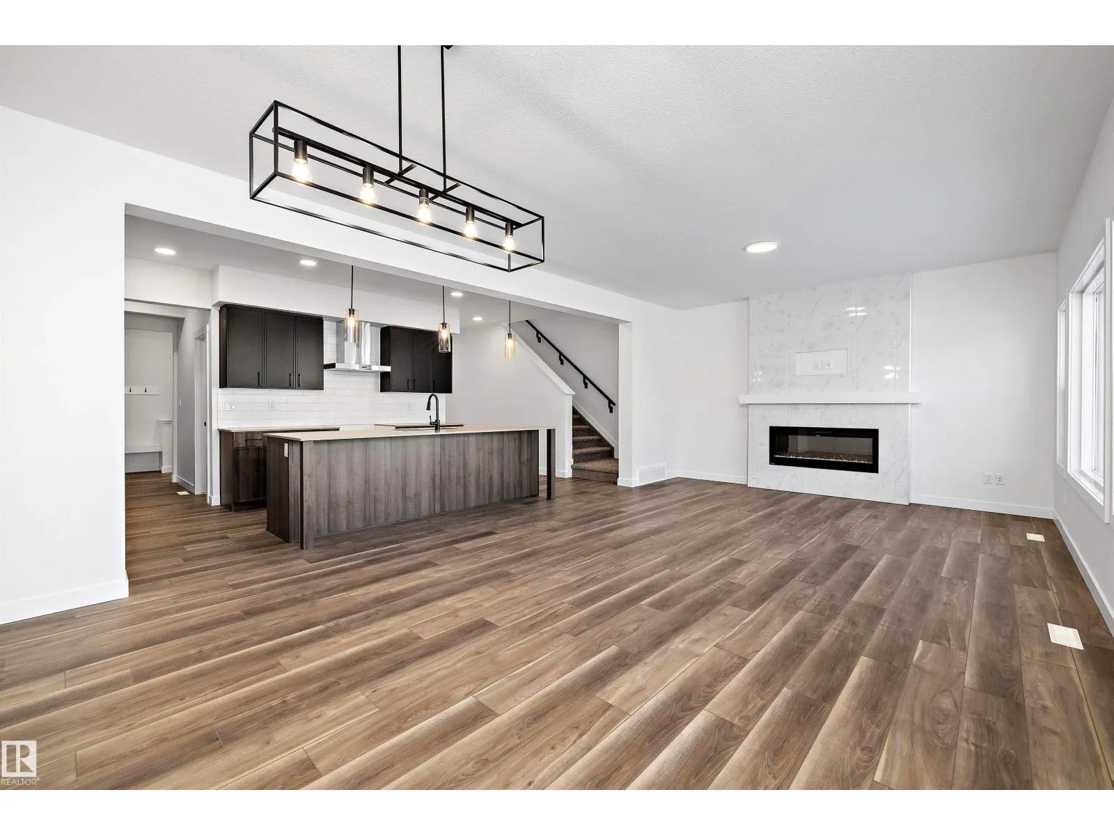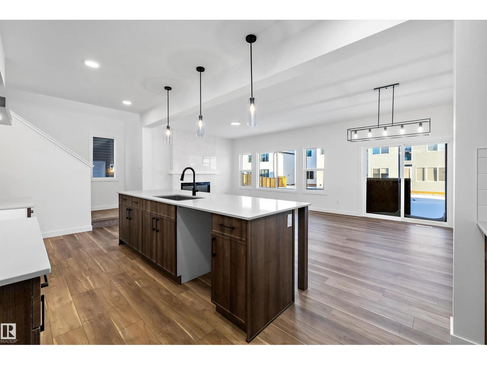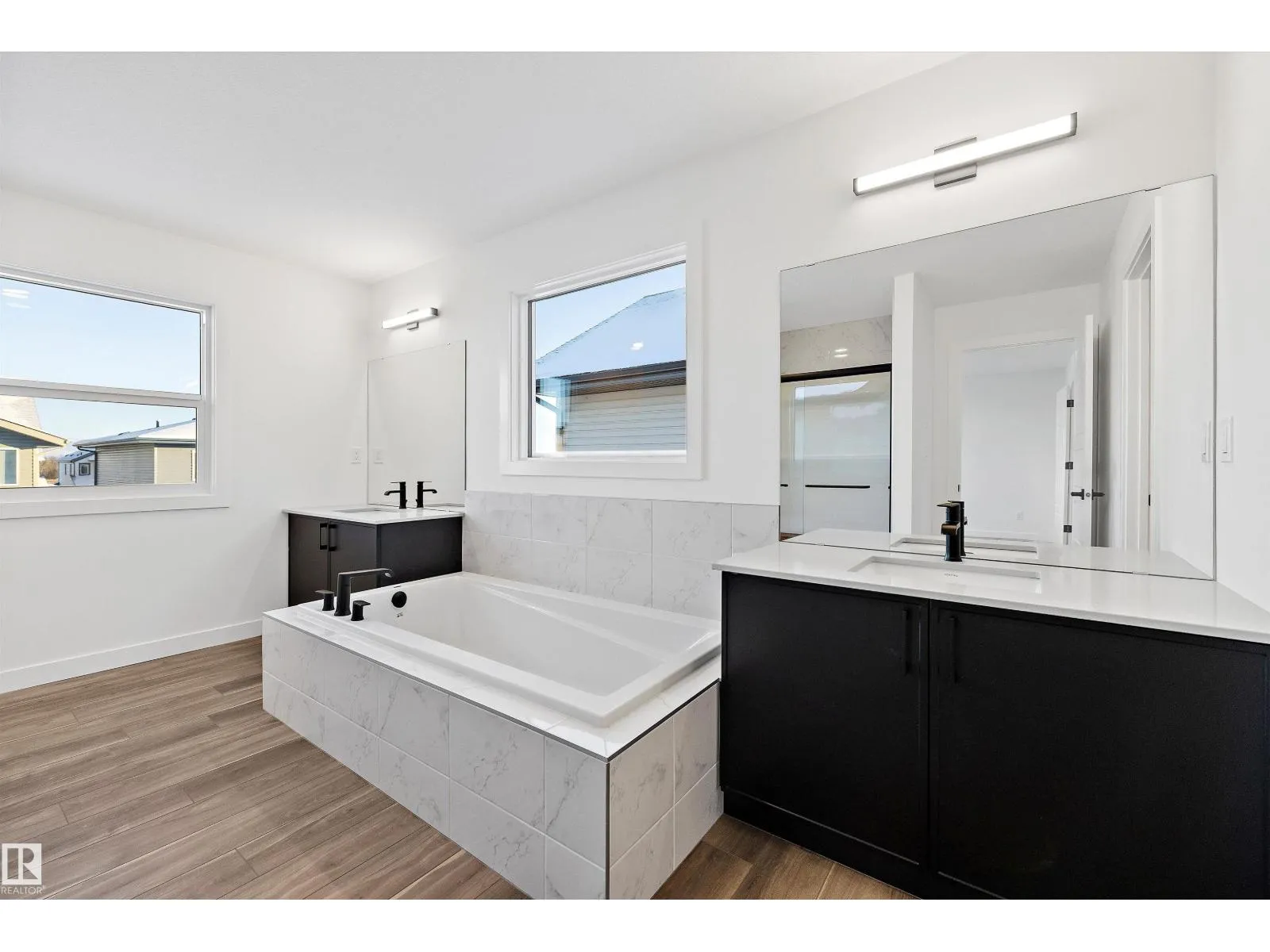 Welcome to the Charleston by Sterling Homes, a 2,289 sq ft home built for modern family living. The main floor features luxury vinyl plank flooring, 9â ceilings on main and basement levels, double attached garage, and separate side entrance. A foyer with coat closet leads to a half bath and open-concept living area. The kitchen includes quartz countertops, large island with flush eating ledge, Silgranit undermount sink, pendant lighting, built-in microwave, full-height backsplash, chimney-style hood fan, and upgraded soft-close cabinets. A mudroom connects the garage to a butlerâs pantry with sink and additional pantry. The great room and nook have large windows, sliding patio door, and fireplace. Upstairs offers bonus room, laundry, main 4-piece bath with double sinks, two bedrooms with walk-in closets, and a primary suite with walk-in closet and 5-piece ensuite with dual sinks, tub, and glass walk-in shower. Black fixtures and basement rough-in included. (id:27476)