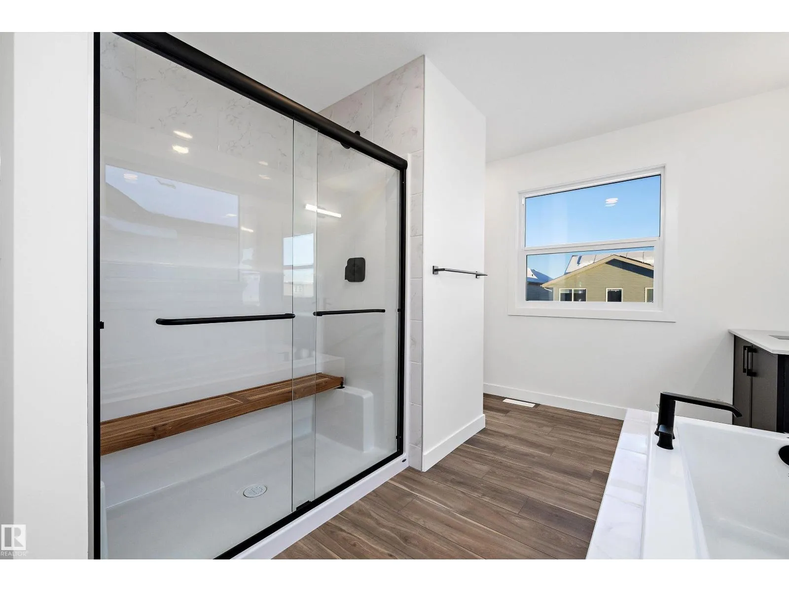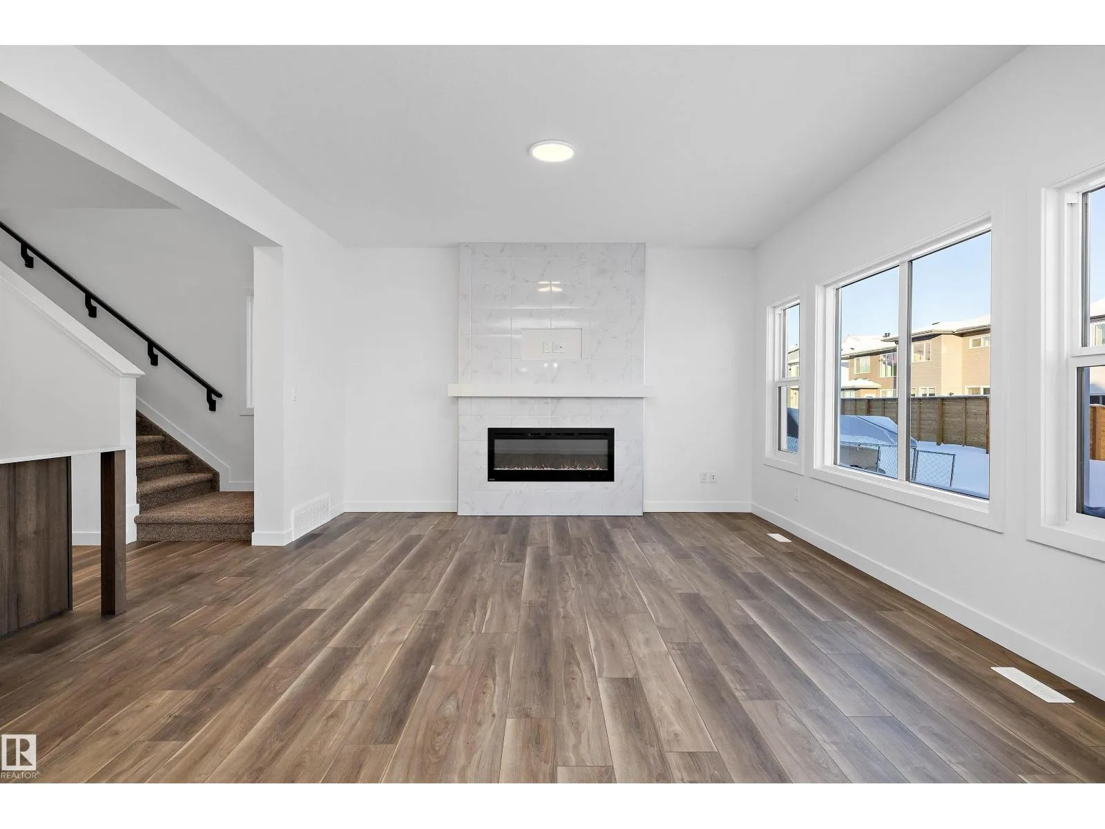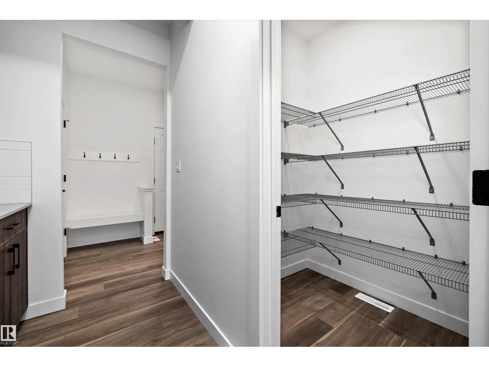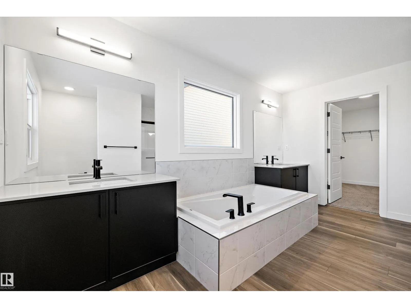 Welcome to the Charleston by Sterling Homes, a 2,289 sq ft home built for modern family living. The main floor features luxury vinyl plank flooring, 9â ceilings on main and basement levels, double attached garage, and separate side entrance. A foyer with coat closet leads to a half bath and open-concept living area. The kitchen includes quartz countertops, large island with flush eating ledge, Silgranit undermount sink, pendant lighting, built-in microwave, full-height backsplash, chimney-style hood fan, and upgraded soft-close cabinets. A mudroom connects the garage to a butlerâs pantry with sink and additional pantry. The great room and nook have large windows, sliding patio door, and fireplace. Upstairs offers bonus room, laundry, main 4-piece bath with double sinks, two bedrooms with walk-in closets, and a primary suite with walk-in closet and 5-piece ensuite with dual sinks, tub, and glass walk-in shower. Black fixtures and basement rough-in included. (id:27476)